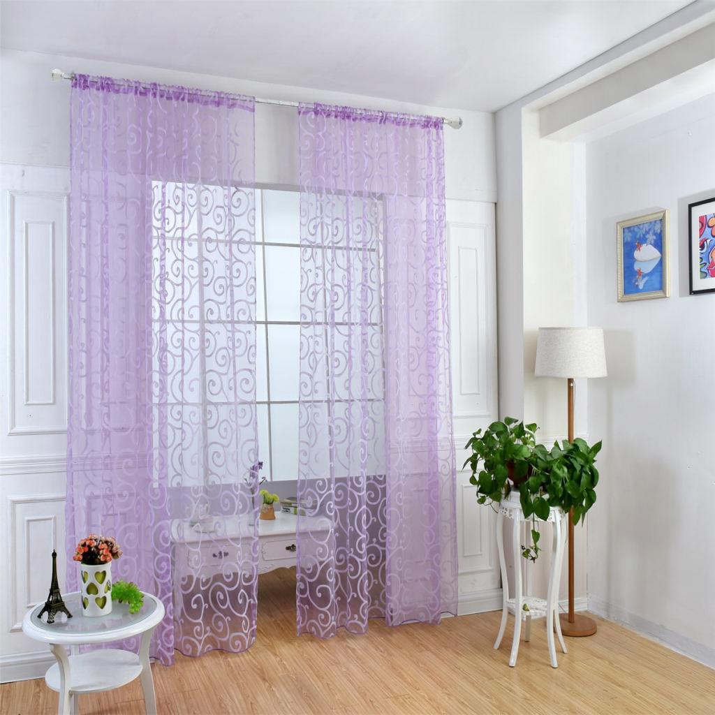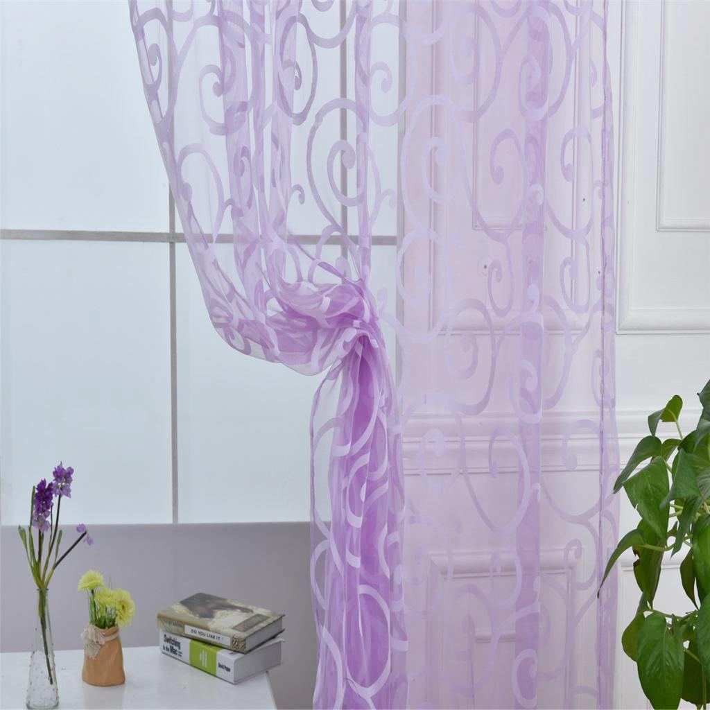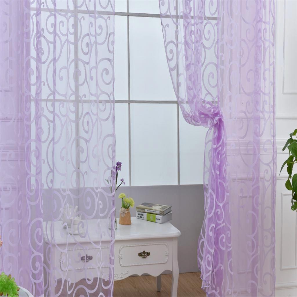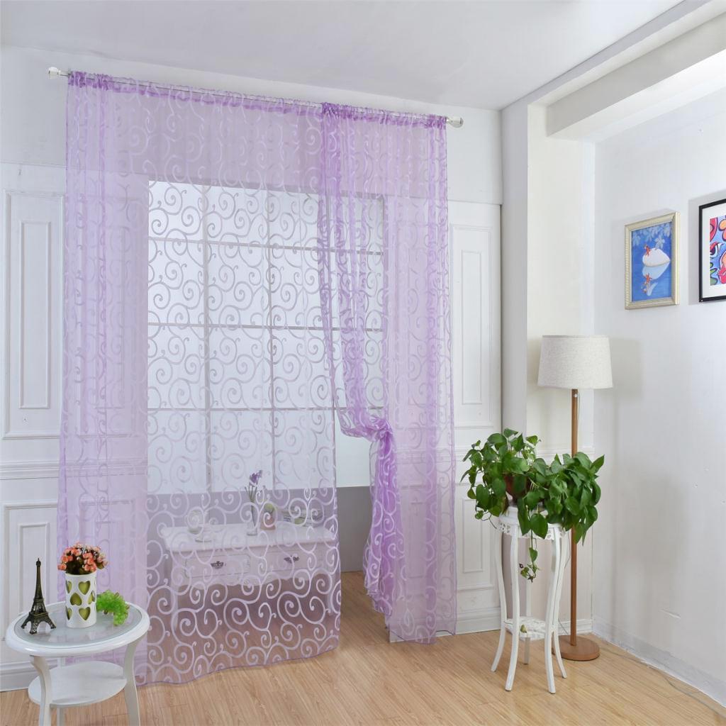 Flocking Sheer Window Curtain Tulle Voile Drape Panel Grommet Top 250x150cm Purple