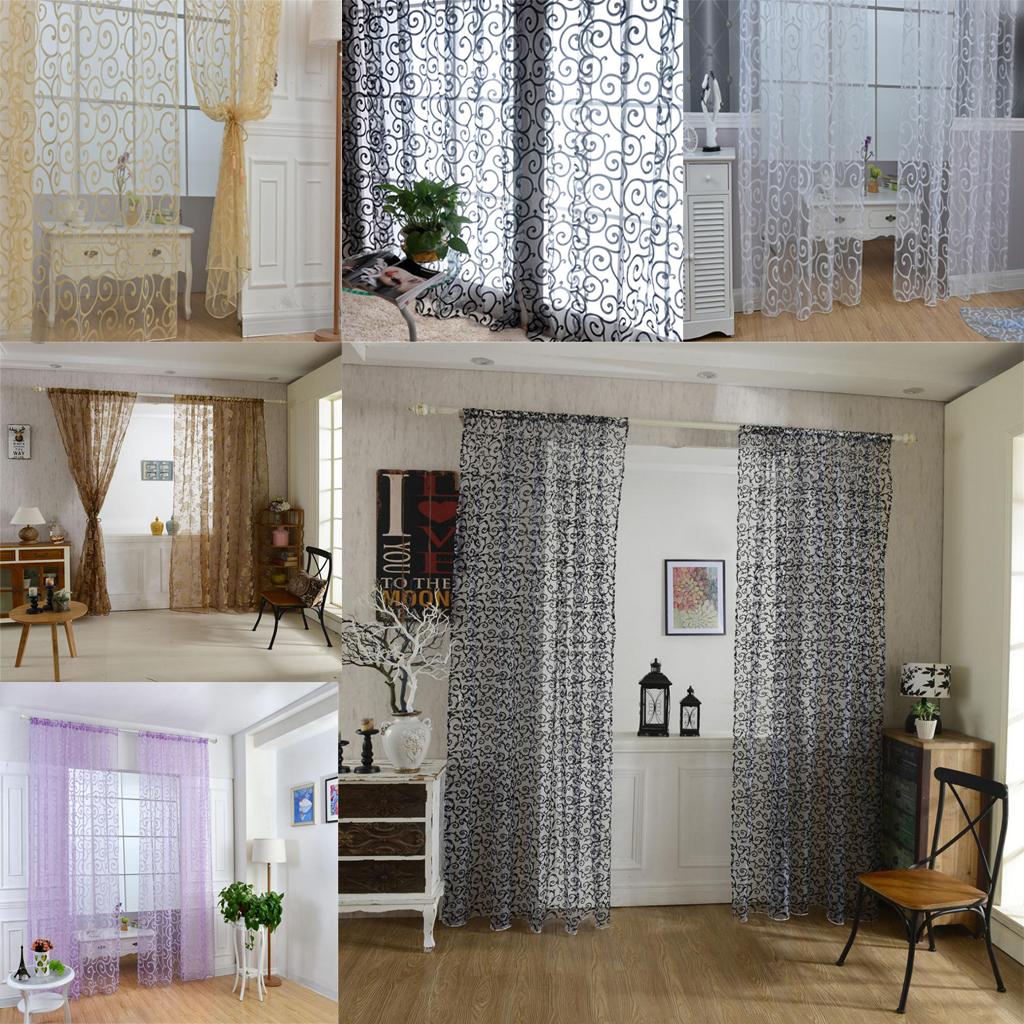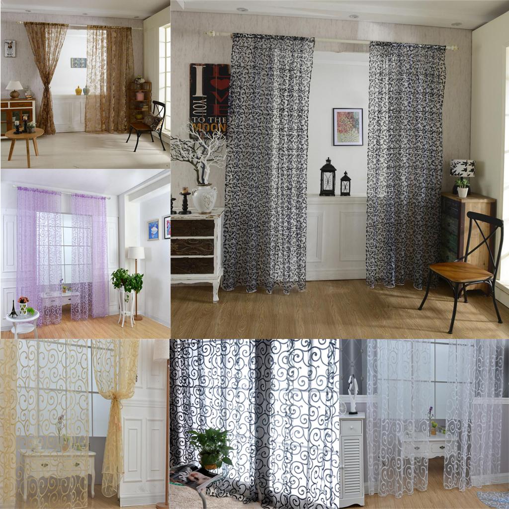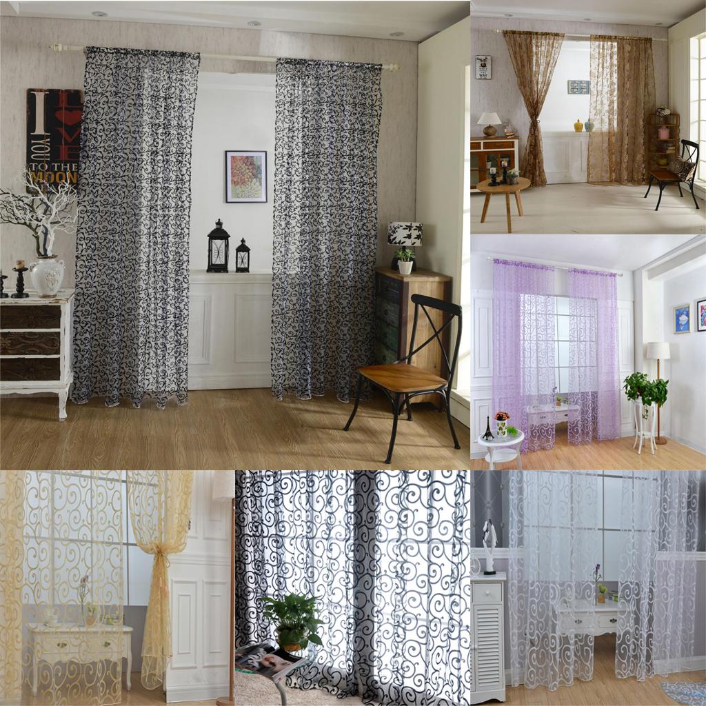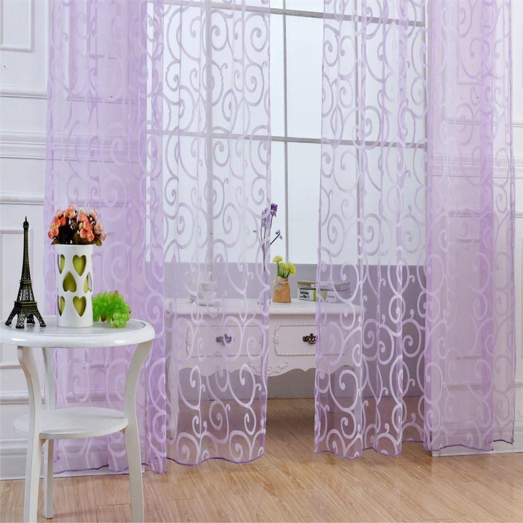 Flocking Sheer Window Curtain Tulle Voile Drape Panel Grommet Top 250x150cm Purple