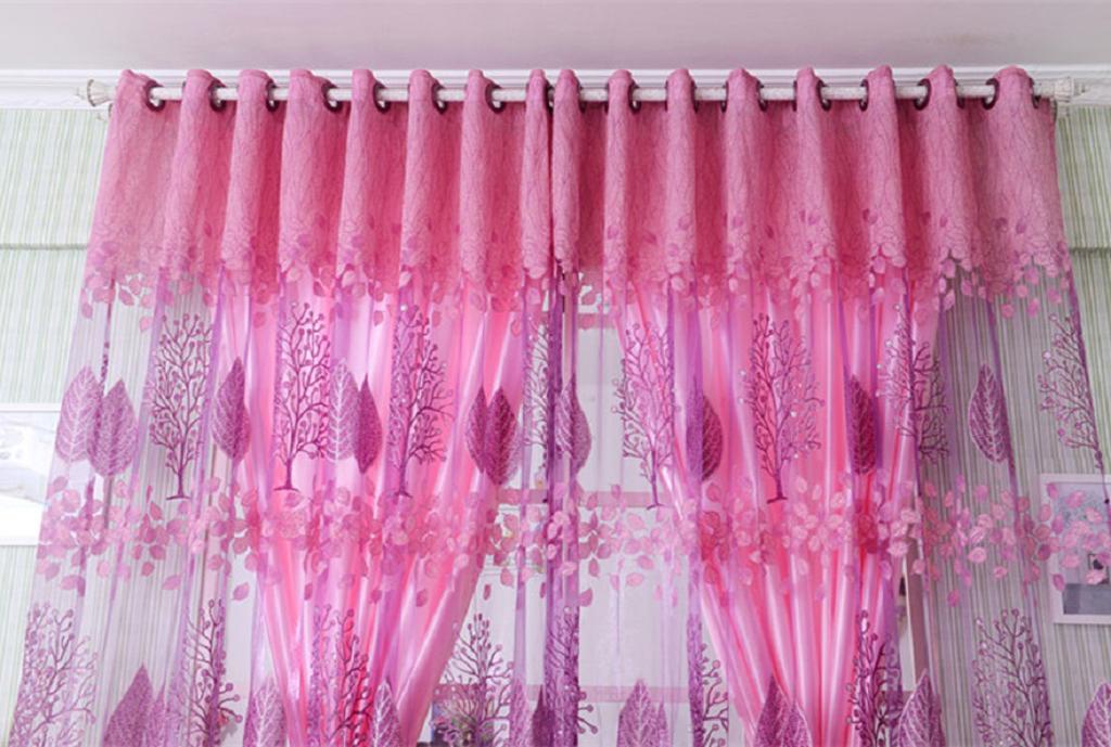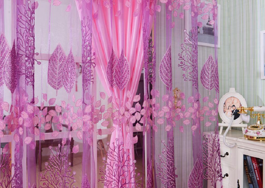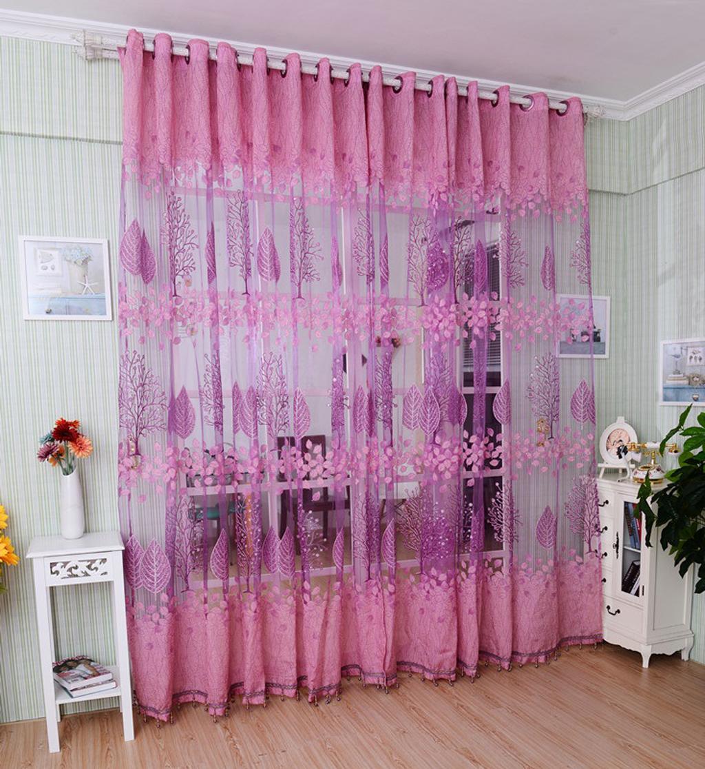 Floral Pattern Window Door Balcony Drape Curtain Home Office Decor Purple