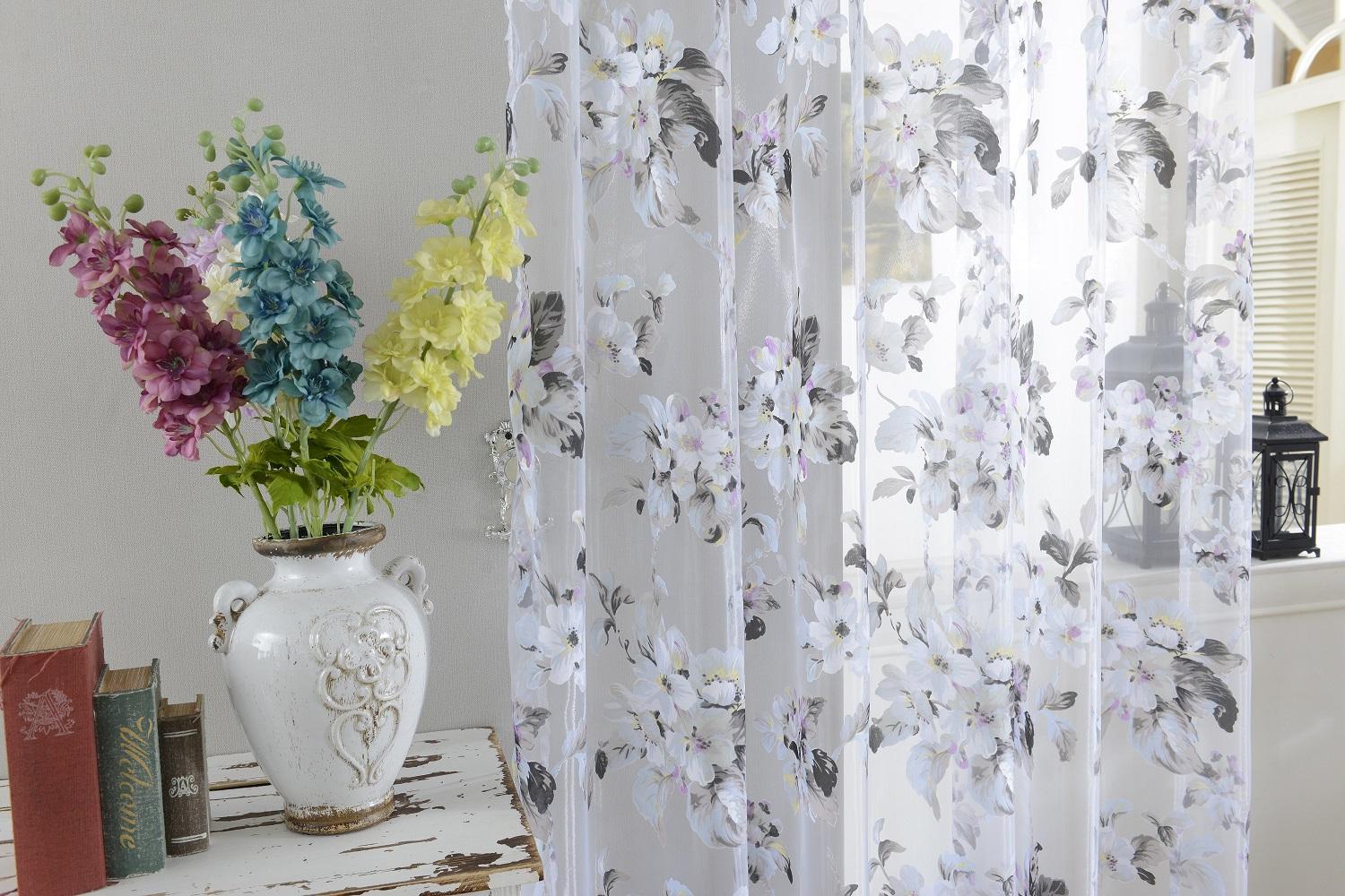 Floral Tulle Sheer Curtains Window Blinds Panel Beads Trims Purple 100x200cm