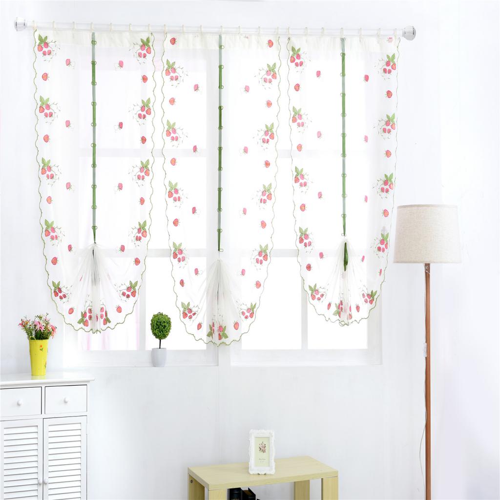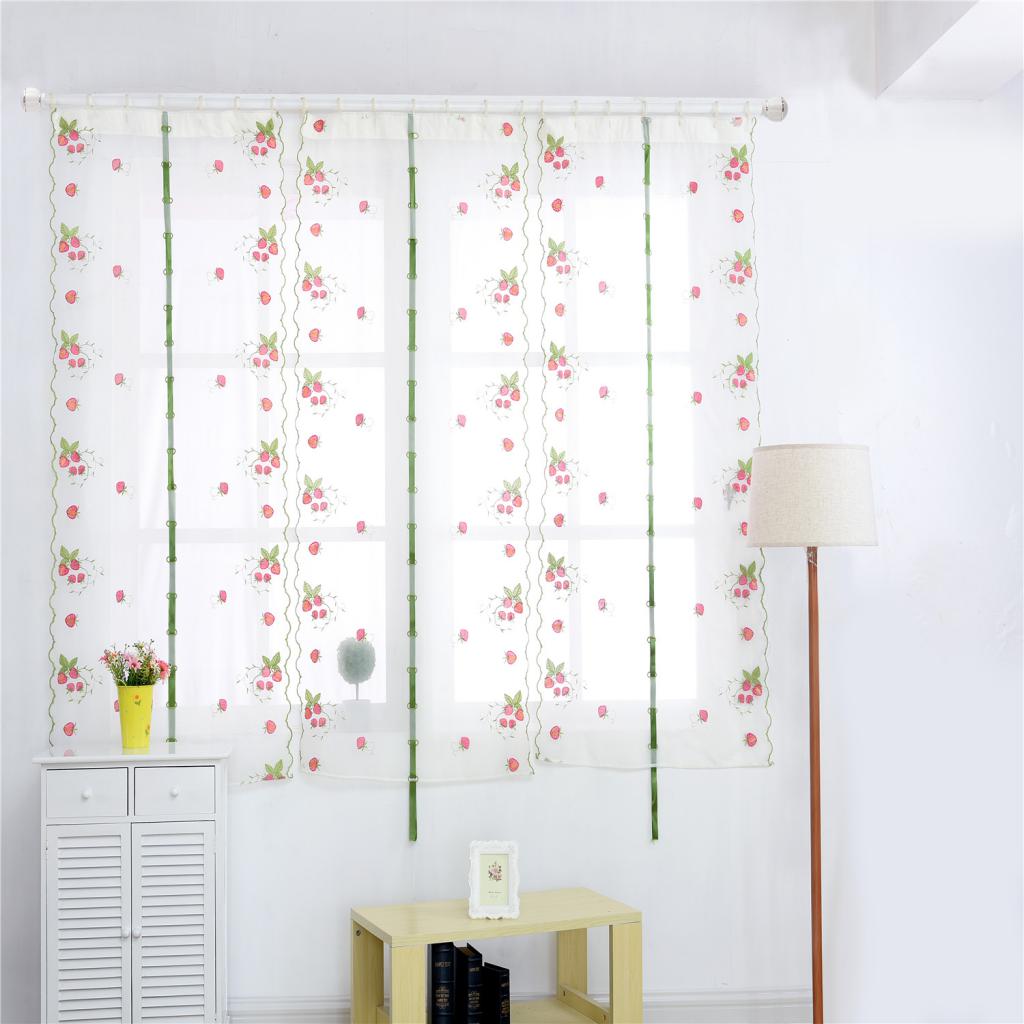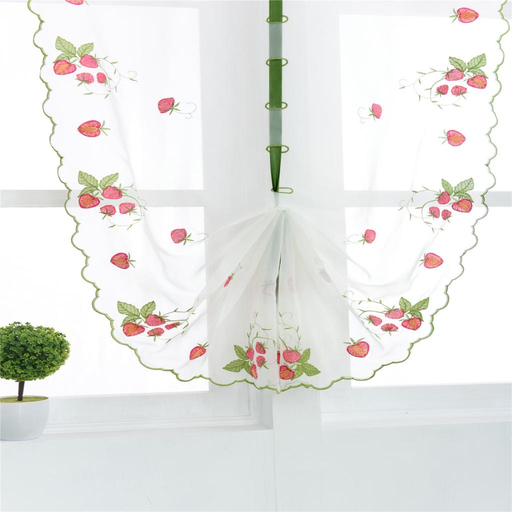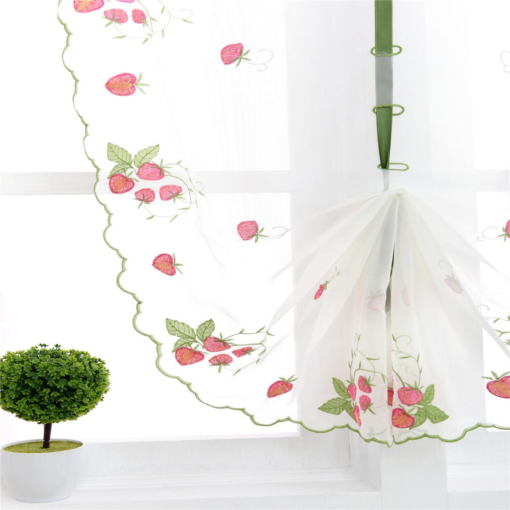 Floral Tulle Window Treatments Sheer Curtains for Home 80*100cm Strawberry