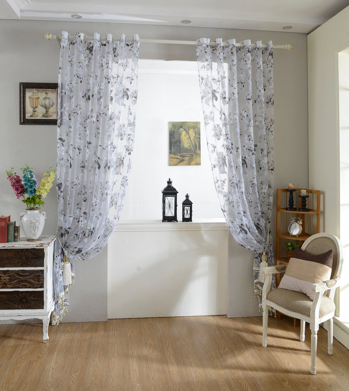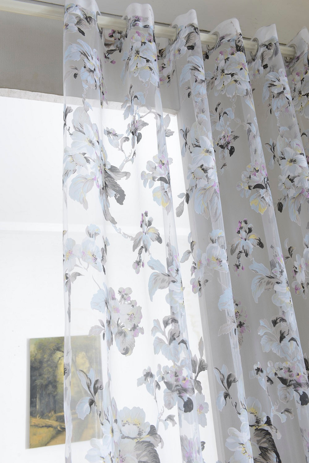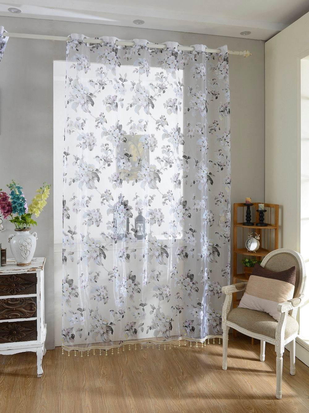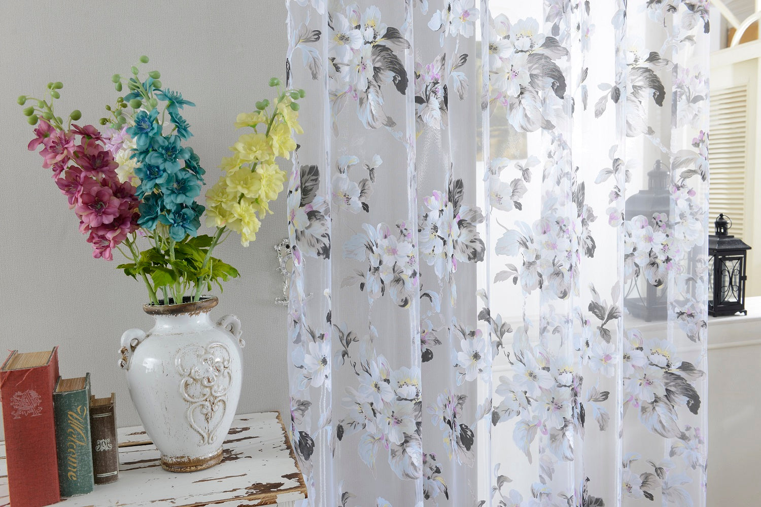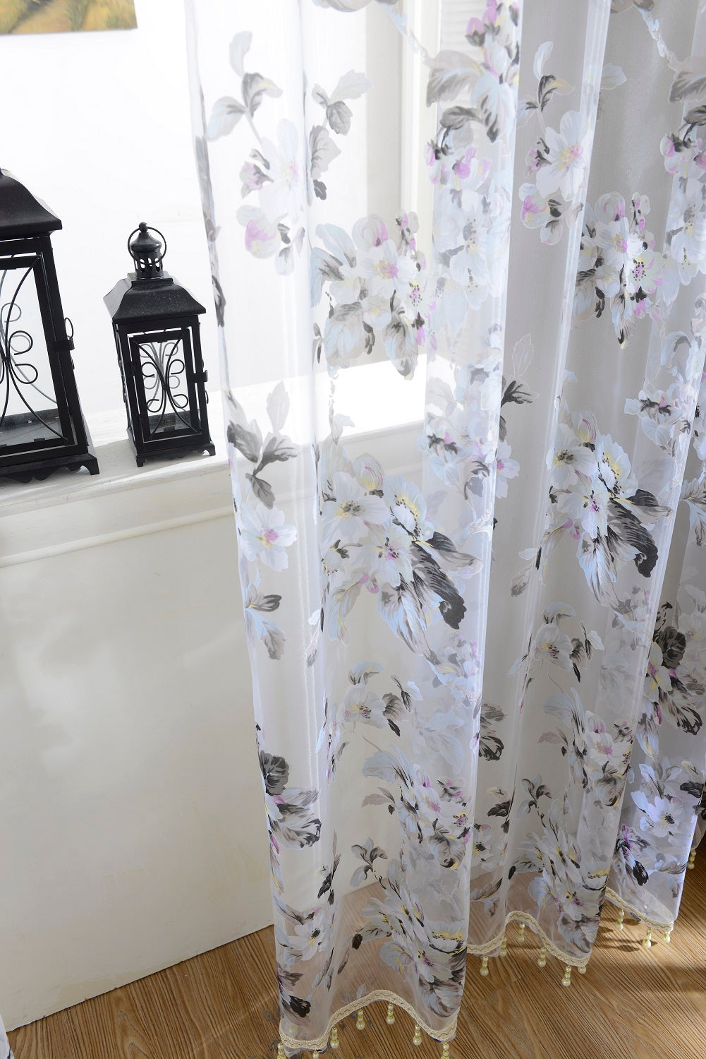 Floral Voile Curtains Window Blinds Panel for Living Room Purple 100*250cm