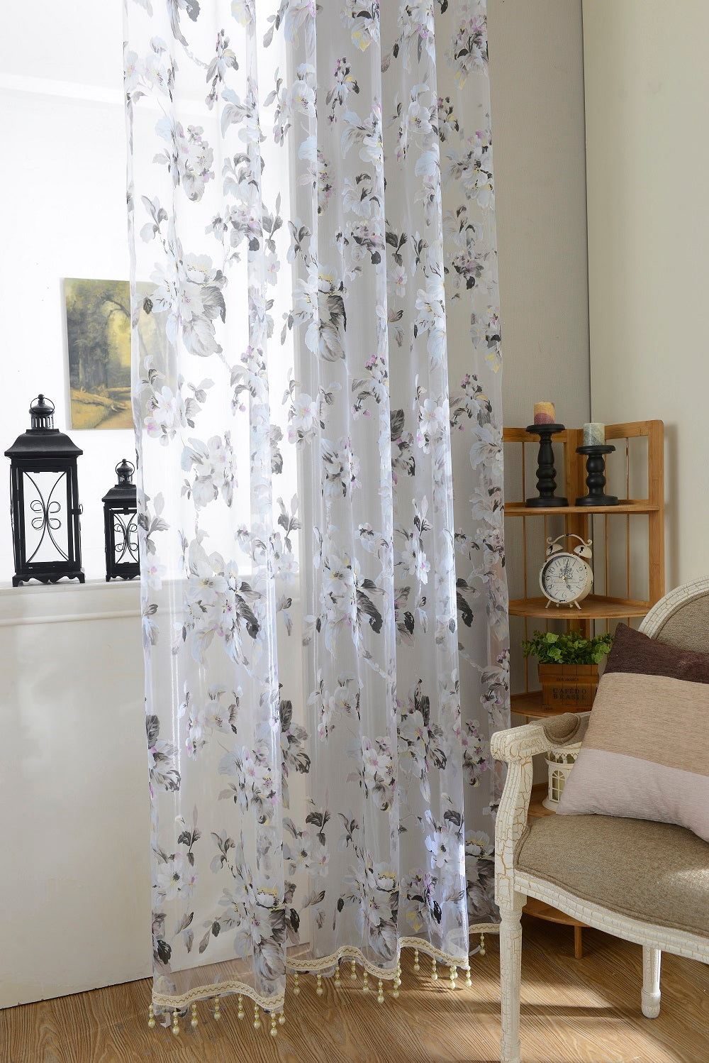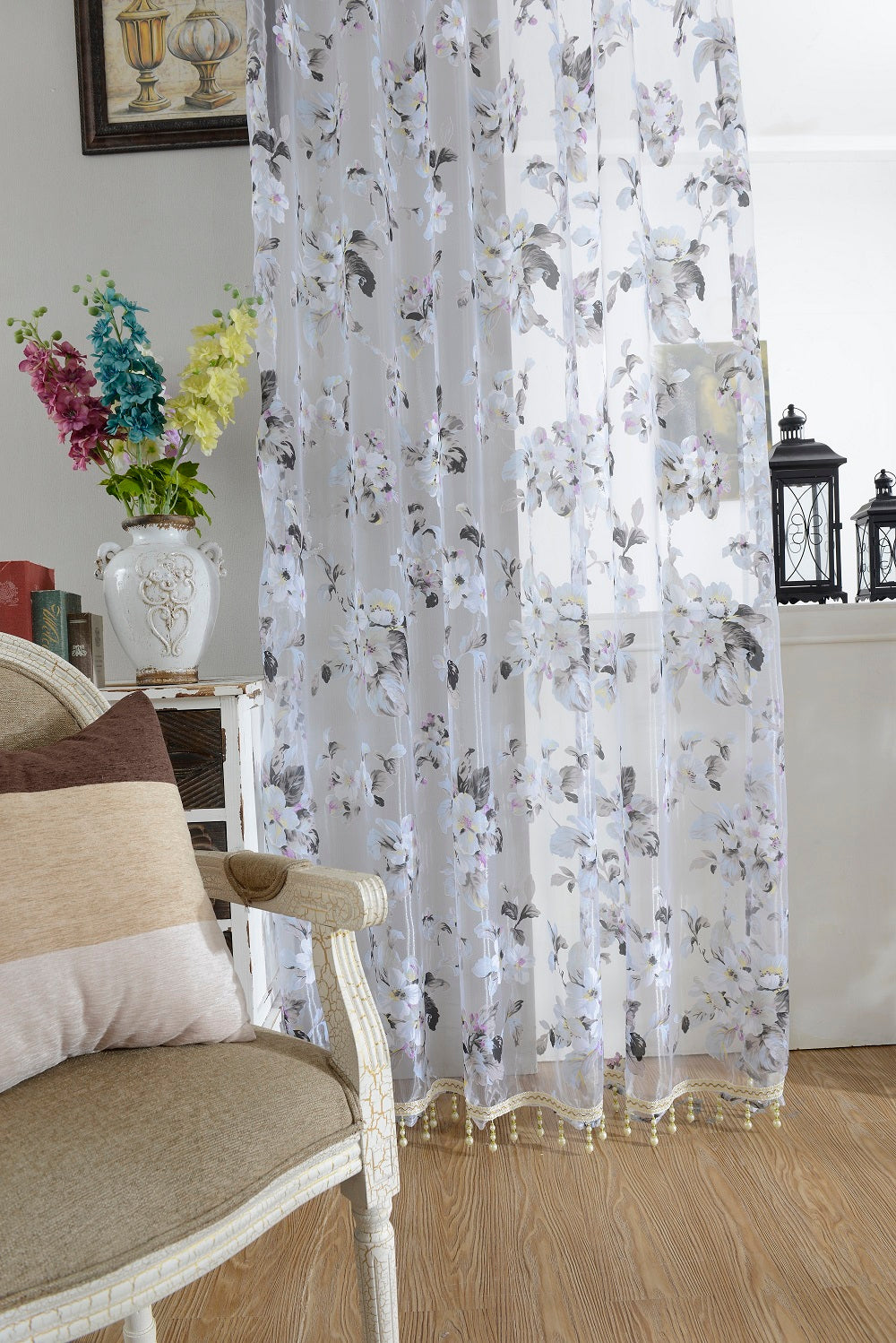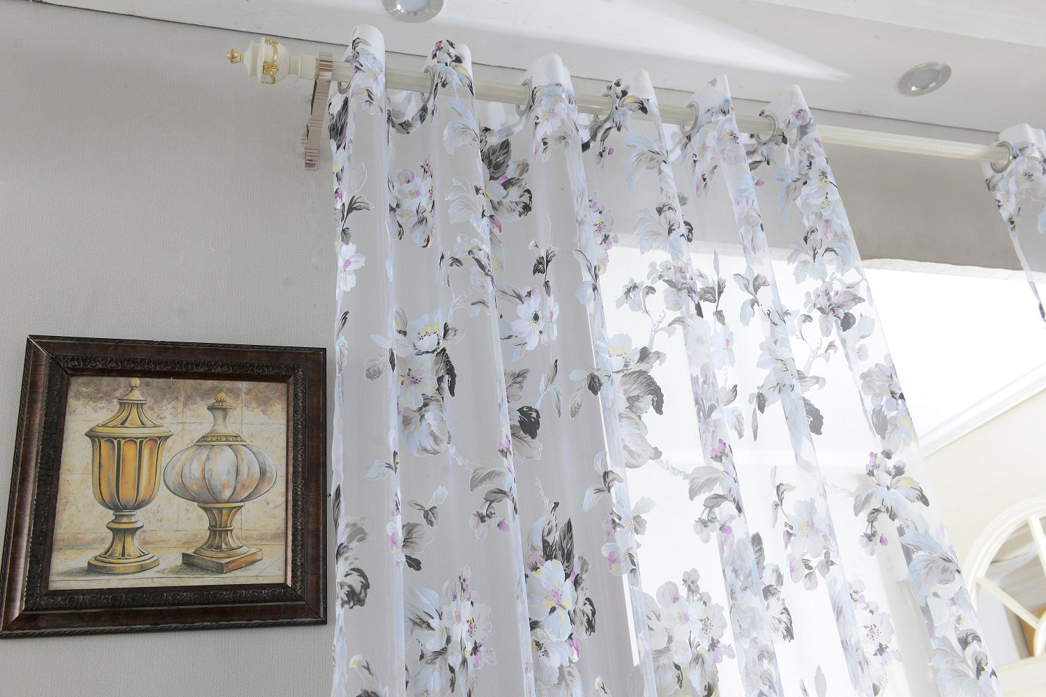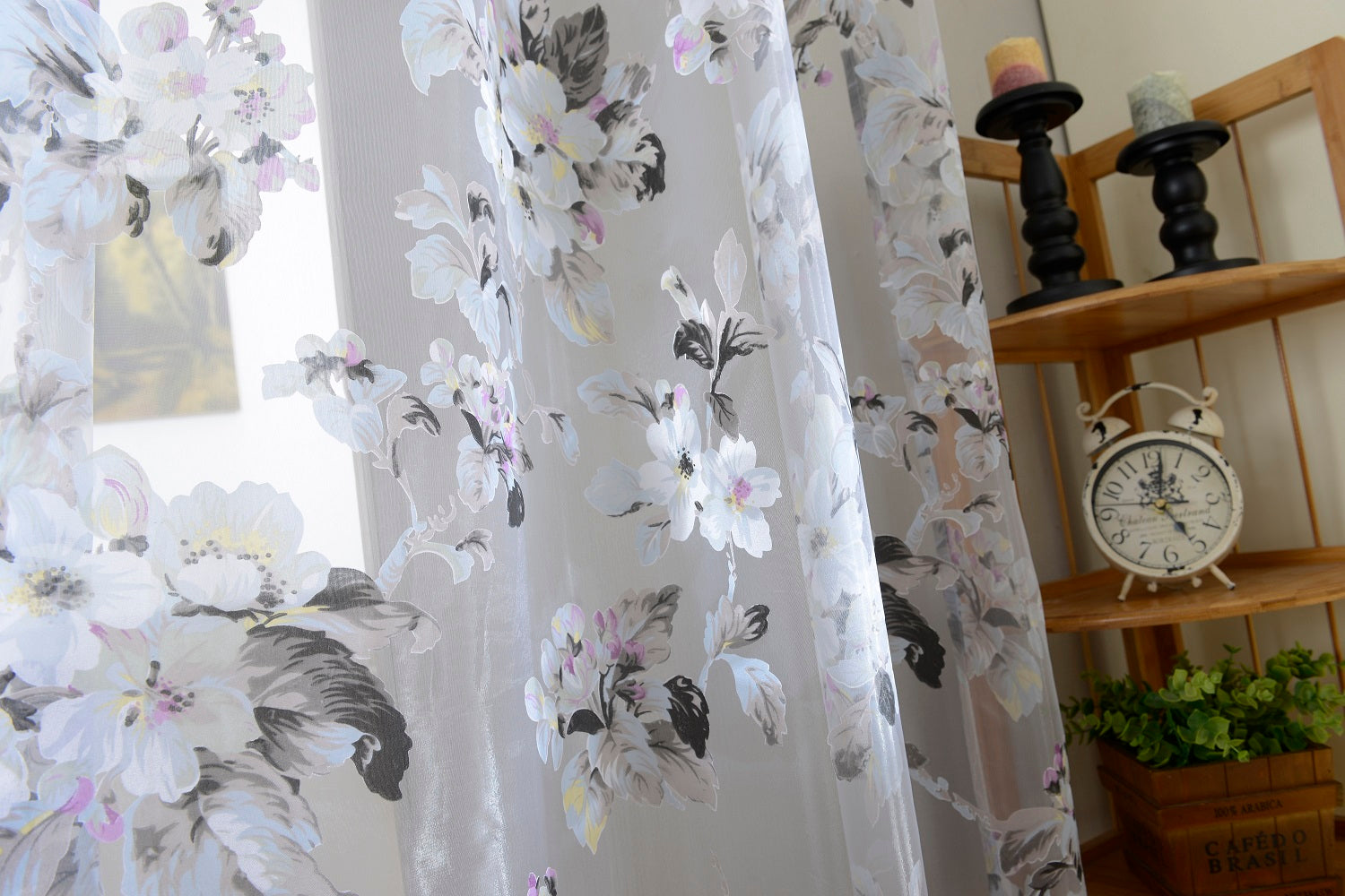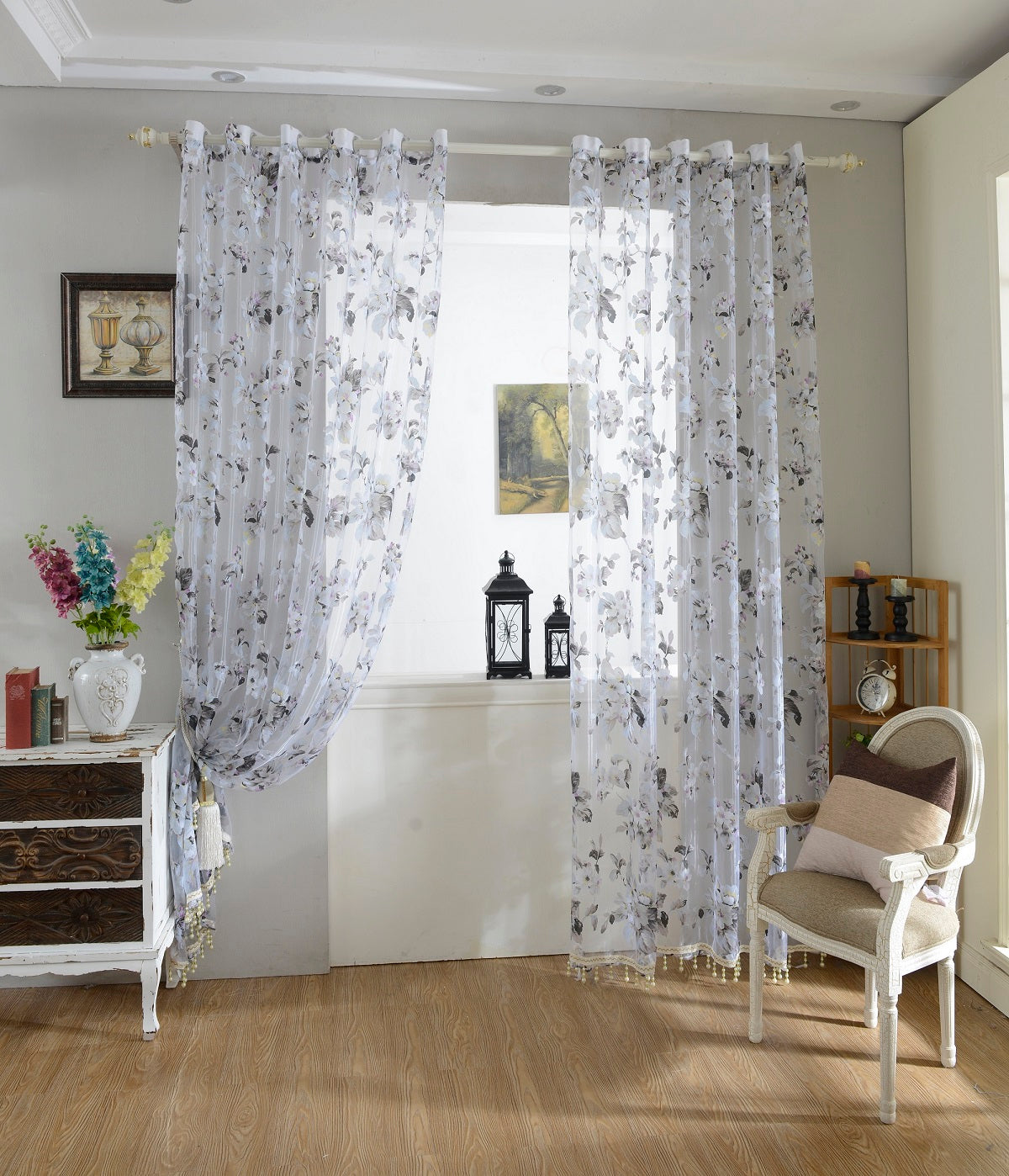 Floral Voile Curtains Window Blinds Panel for Living Room Purple 100*250cm