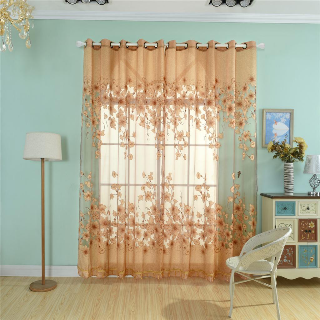 Flower Floral Sheer Window Curtains Gauze Tulle Voile Valance Room Divider