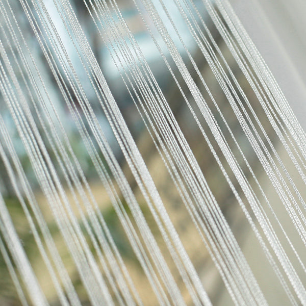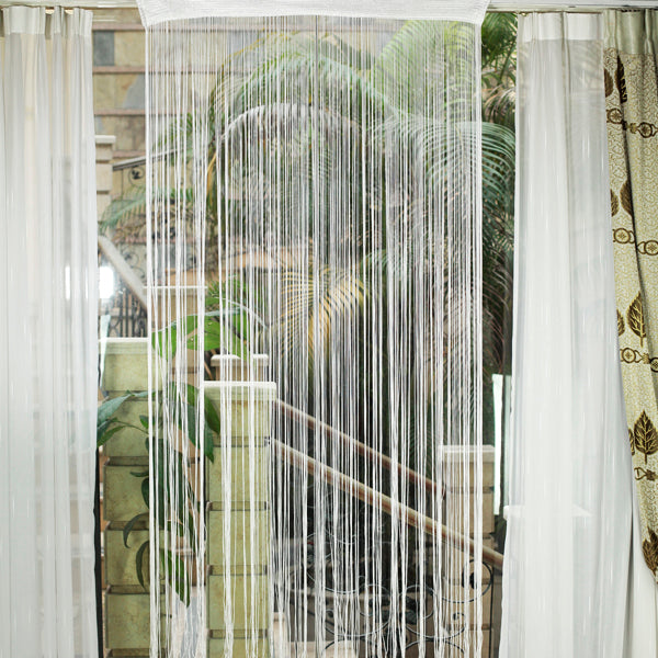 Subtle door curtain is comprised of strings which will dance with the spring / summer breeze. This string door curtain comes with slot top for poles or rods. Use this fabulous door curtain as partitions between rooms or use as a screen to keep flies out.