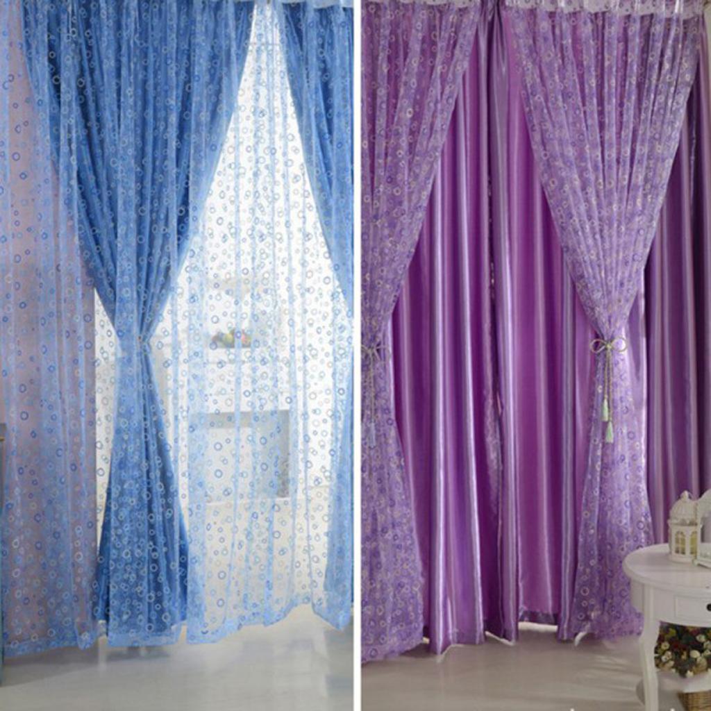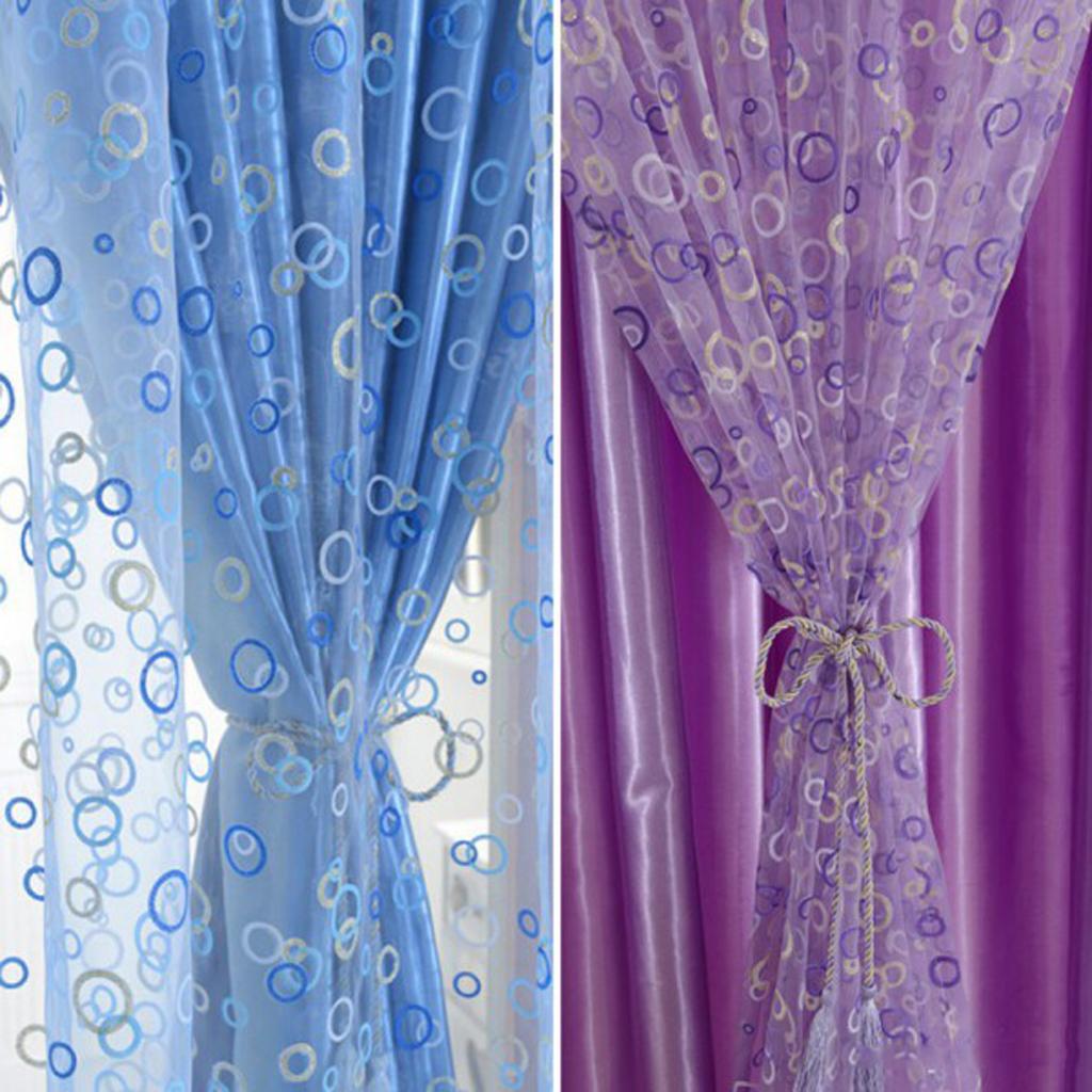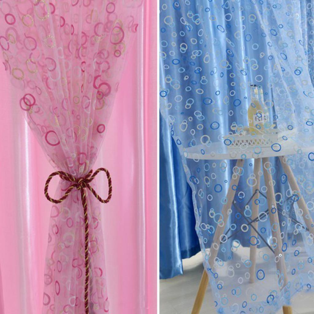 Generic Circle Pattern Tulle Door Window Curtains Panel Drapes Blue 200x100cm