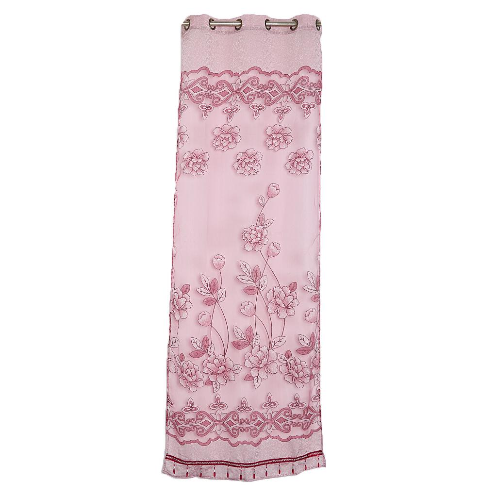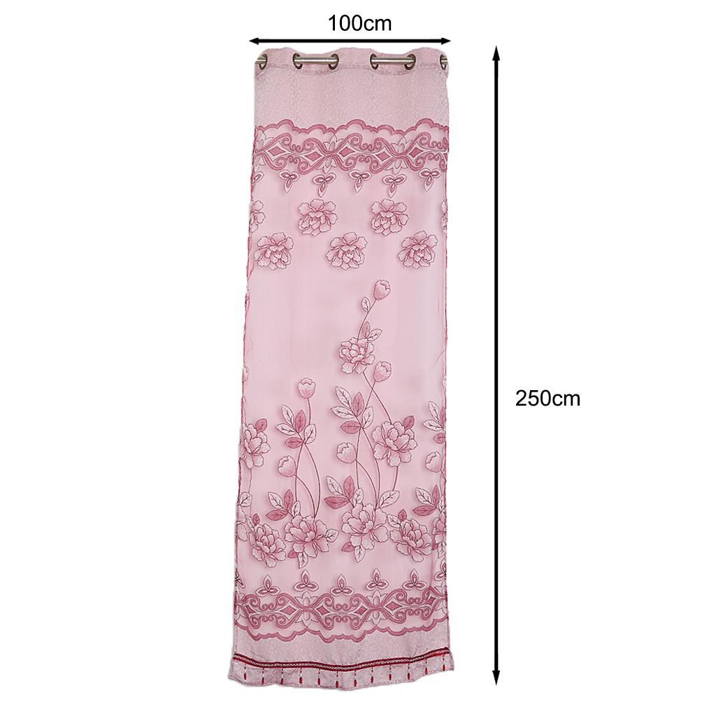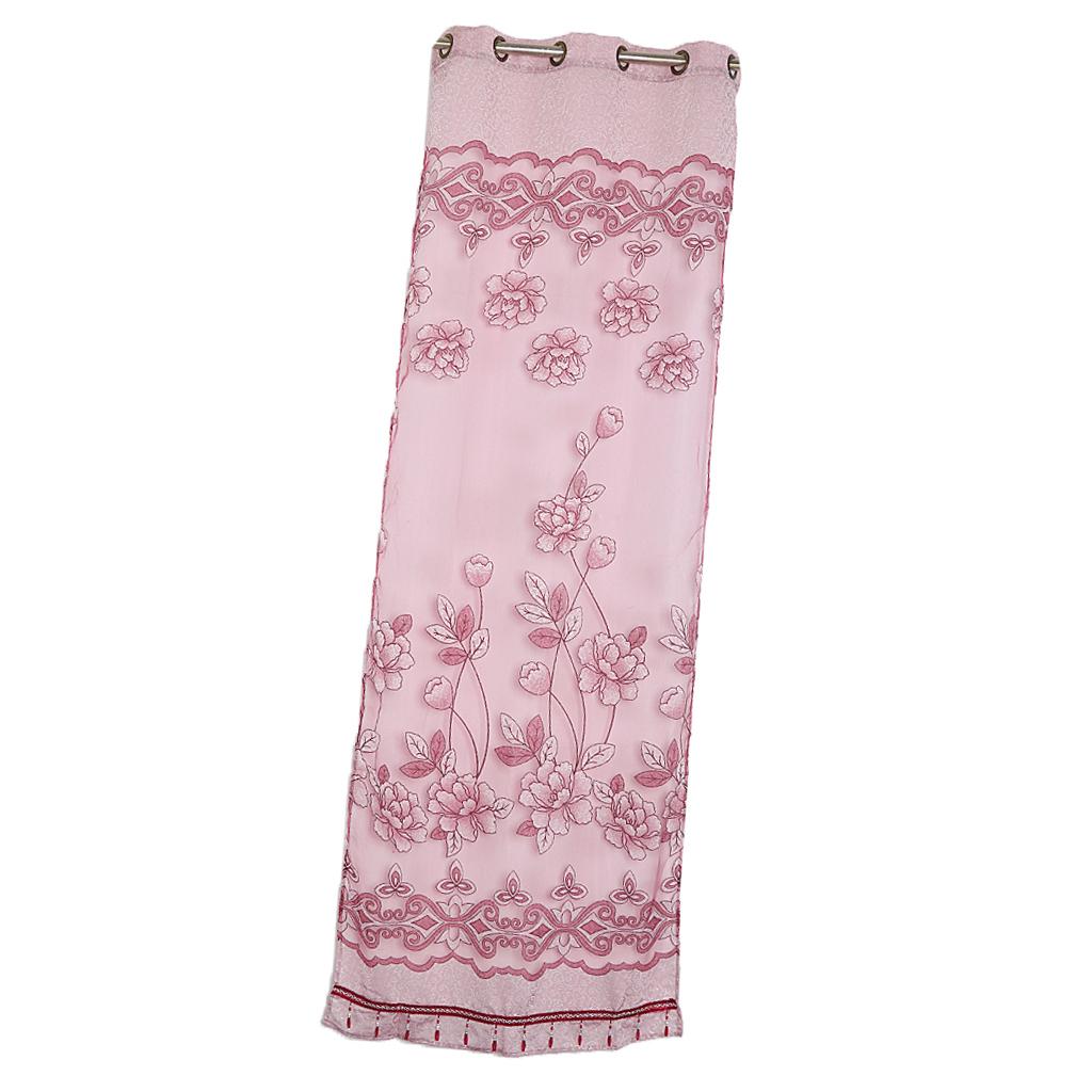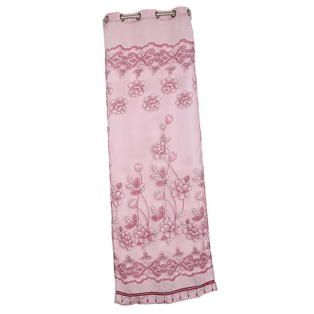 Generic Jacquard Flower Pattern Beaded Tulle Door Window Curtains Panel Drapes Wine Red 250x100cm