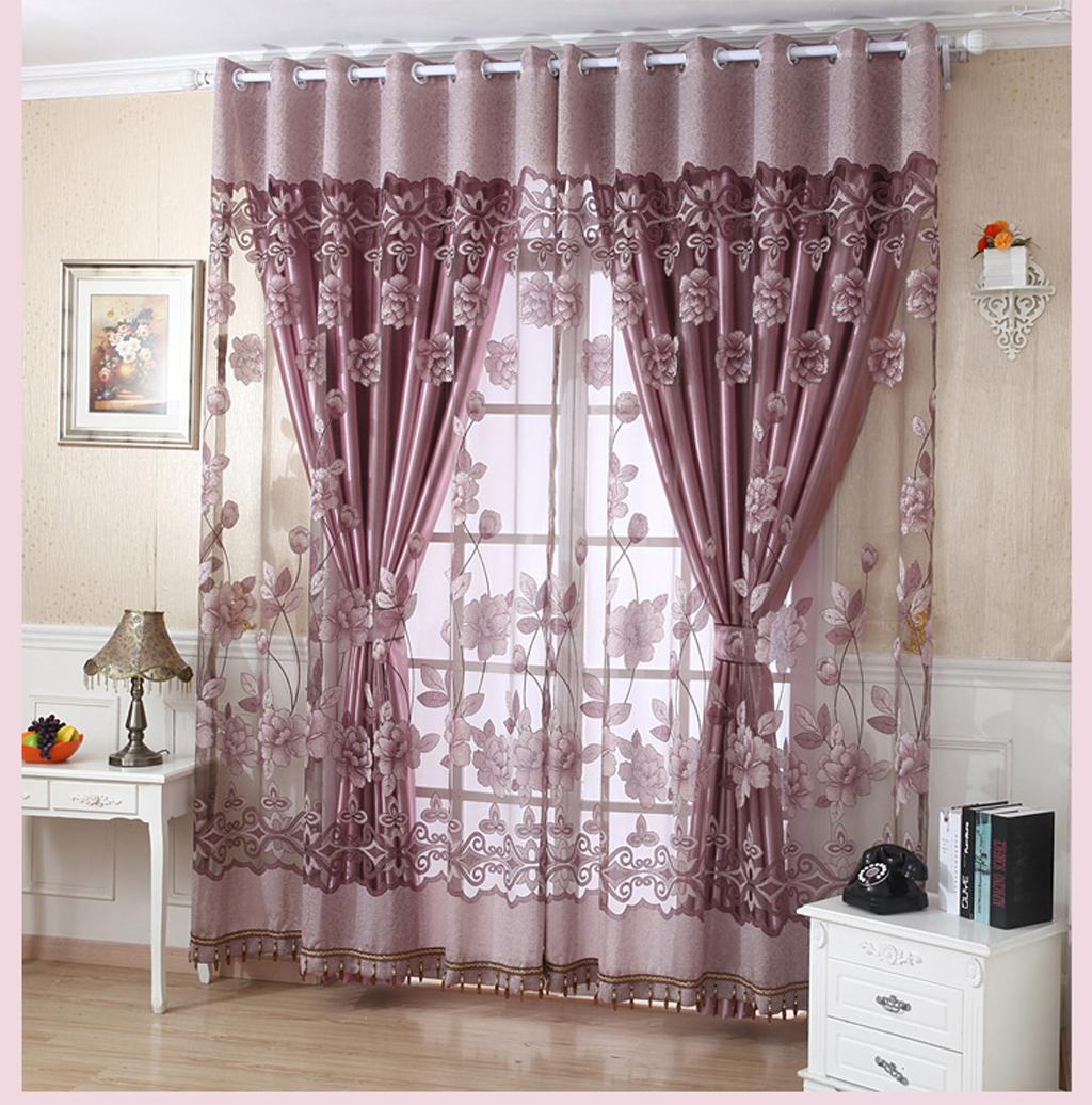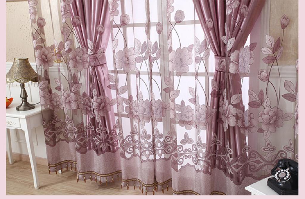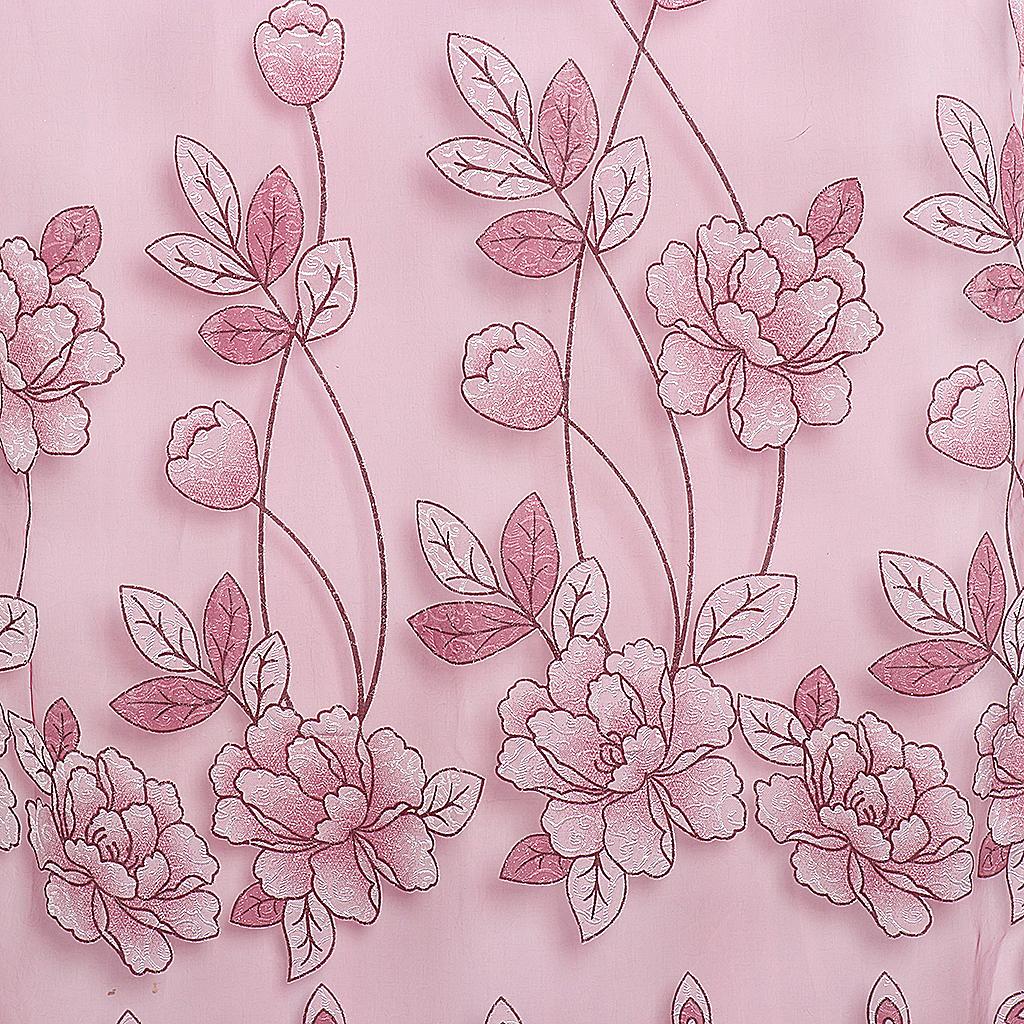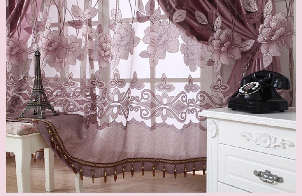 Generic Jacquard Flower Pattern Beaded Tulle Door Window Curtains Panel Drapes Wine Red 250x100cm