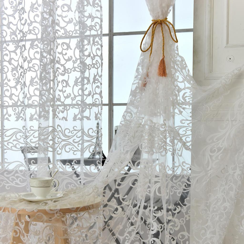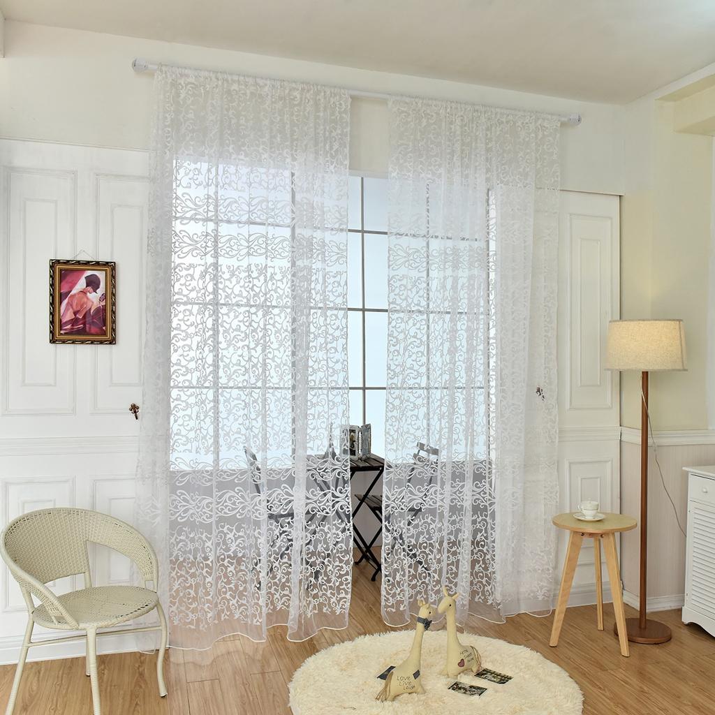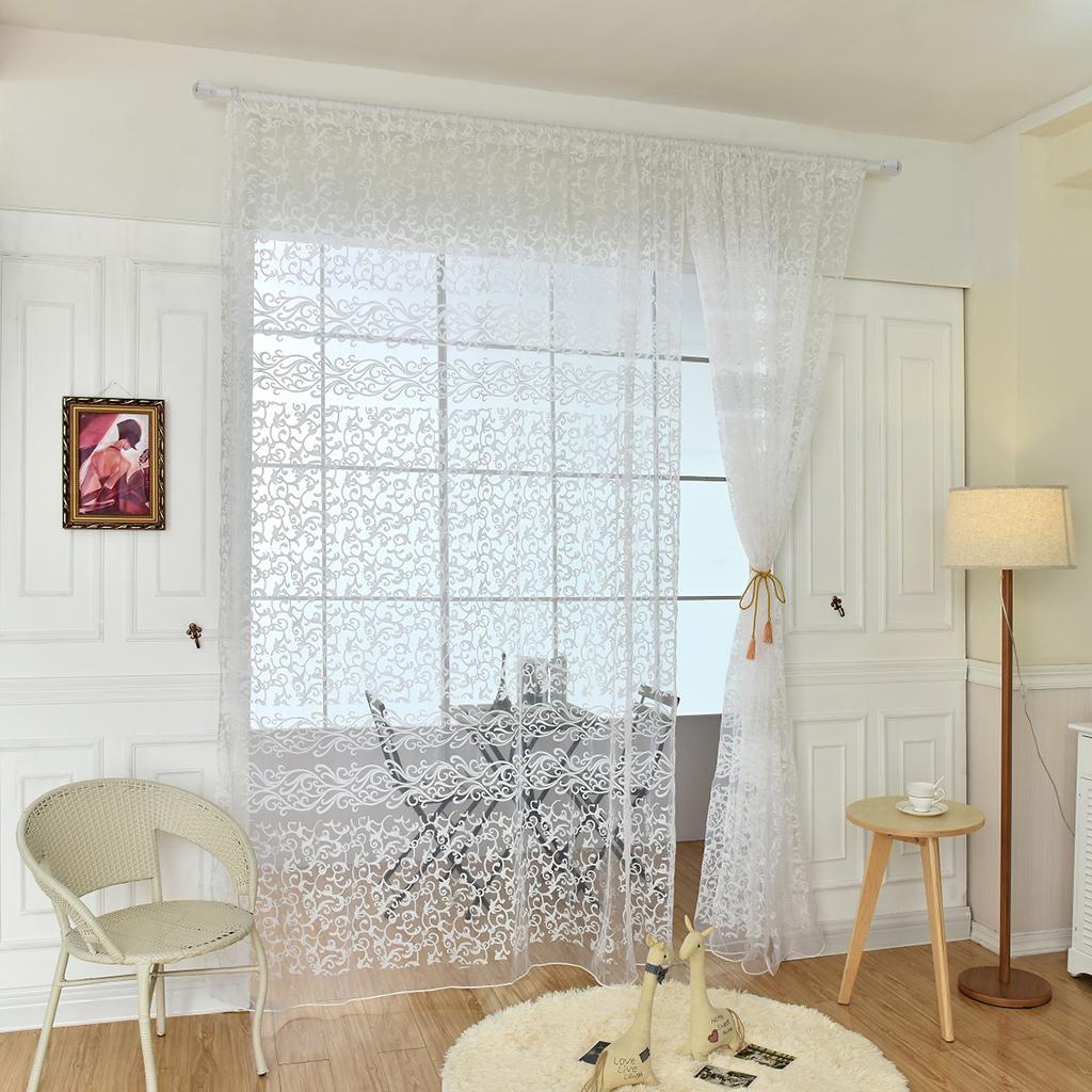 Glass Yarn Window Curtain Drape Panel Sheer Scarf Valance Home Decor White