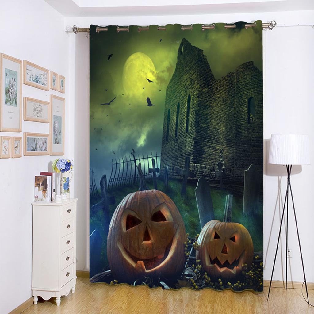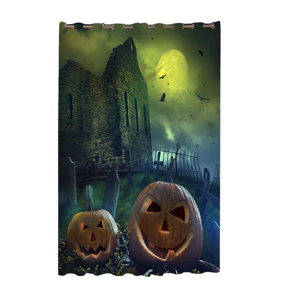 With print of scaring pumpkin, skeleton, dread trees for choice, great halloween theme curtain;