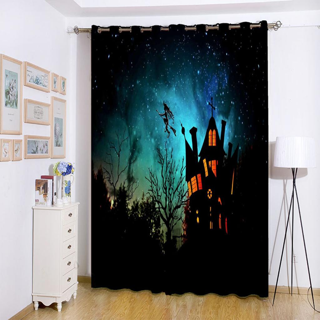With print of scaring pumpkin, skeleton, dread trees for choice, great halloween theme curtain;