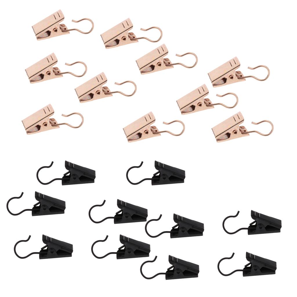 Heavy Duty Curtain Clips with Hook Clamp Hanger Clips 30Pcs Black+30Pcs Gold