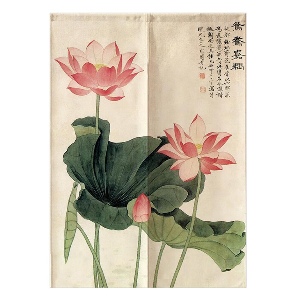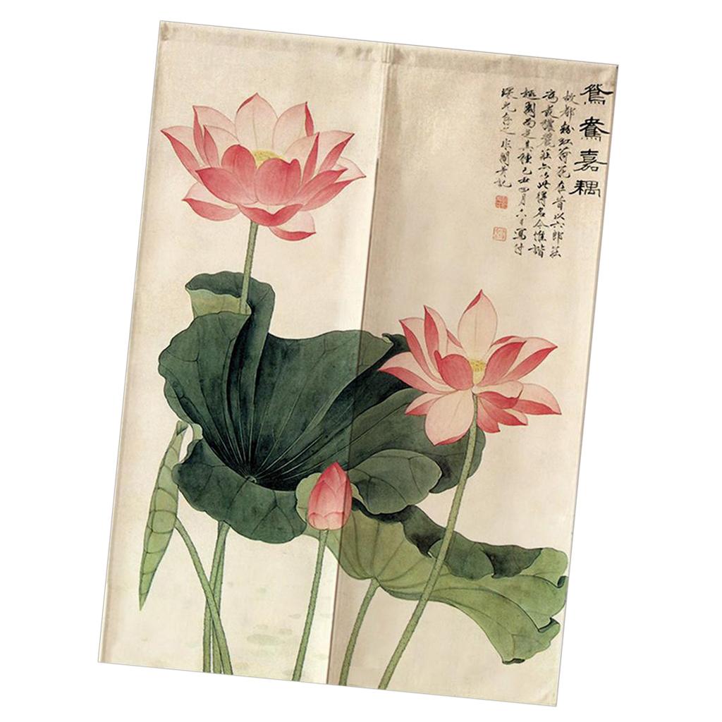 Japanese Style Cotton Linen Doorway Curtain Lotus-85x150cm