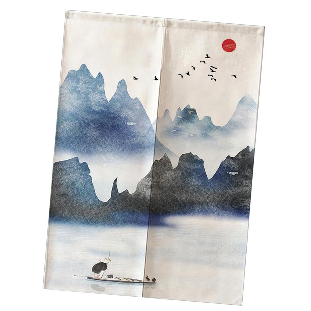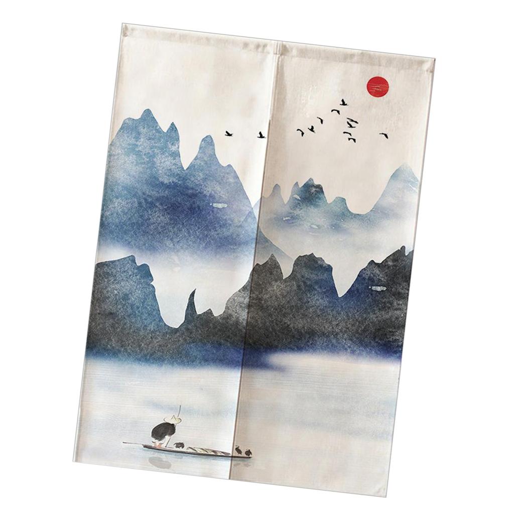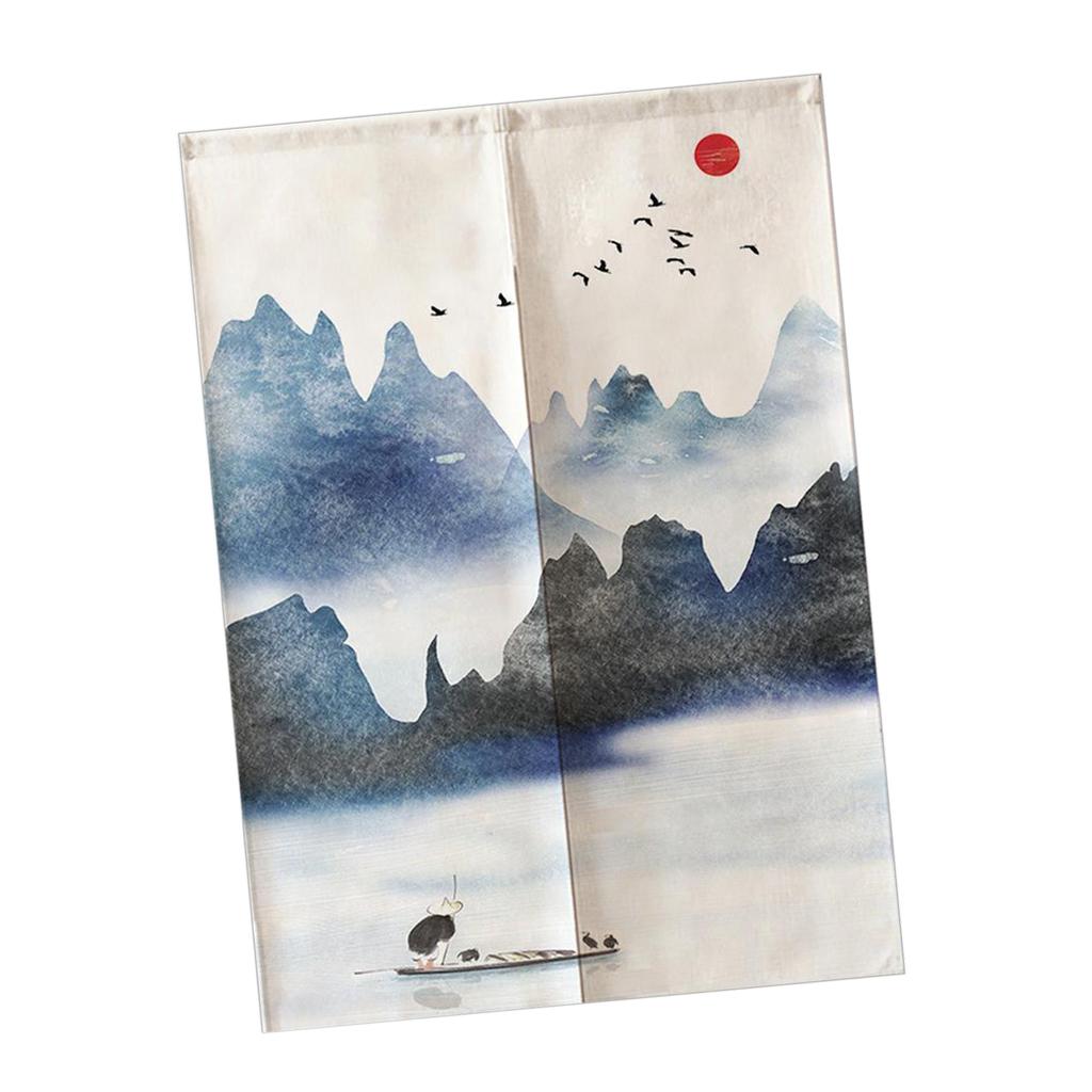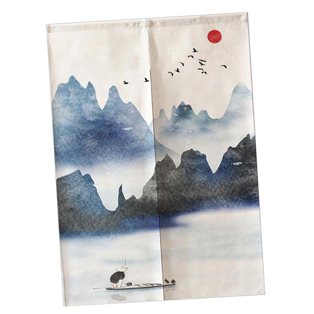 Japanese Style Cotton Linen Doorway Curtain Mountains and Birds-85x150cm