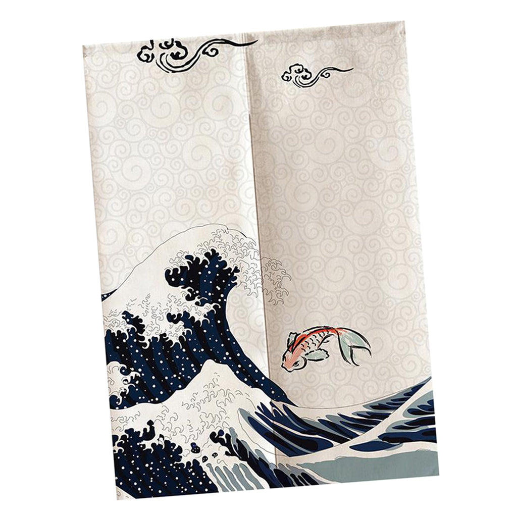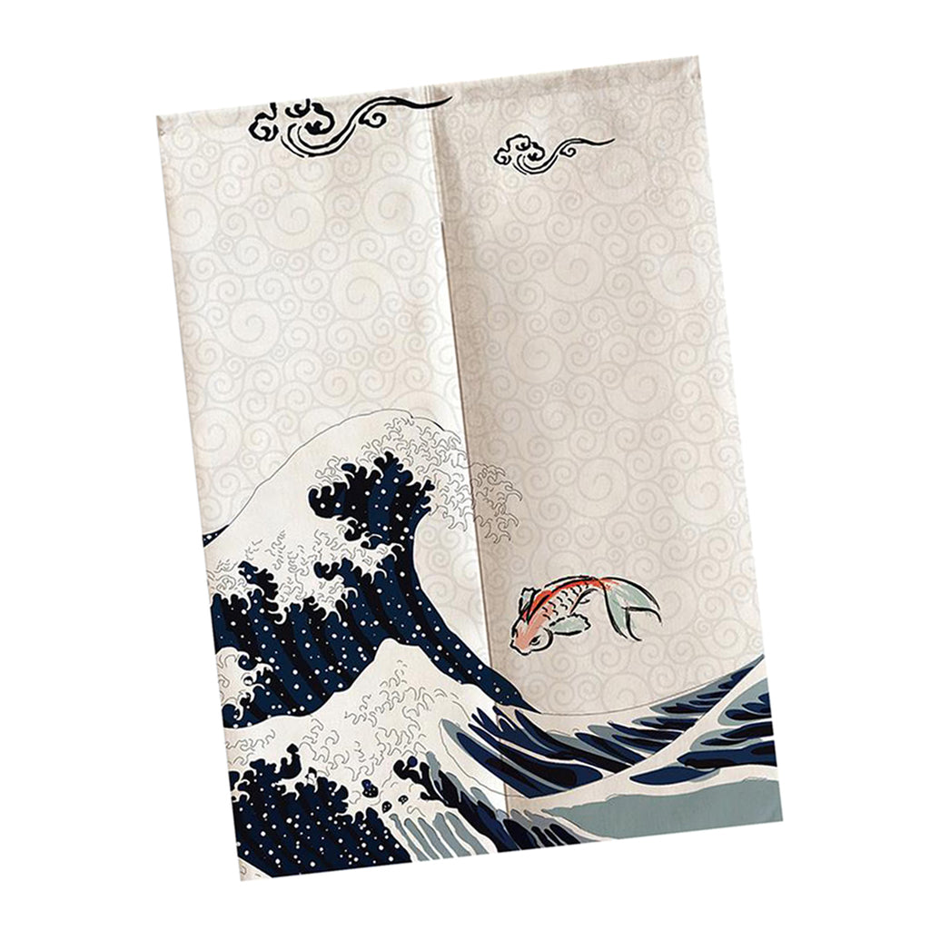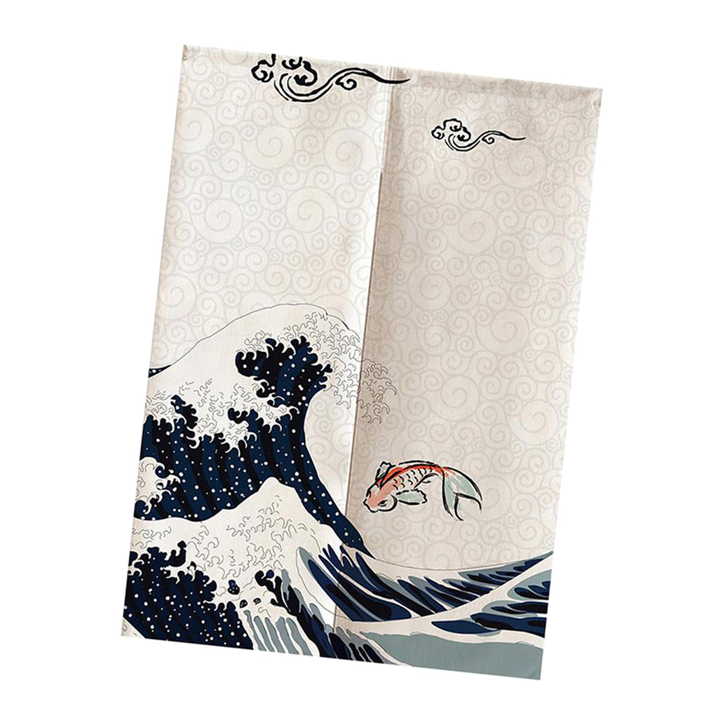 Japanese Style Cotton Linen Doorway Curtain Seawaves-85x120cm