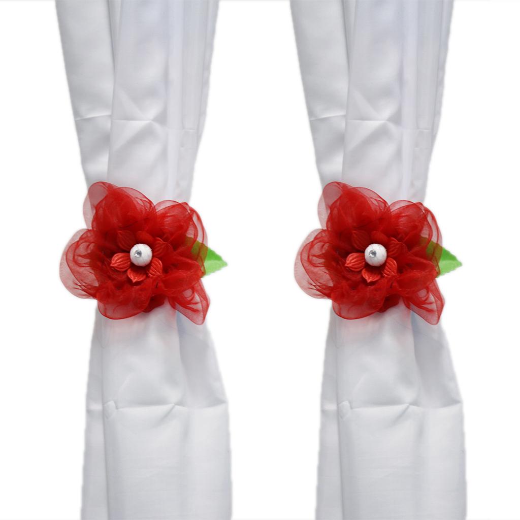 Organdy Flowers Curtain Drapery Holdbacks Buckle Curtain Tie Back Red