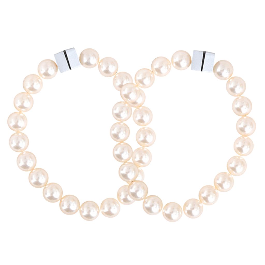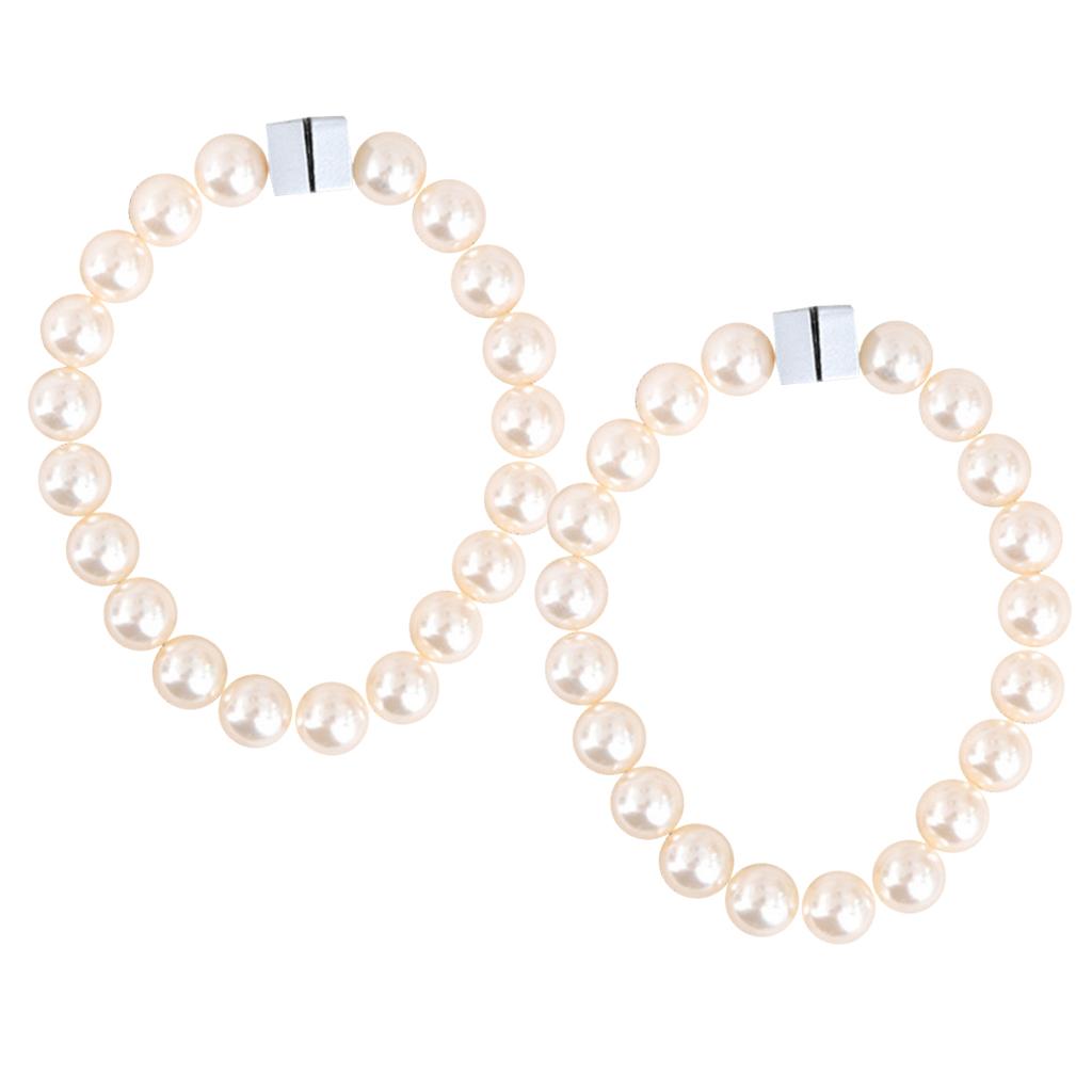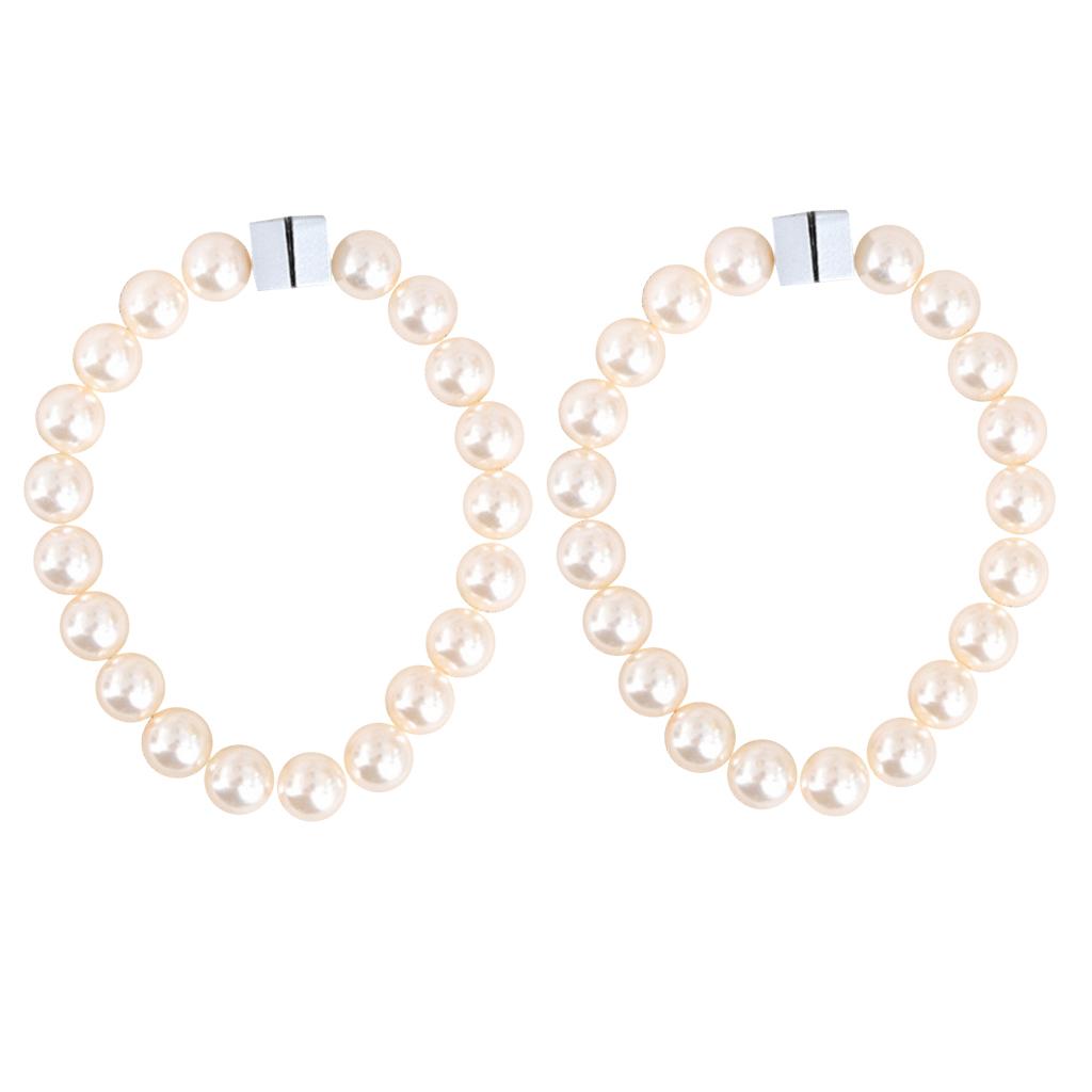 Pair Artifical Pearl Beaded Curtain Drapery Tieback Holder Buckle Clip Beige_30cm