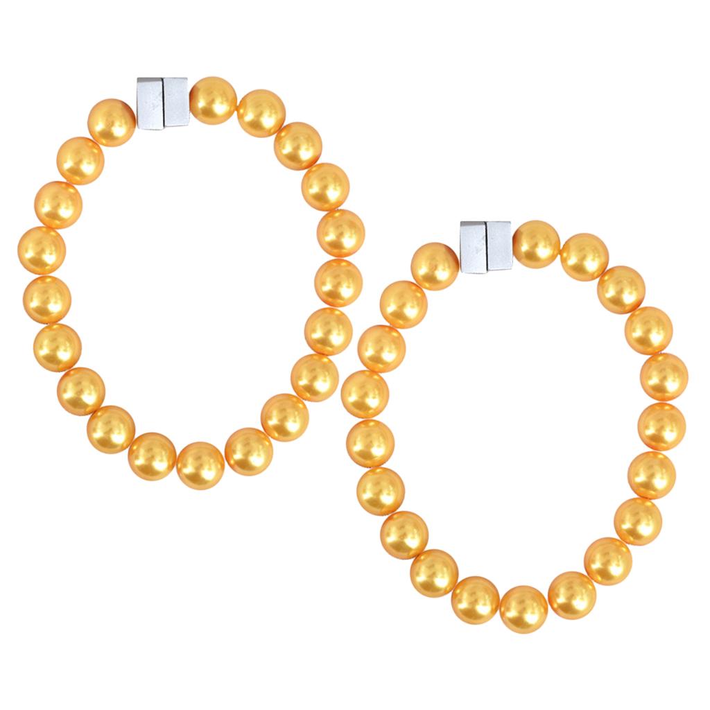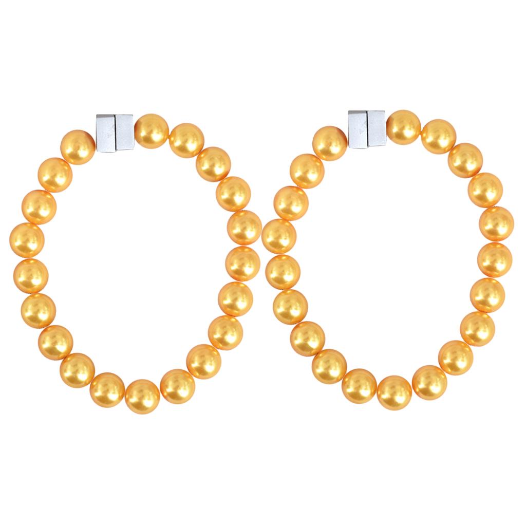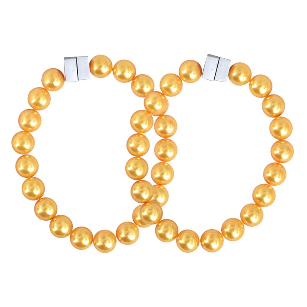 Pair Artifical Pearl Beaded Curtain Drapery Tieback Holder Buckle Clip Yellow_30cm