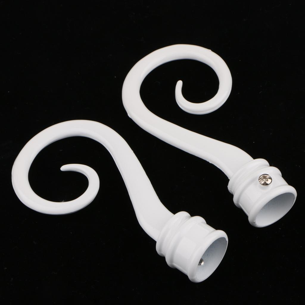 Pair Curtain Pole Recess Brackets Rod Finial Window Treatment Hardware White