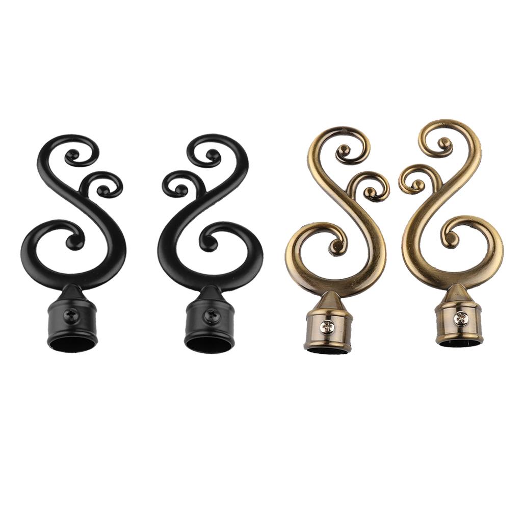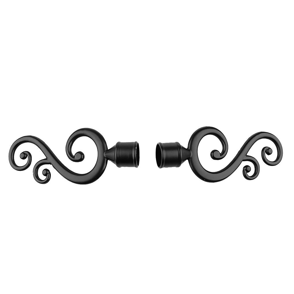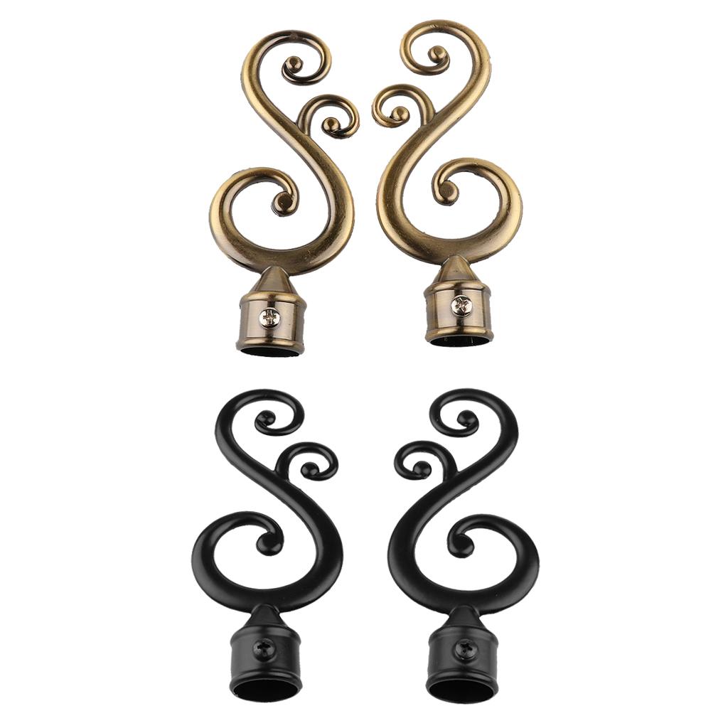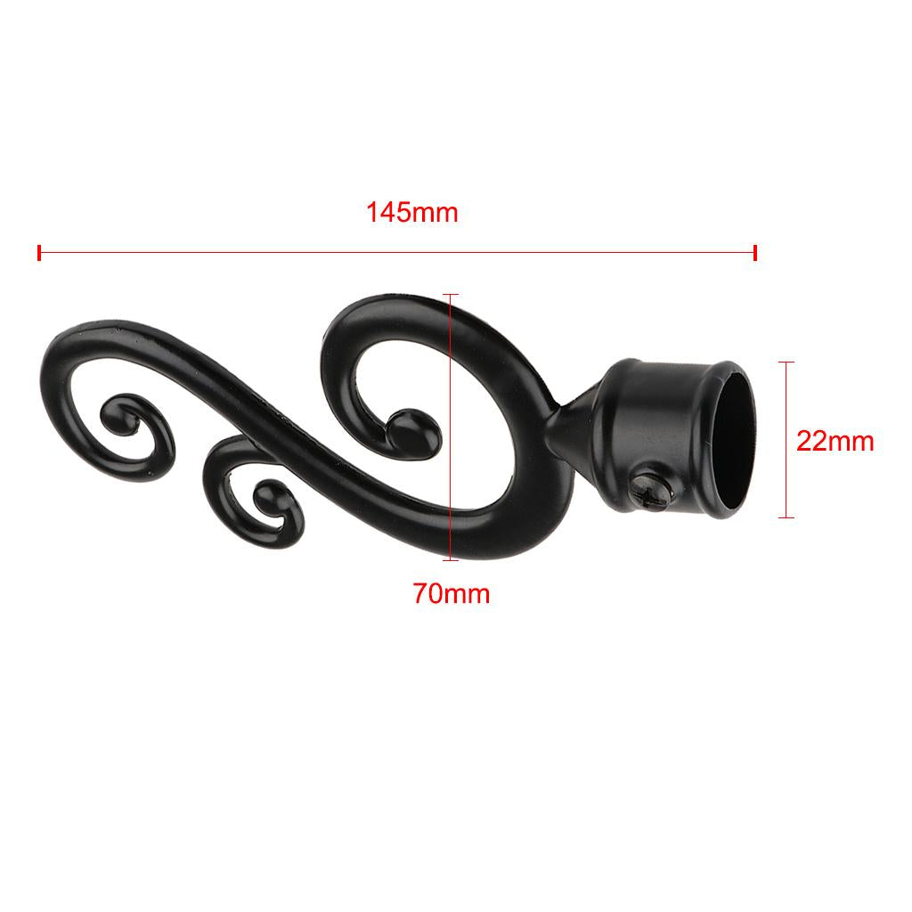 Pair Window Curtain Pole End Drape Rod Finals Head Inner Dia. 22mm 1# Black