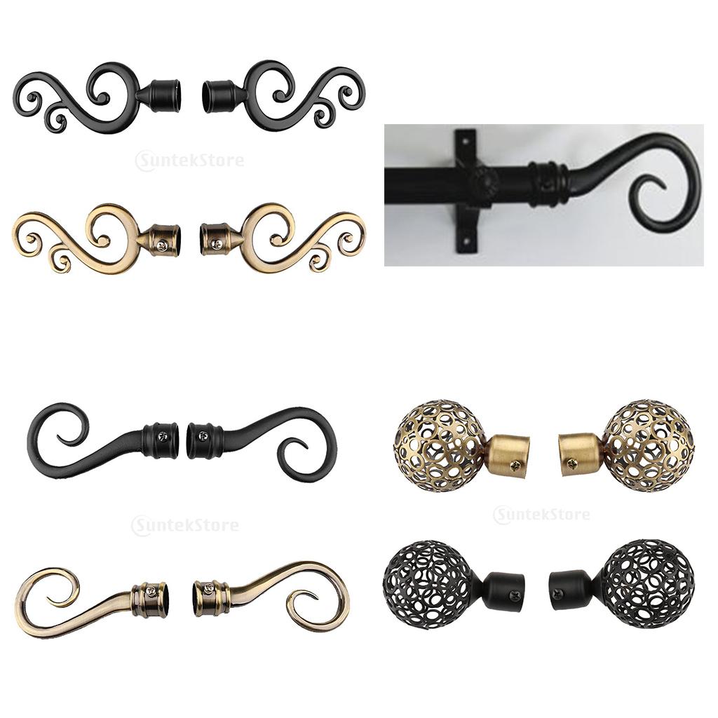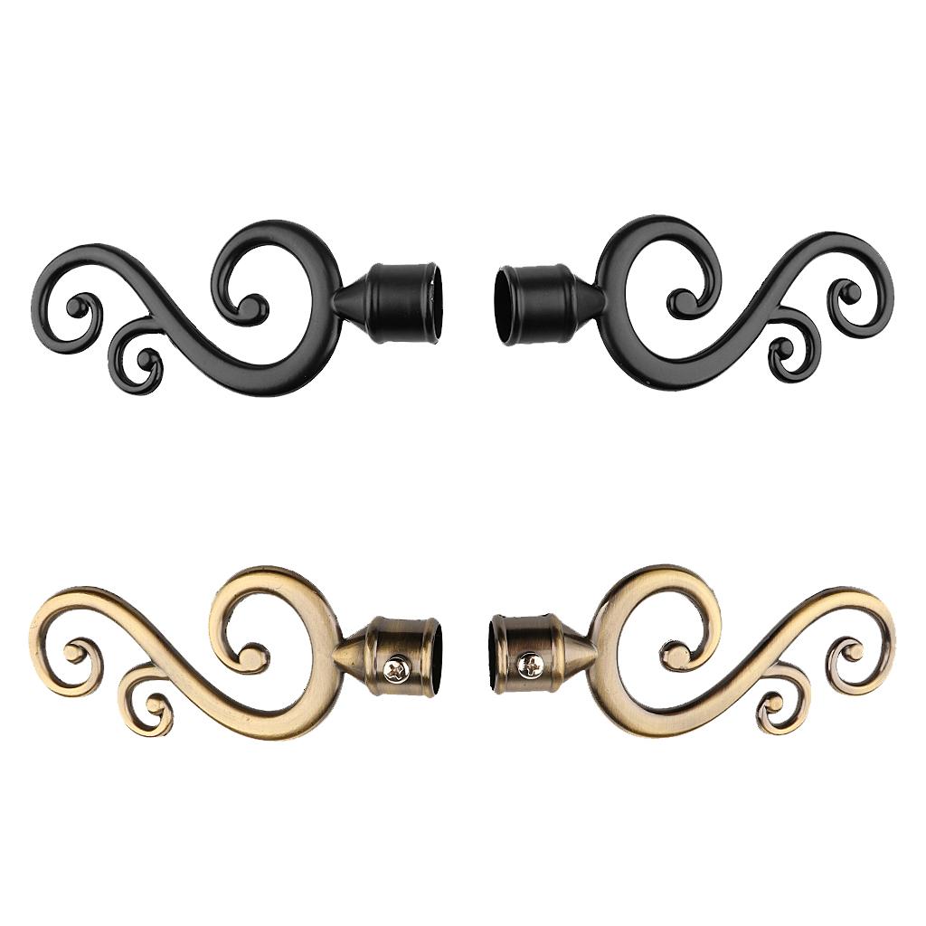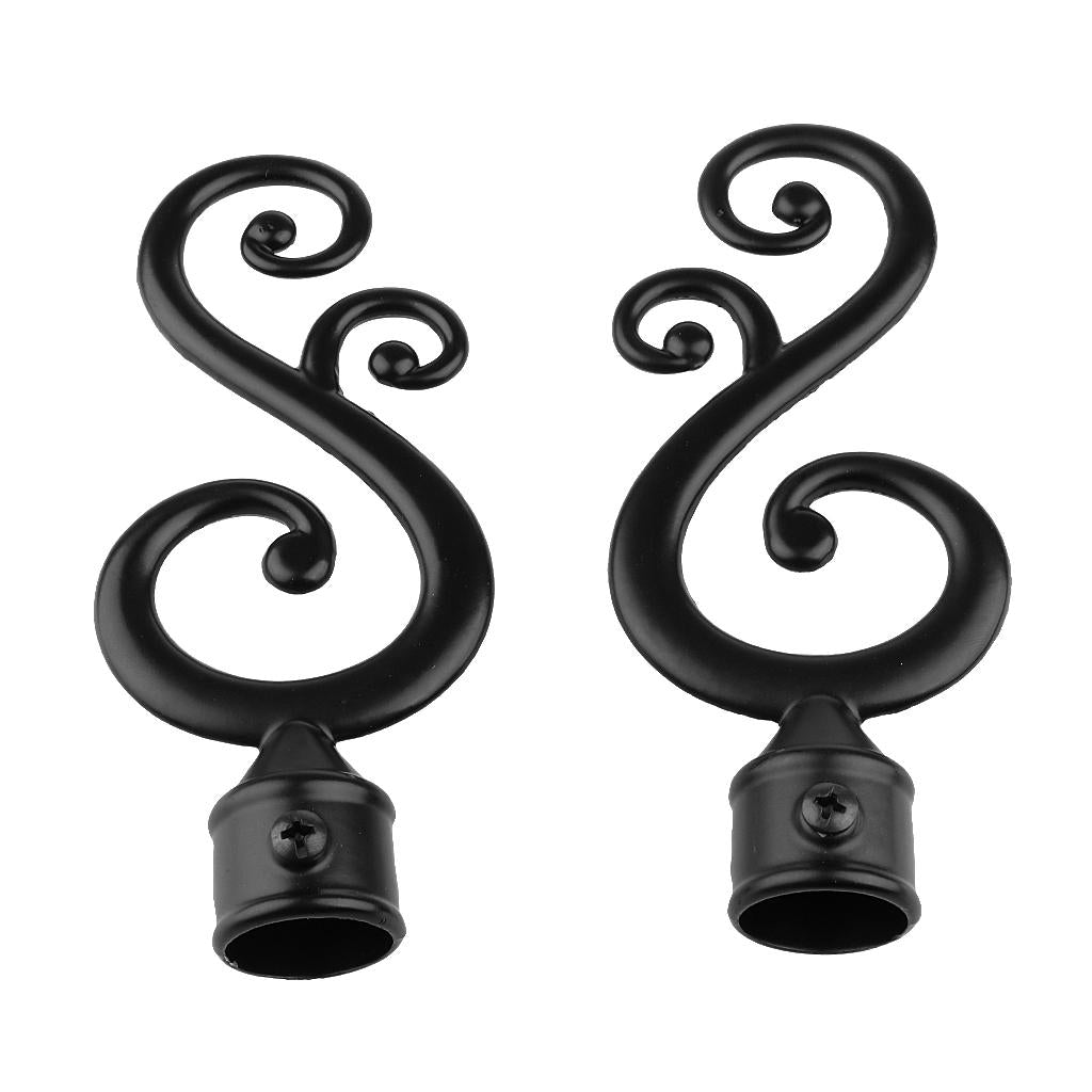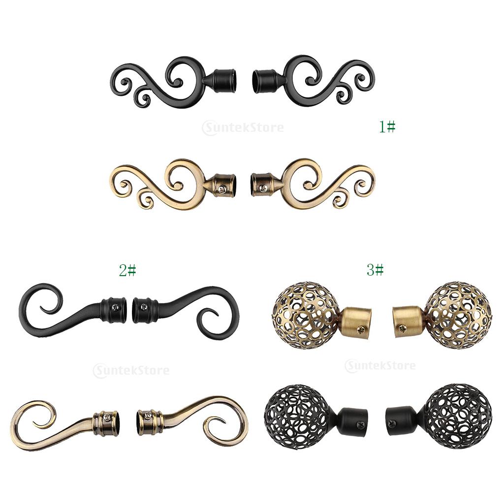 Pair Window Curtain Pole End Drape Rod Finals Head Inner Dia. 22mm 1# Black