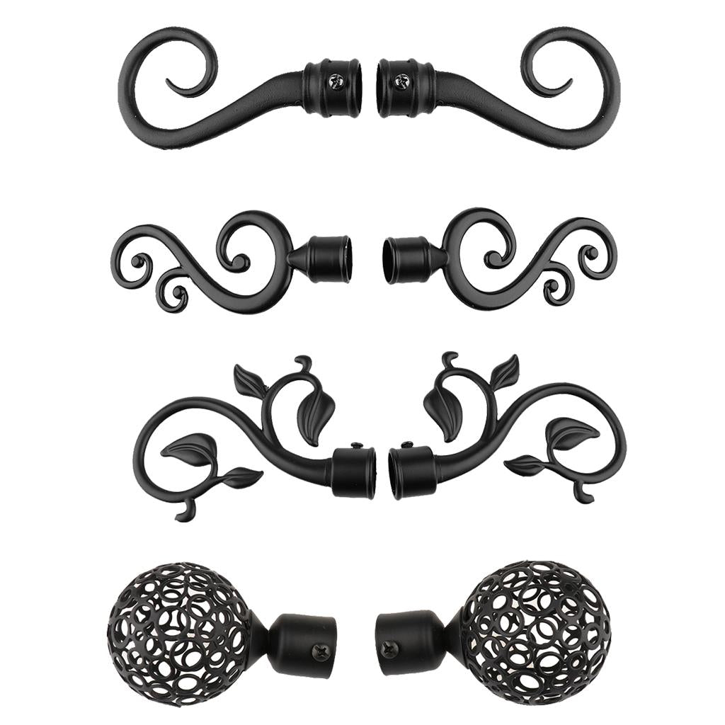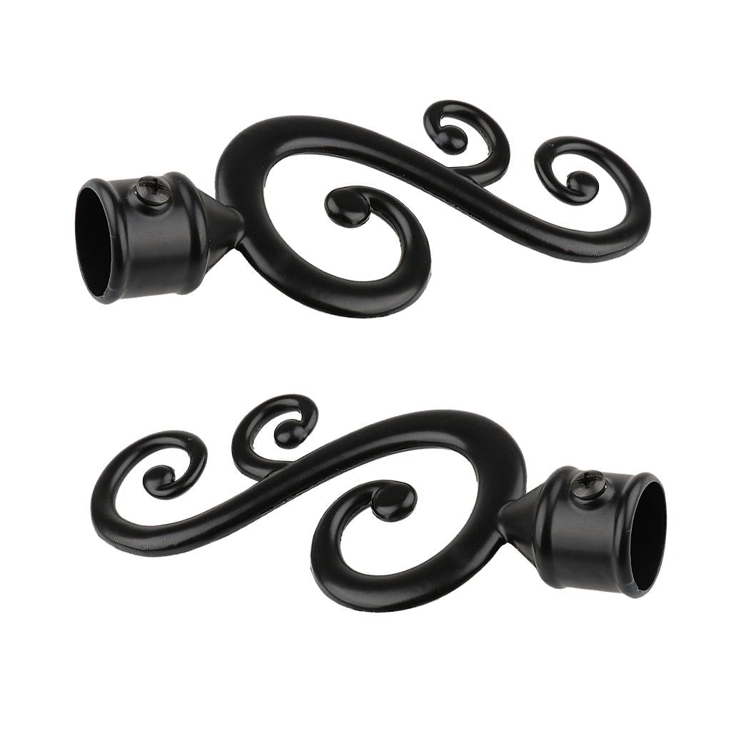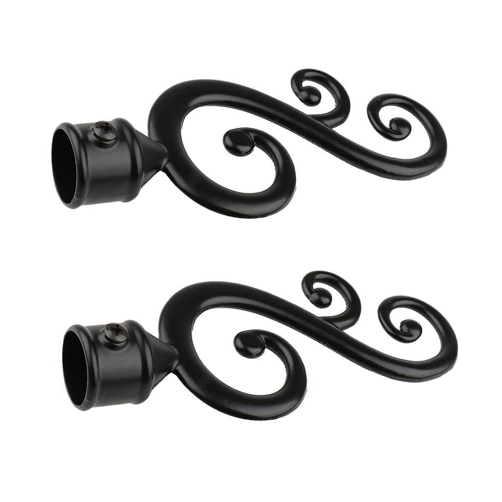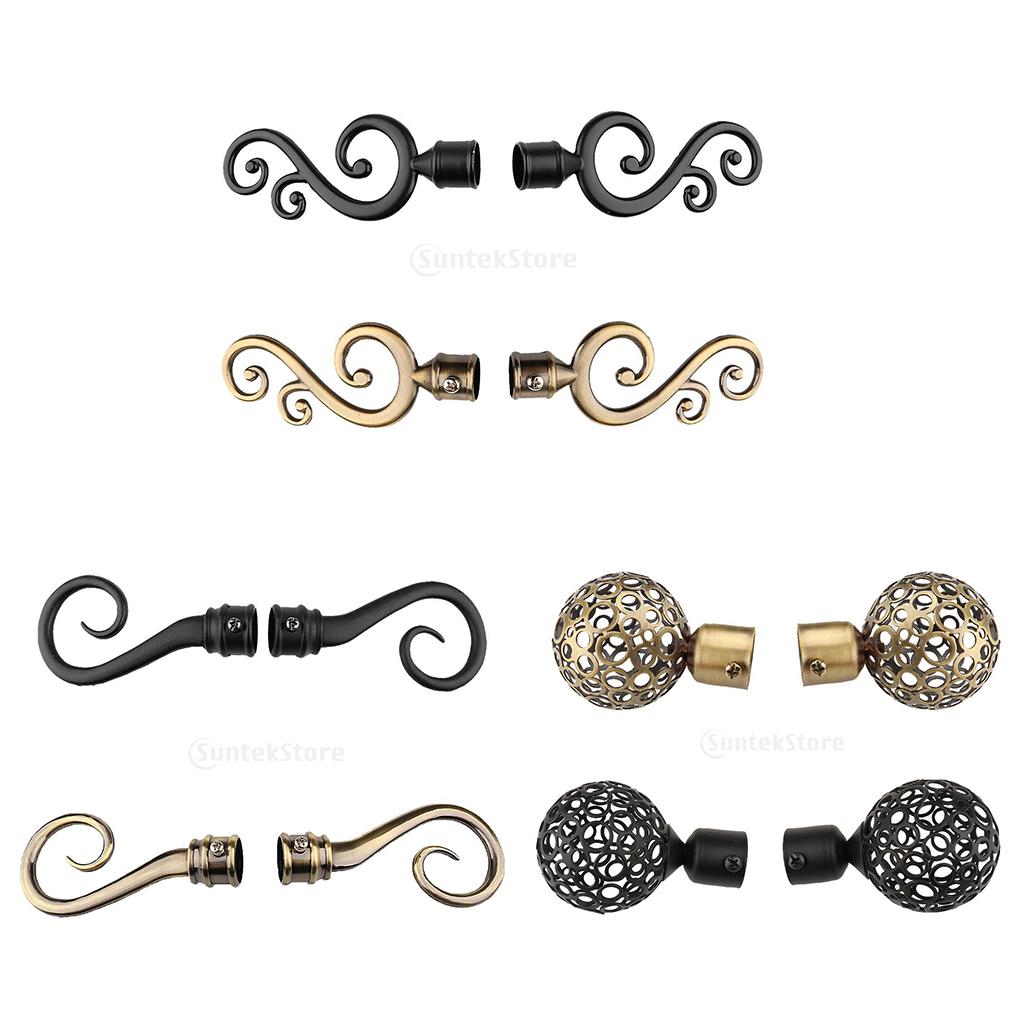 Pair Window Curtain Pole End Drape Rod Finals Head Inner Dia. 22mm 1# Black