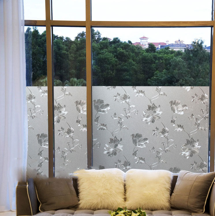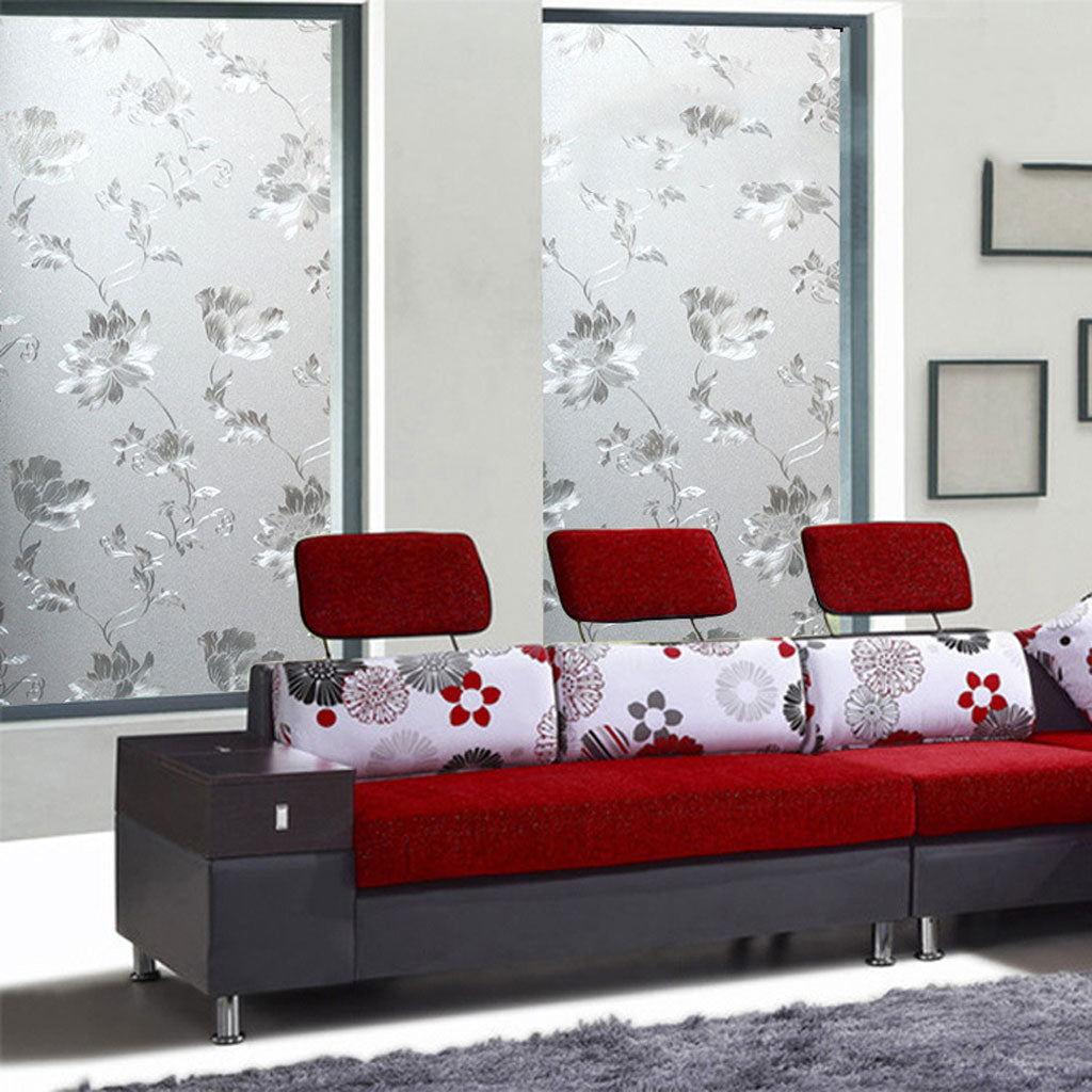 Reusable 45x100cm Frosted Frost Frosting Glass Window Film Sticker Hibiscus