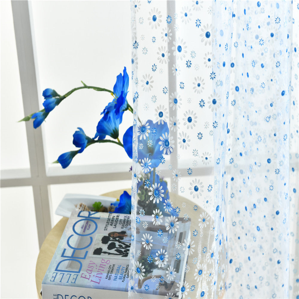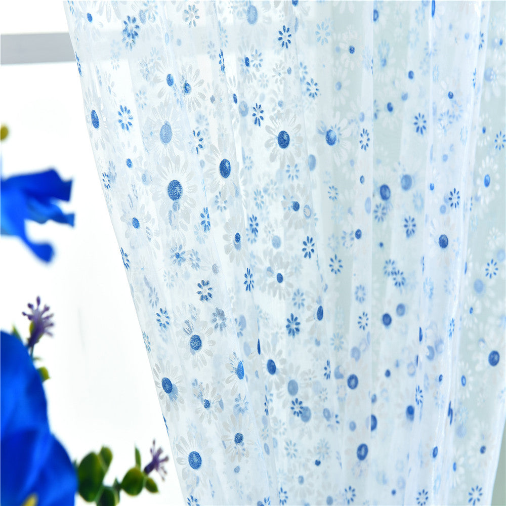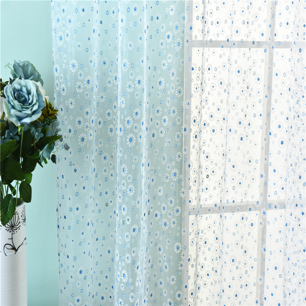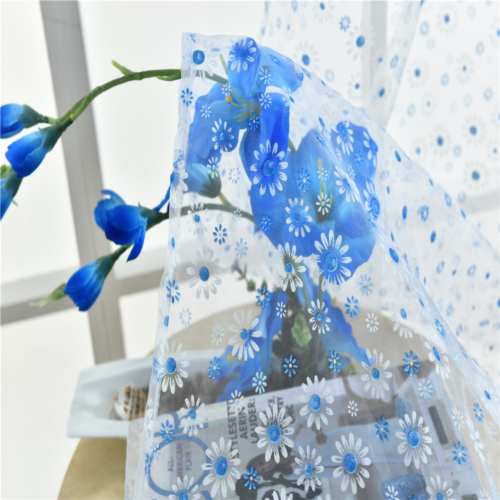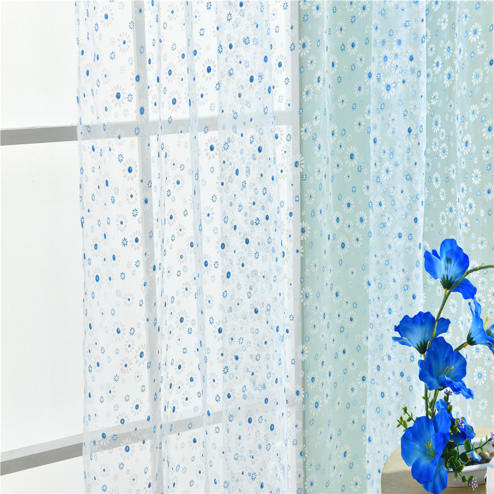 Rod Pocket Daisy Print Sheer Window Curtain Gauze Curtain 100x200cm Blue