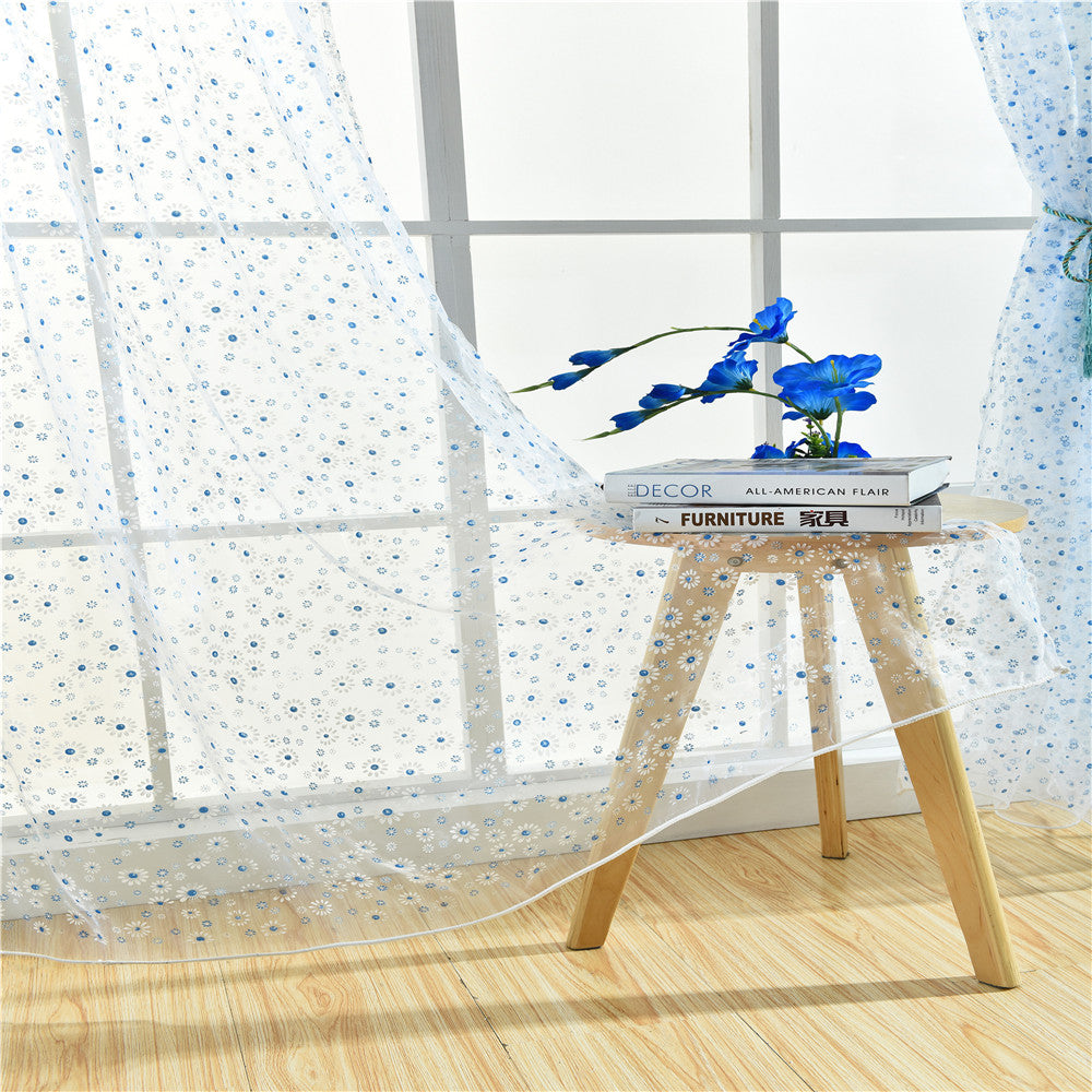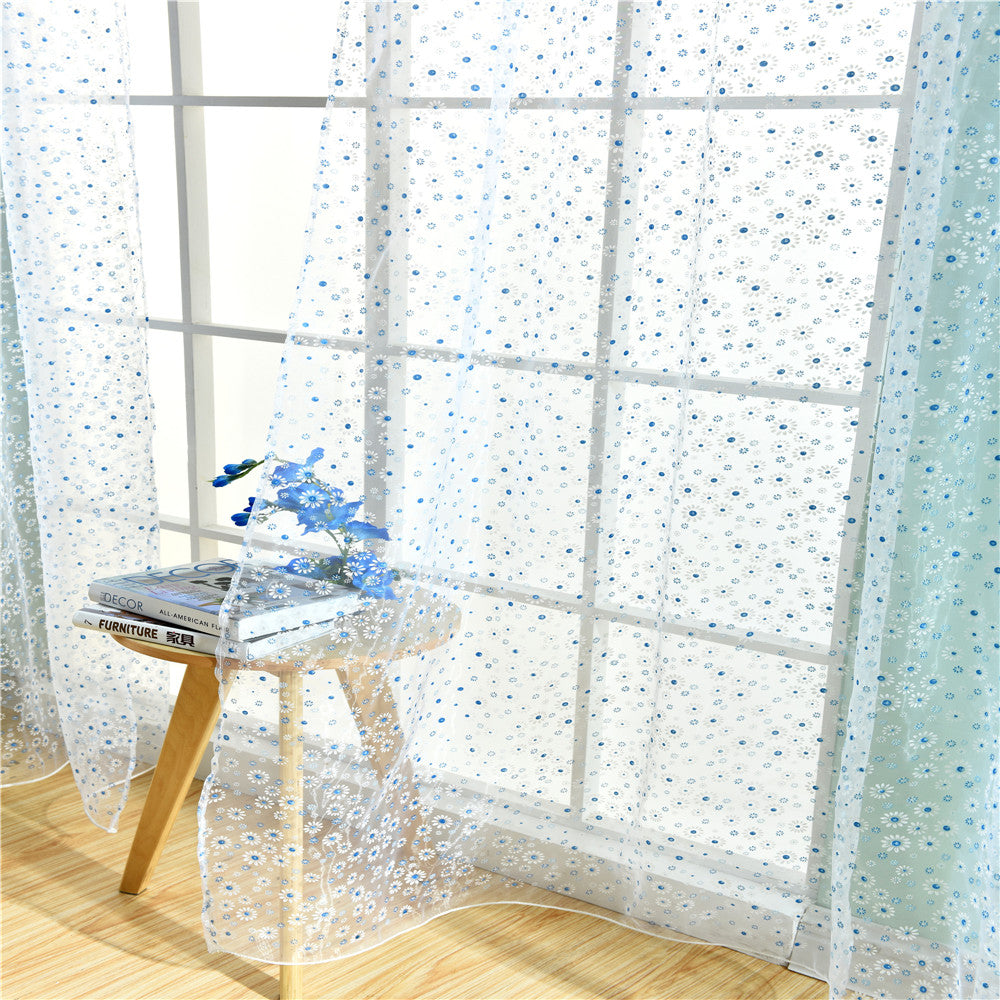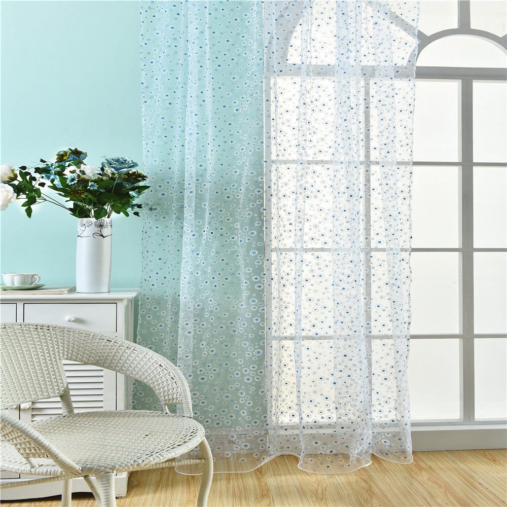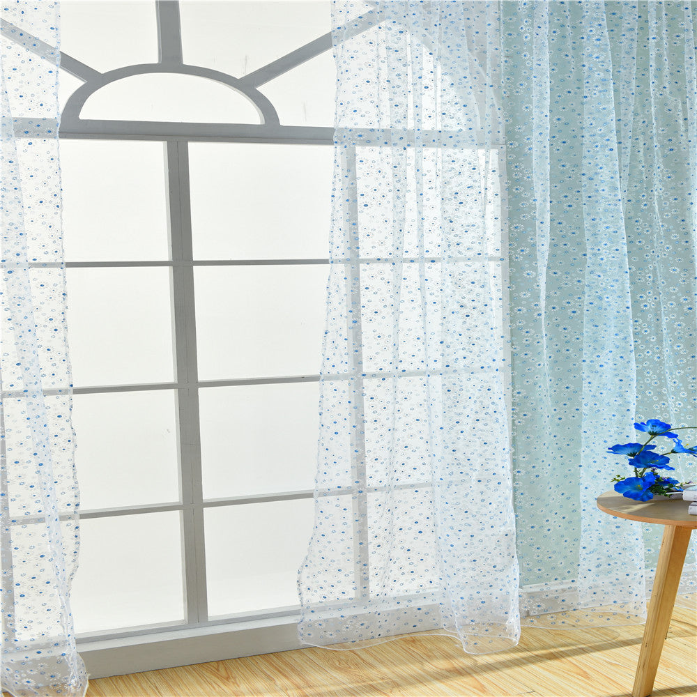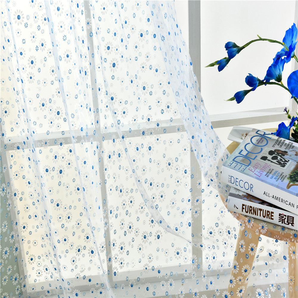 Rod Pocket Daisy Print Sheer Window Curtain Gauze Curtain 100x200cm Blue