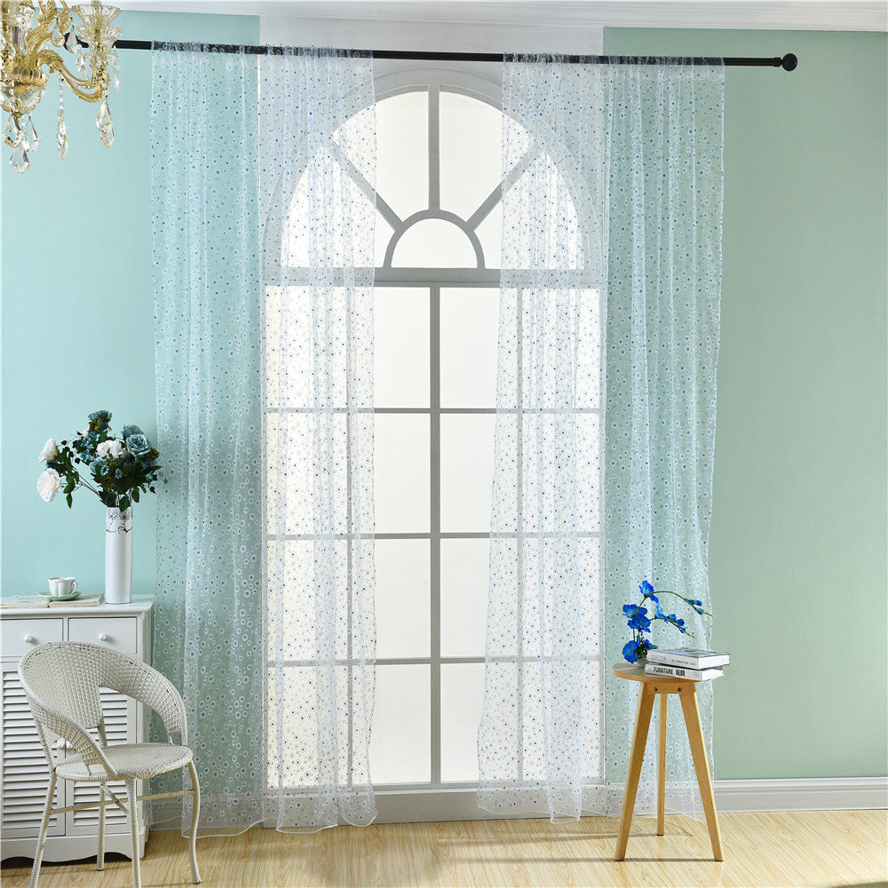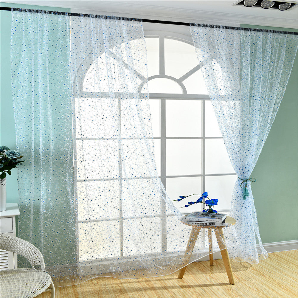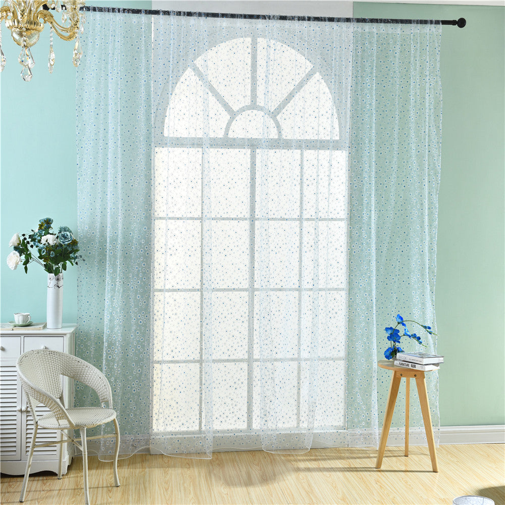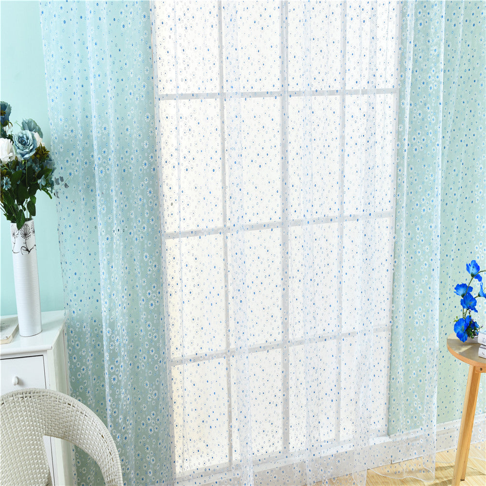 Rod Pocket Daisy Print Sheer Window Curtain Gauze Curtain 100x200cm Blue