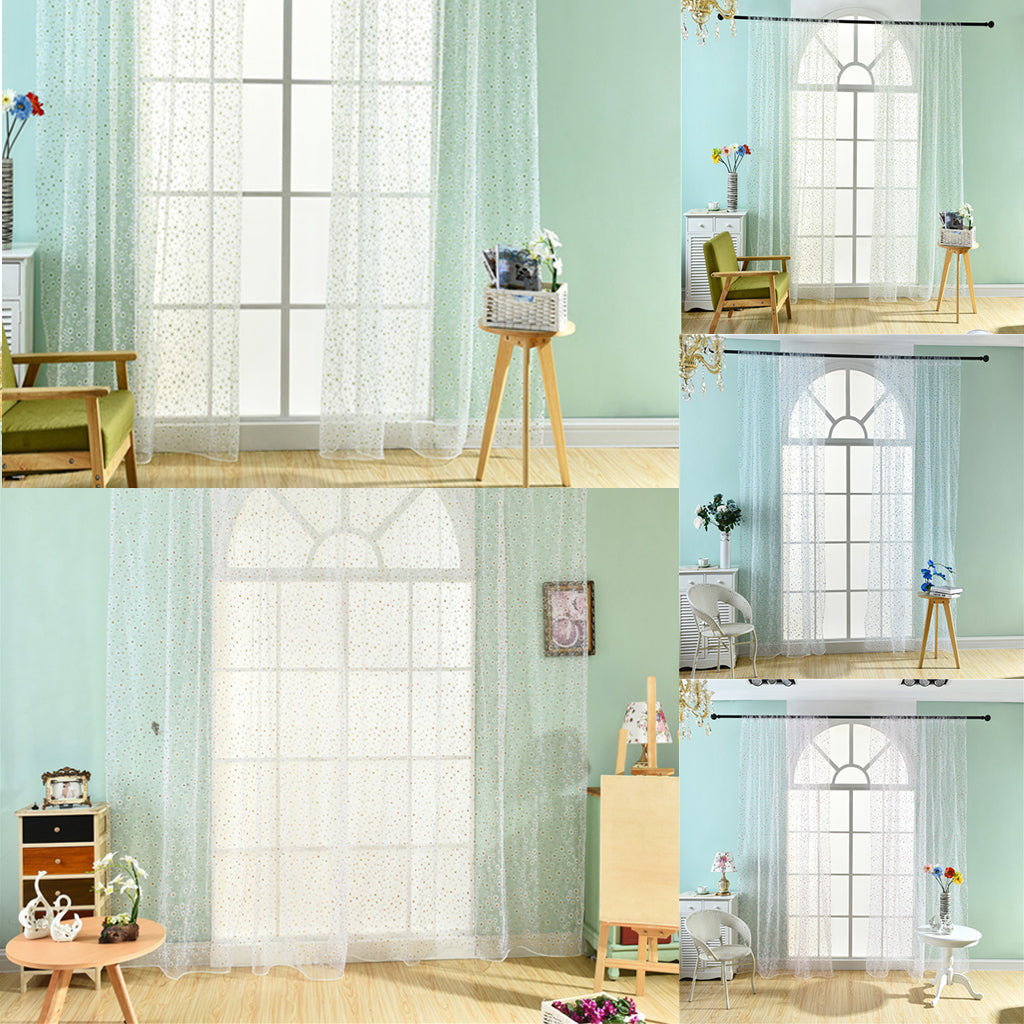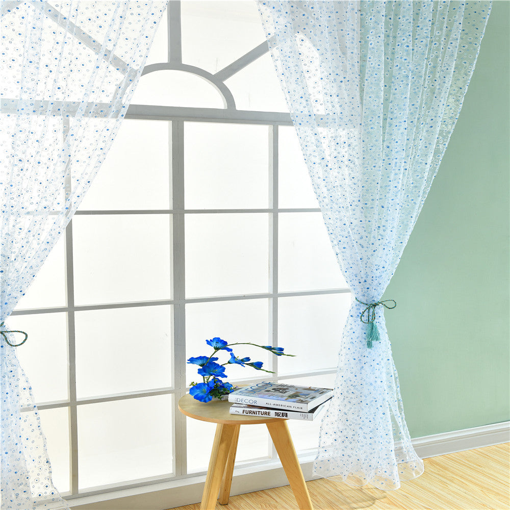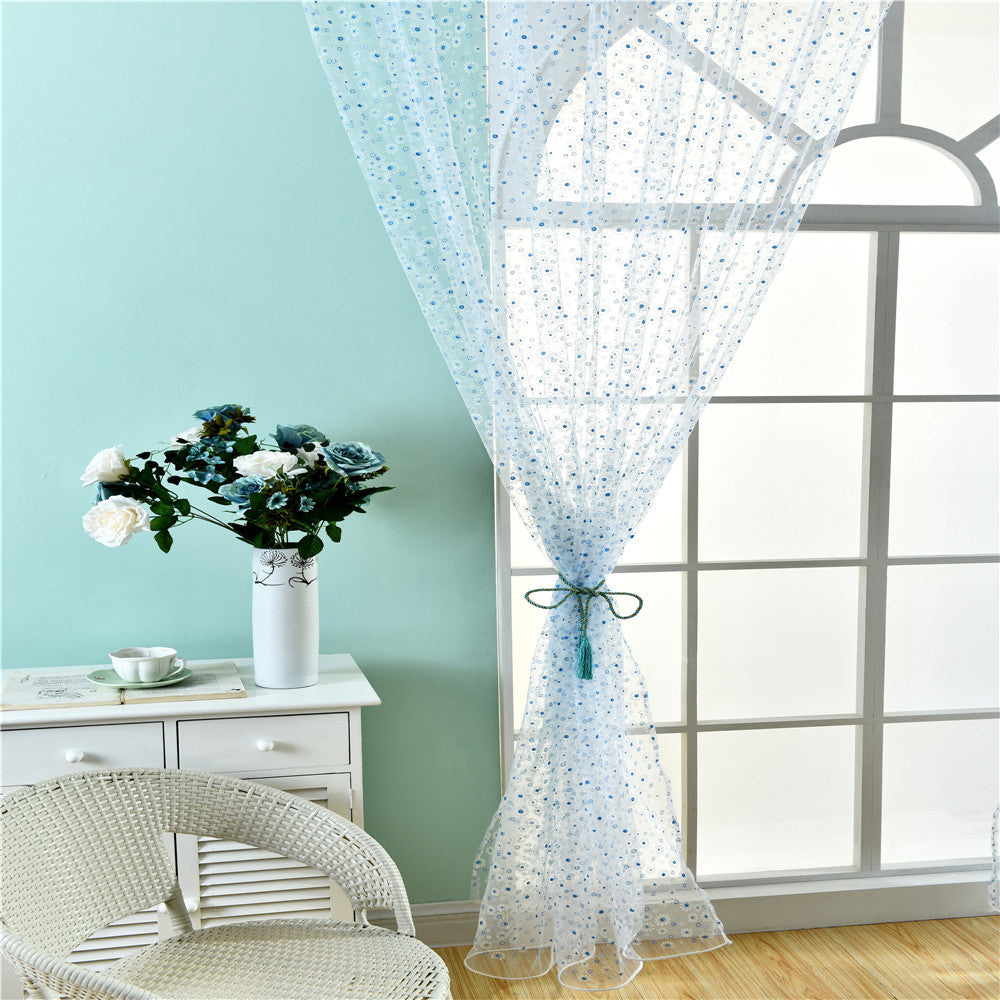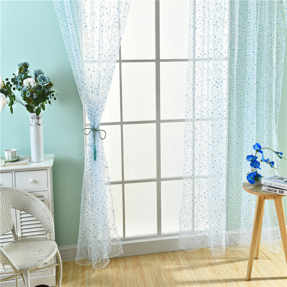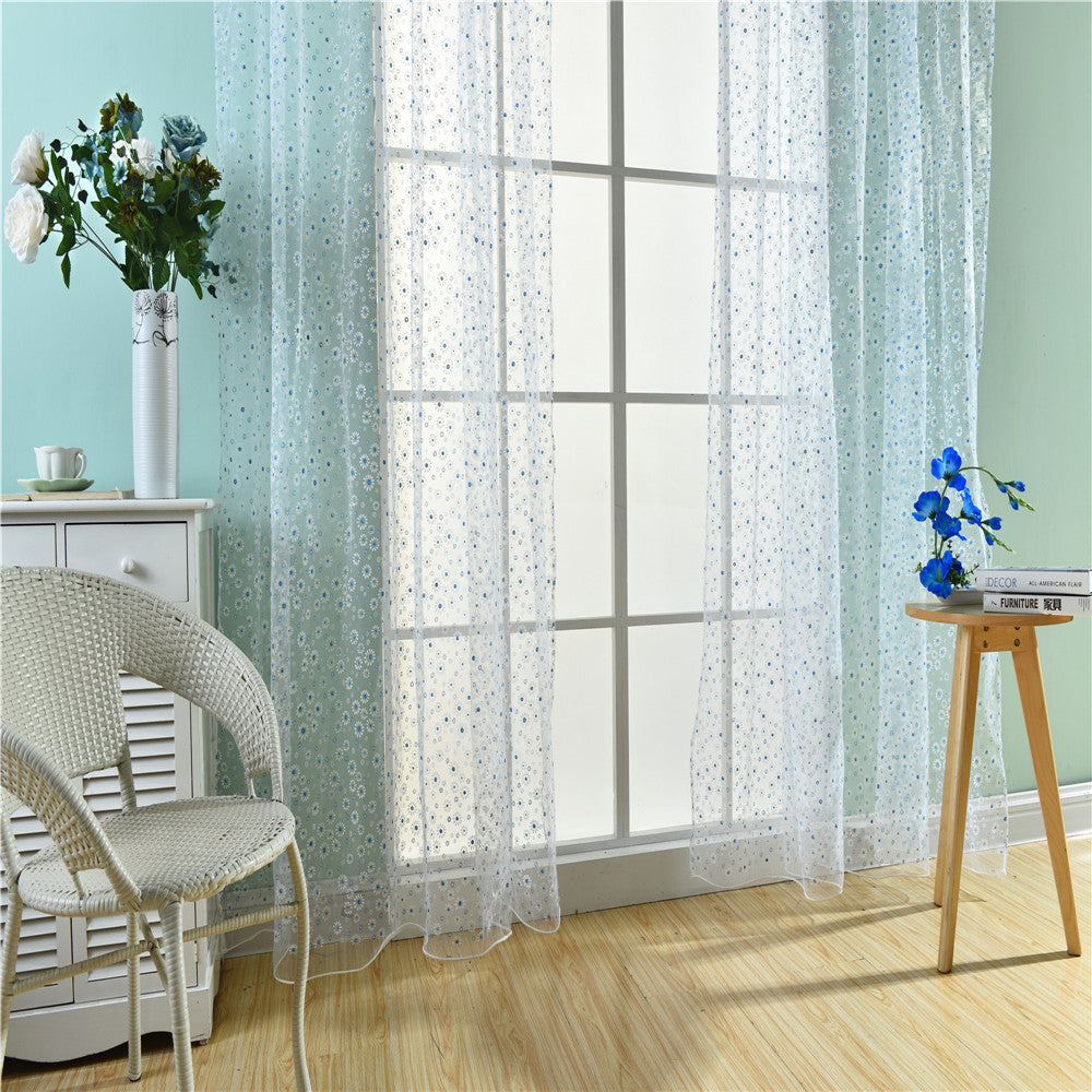 Rod Pocket Daisy Print Sheer Window Curtain Gauze Curtain 100x200cm Blue