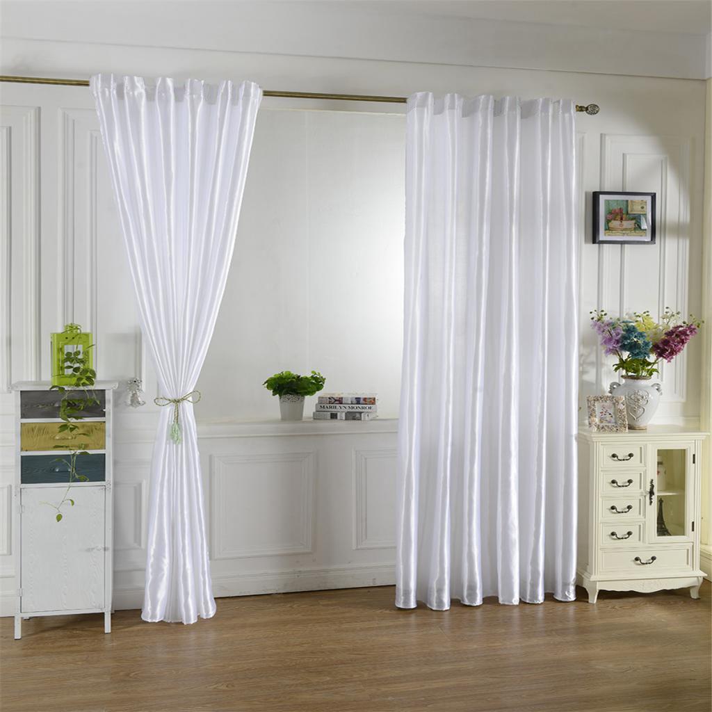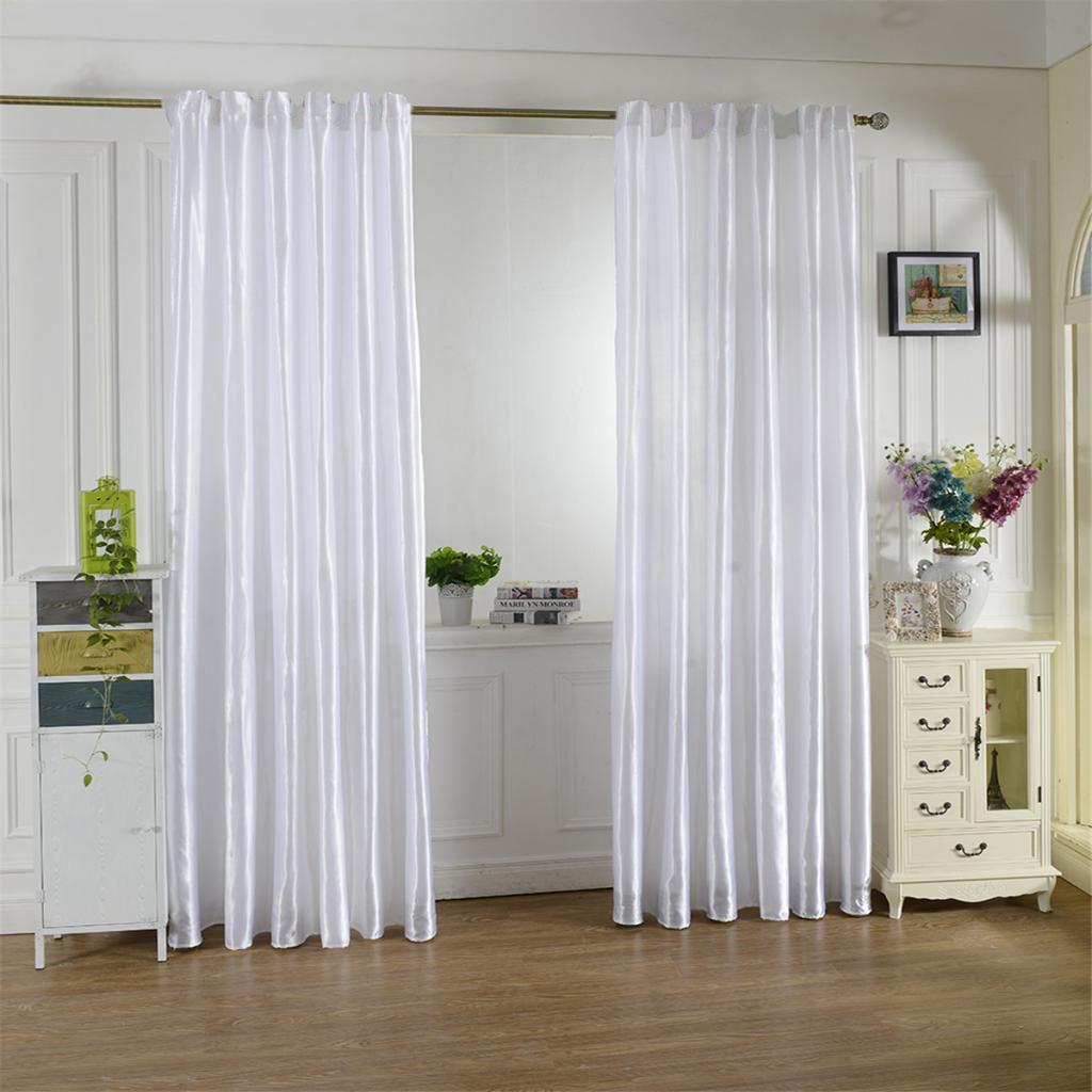 Rod Pocket Satin Window Curtains Blackout Shade Curtains 200x250cm White