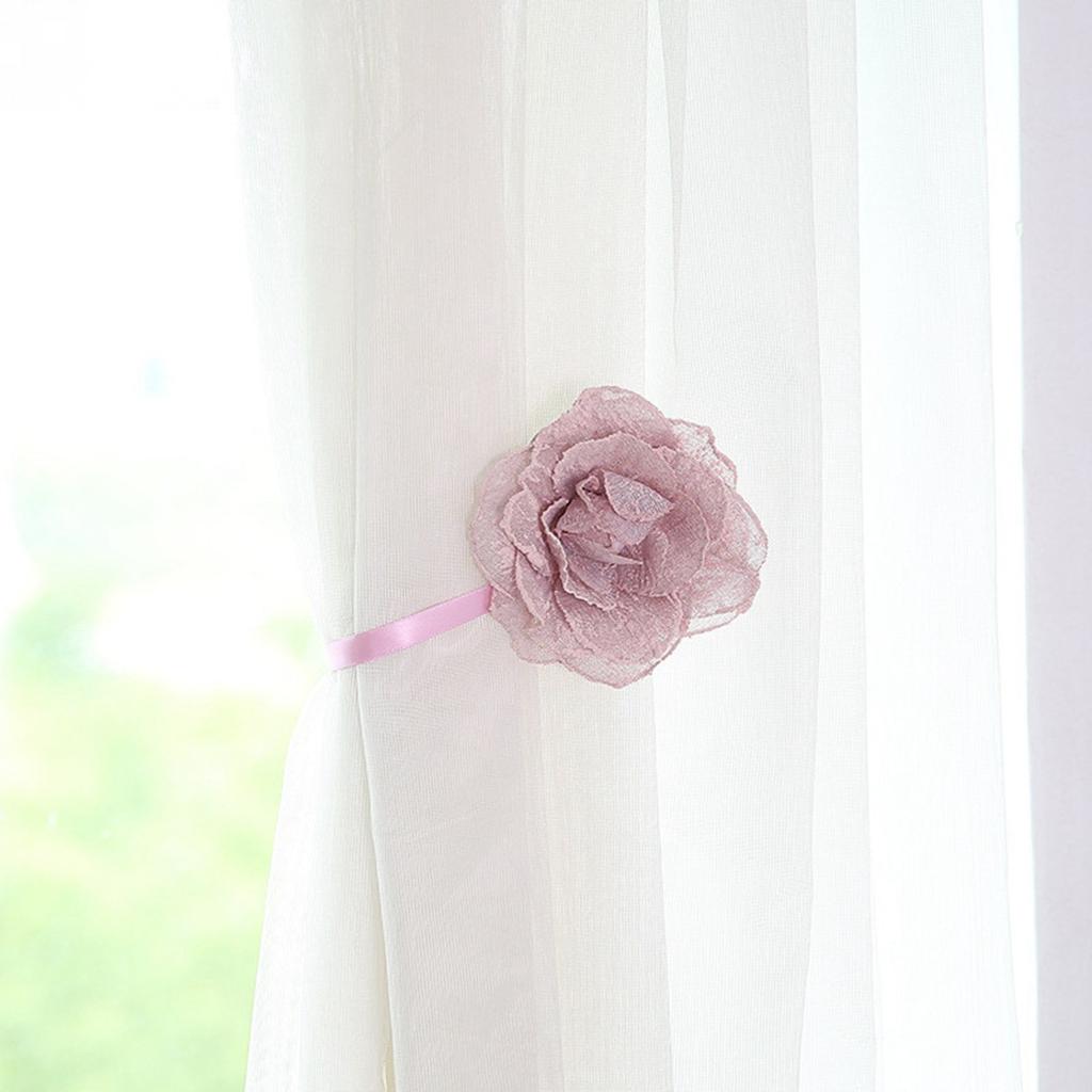 Seersucker Flower Magnetic Decorative Curtain Drapes Tiebacks Pink