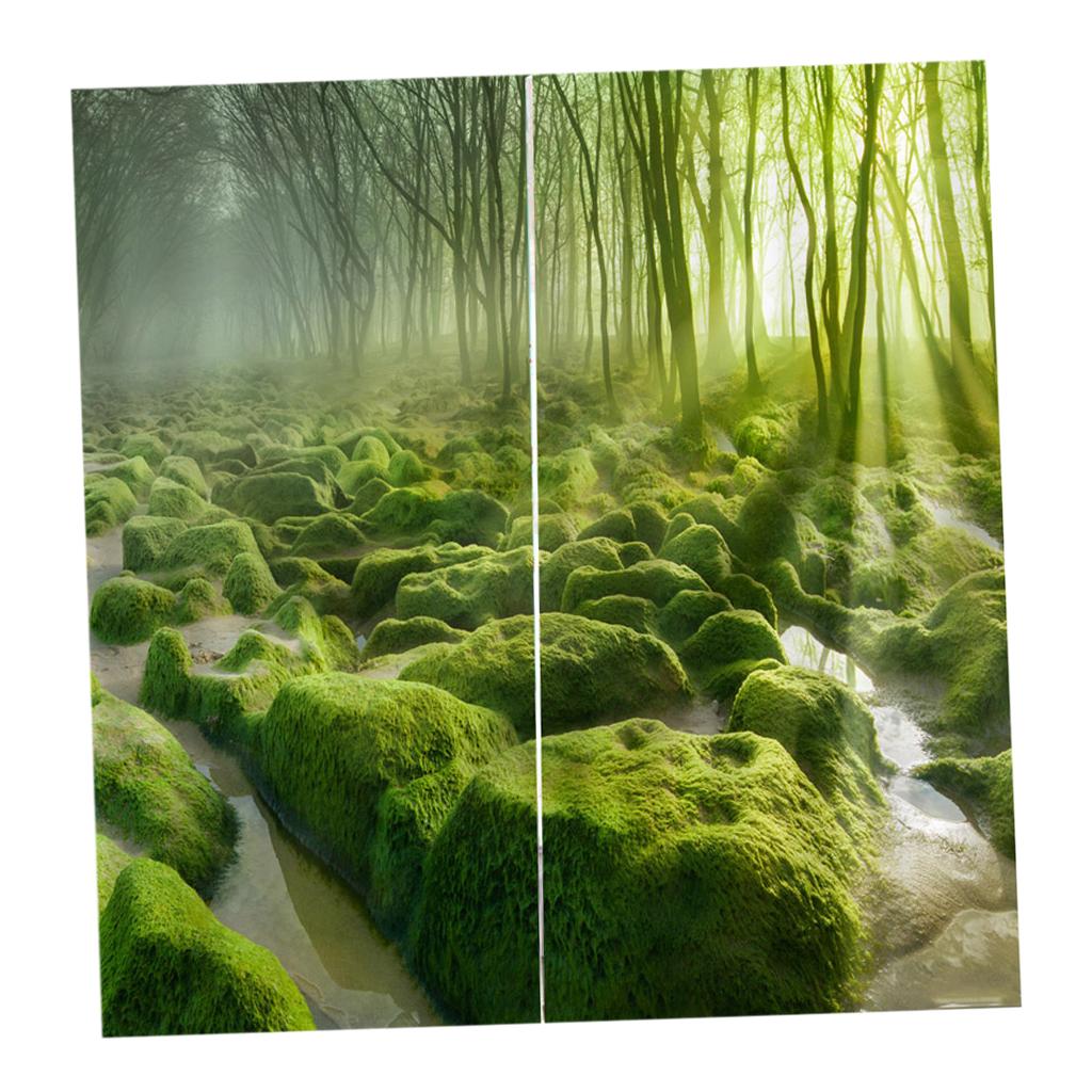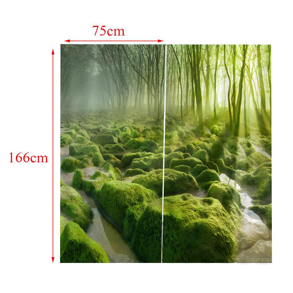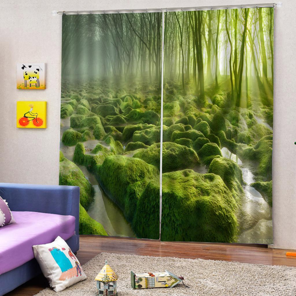 Set 2 Panels Digital Photo Printing Blackout 3D Curtains Green Forest