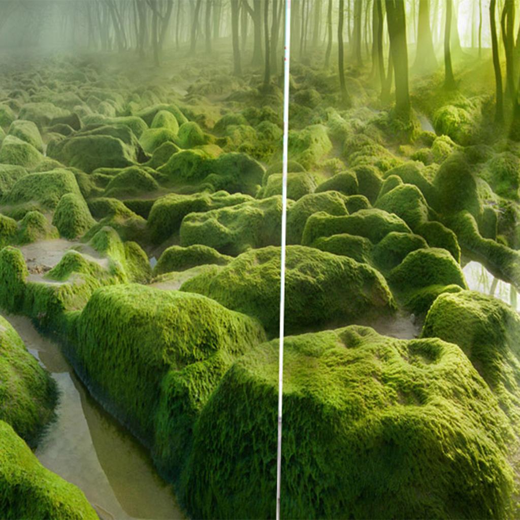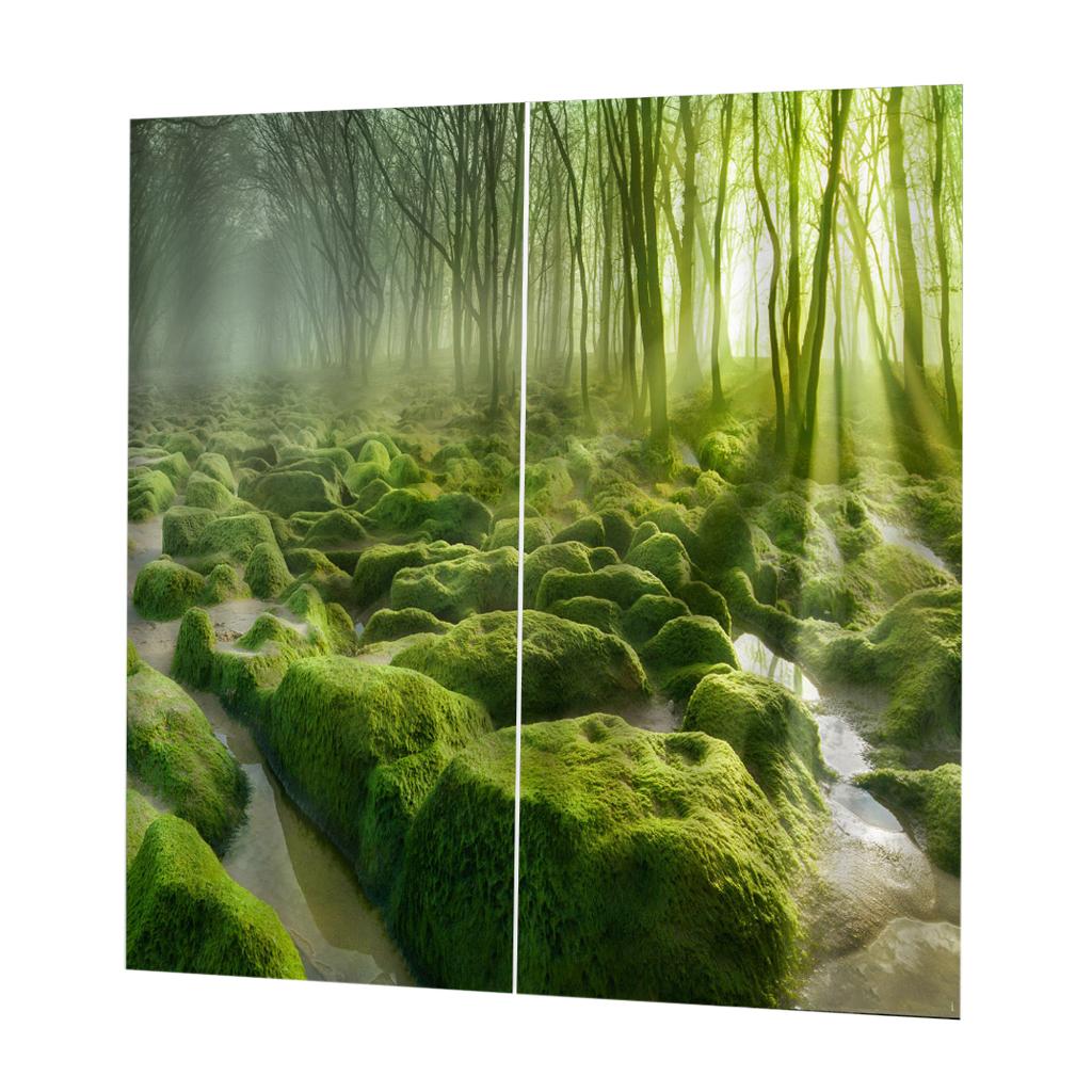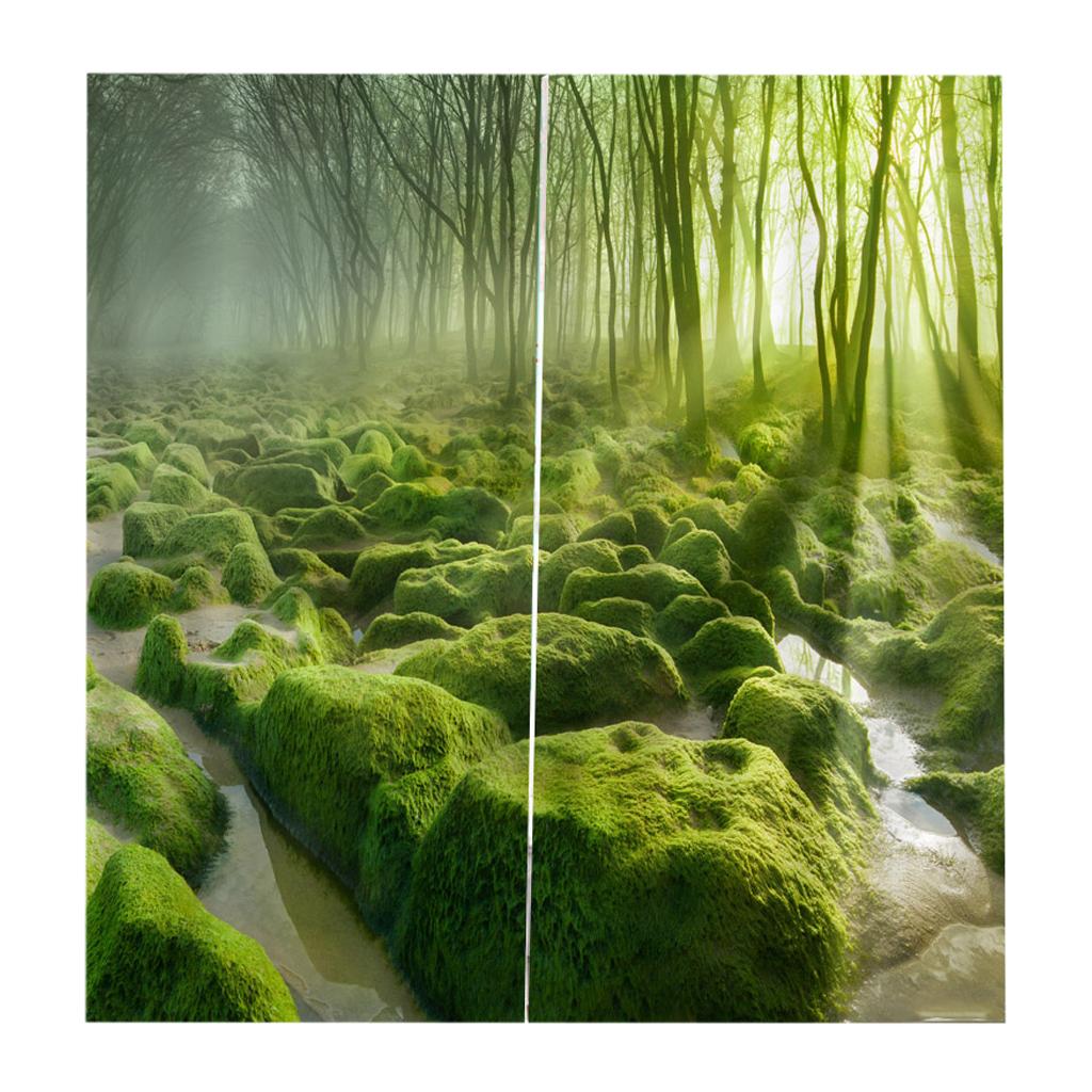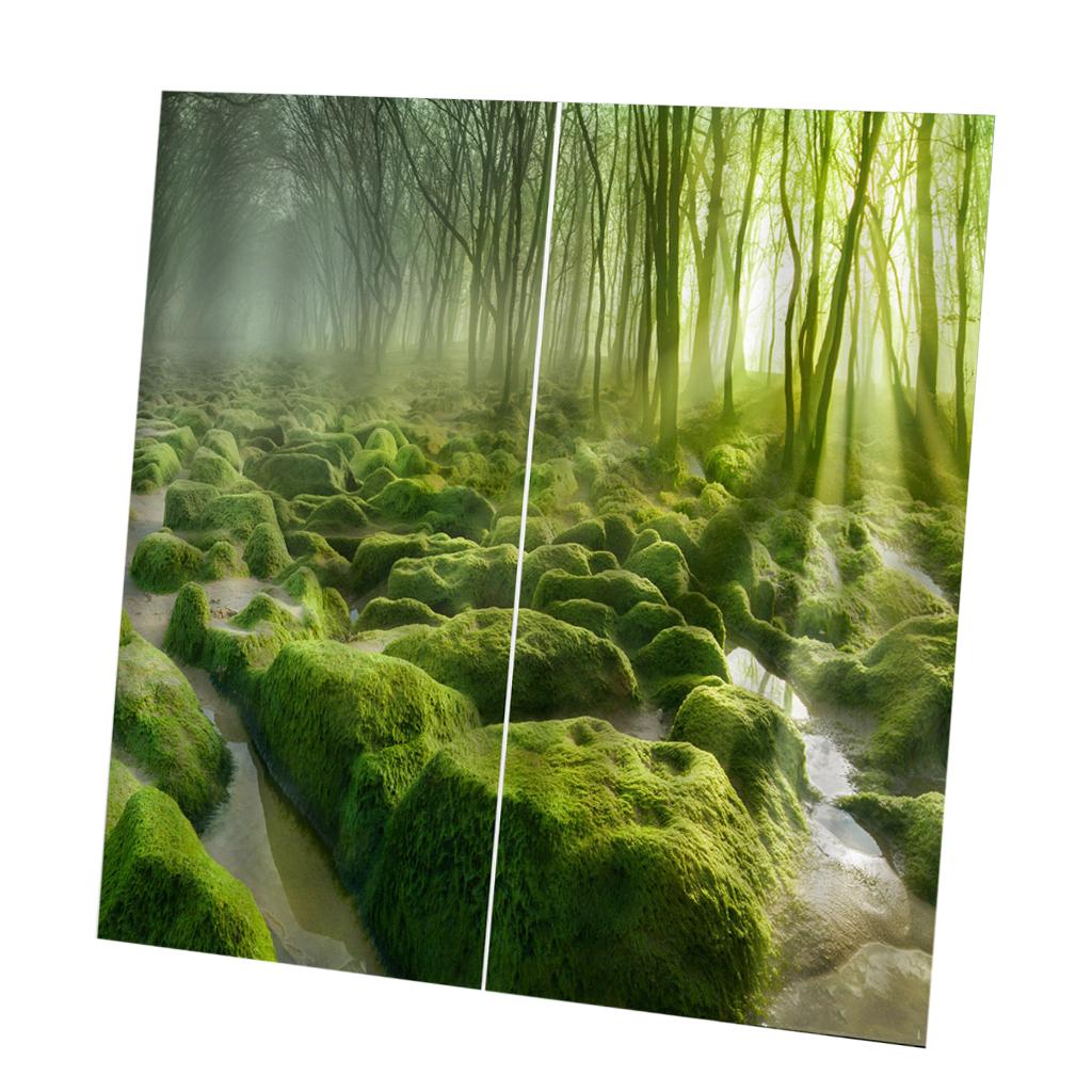 Set 2 Panels Digital Photo Printing Blackout 3D Curtains Green Forest