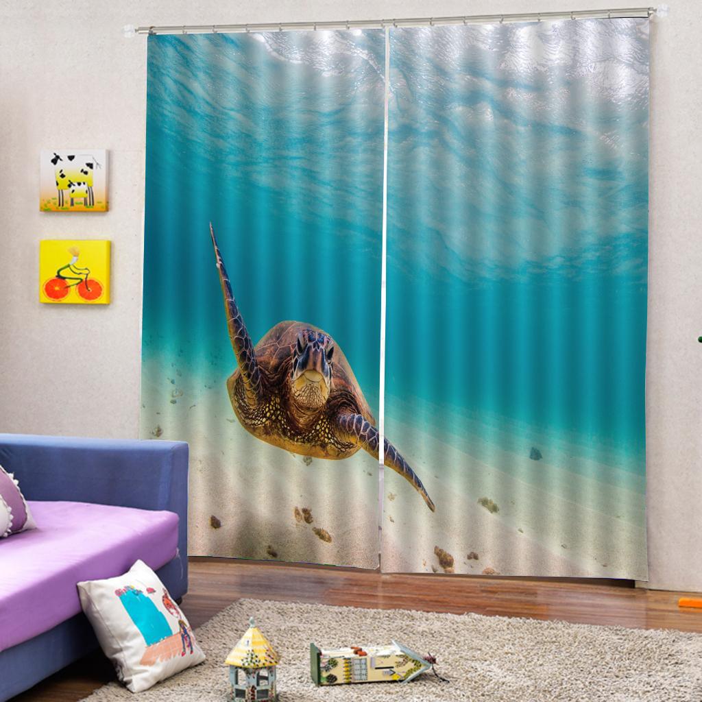 Set 2 Panels Digital Photo Printing Blackout 3D Curtains Sea turtle