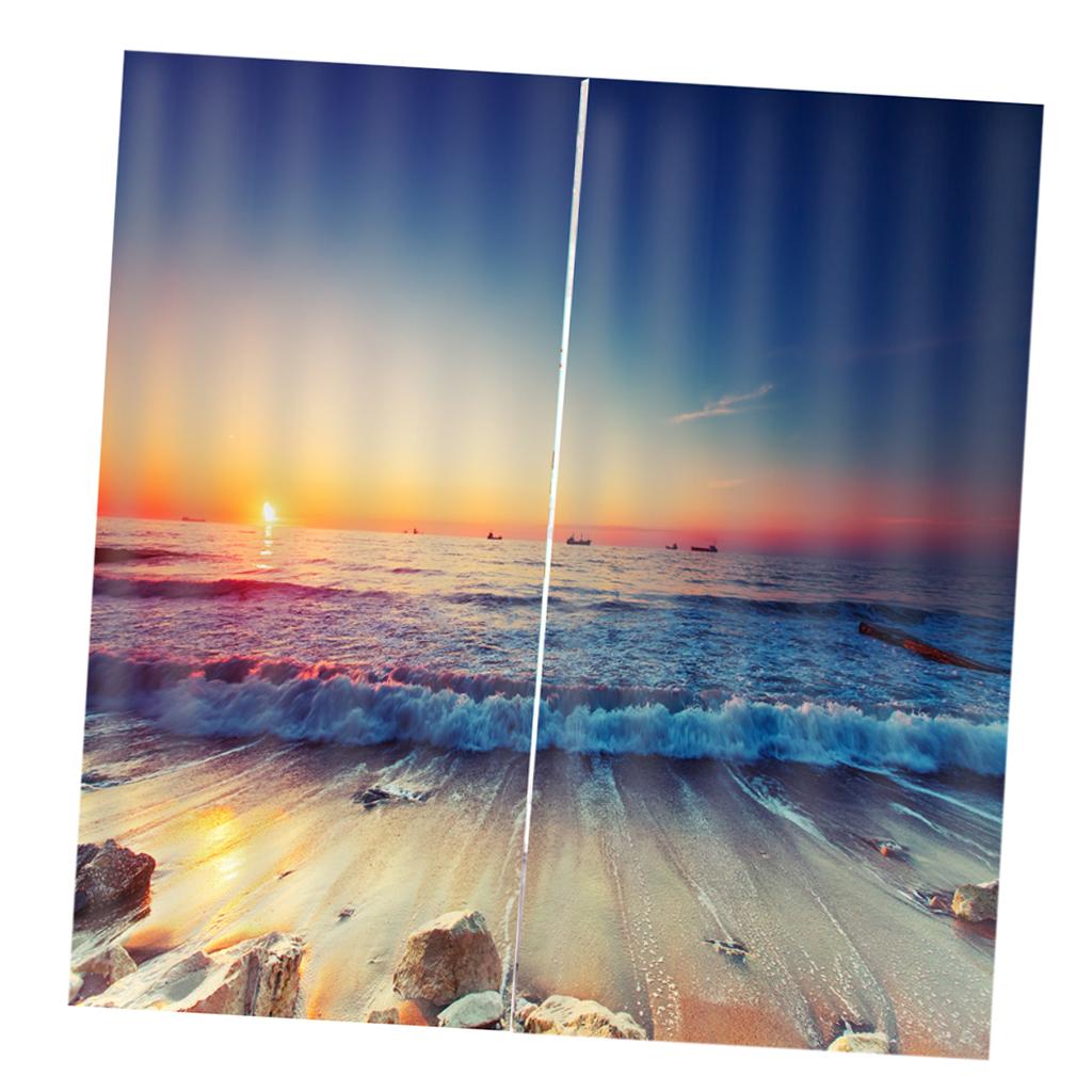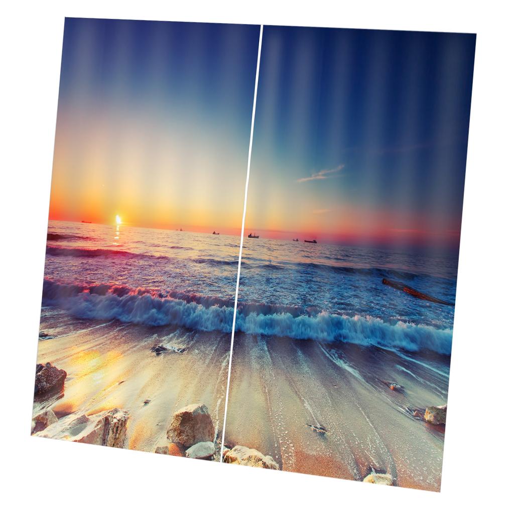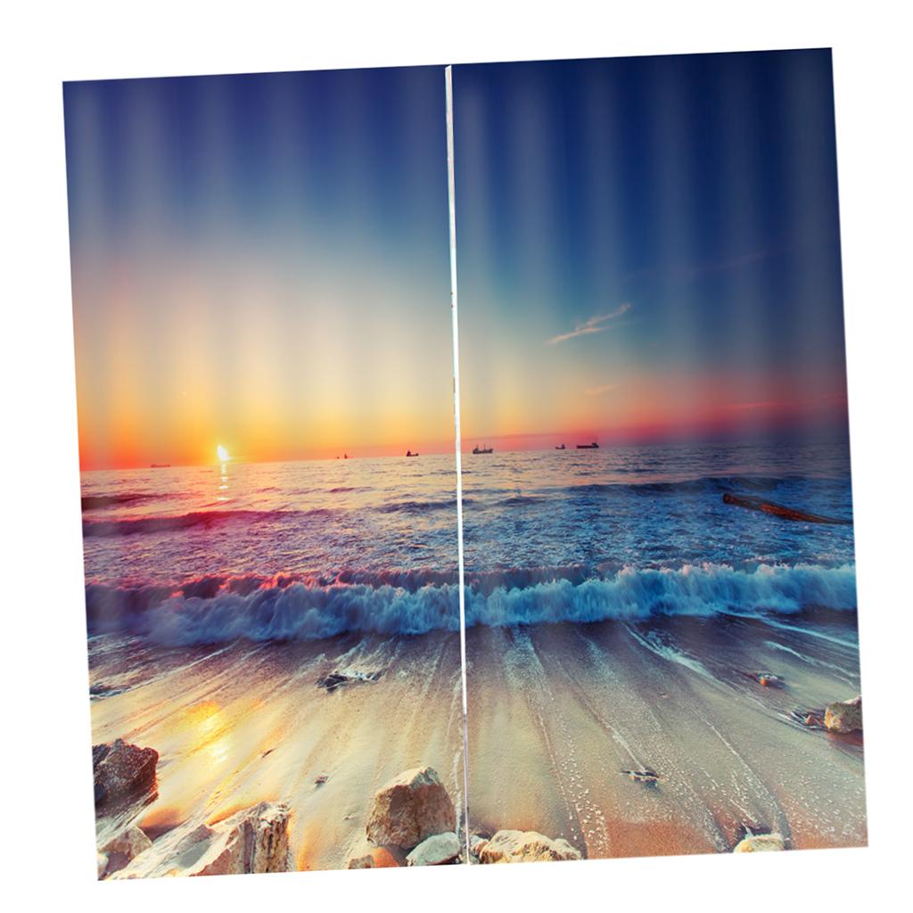 Set 2 Panels Digital Photo Printing Blackout 3D Curtains Sunset Beach