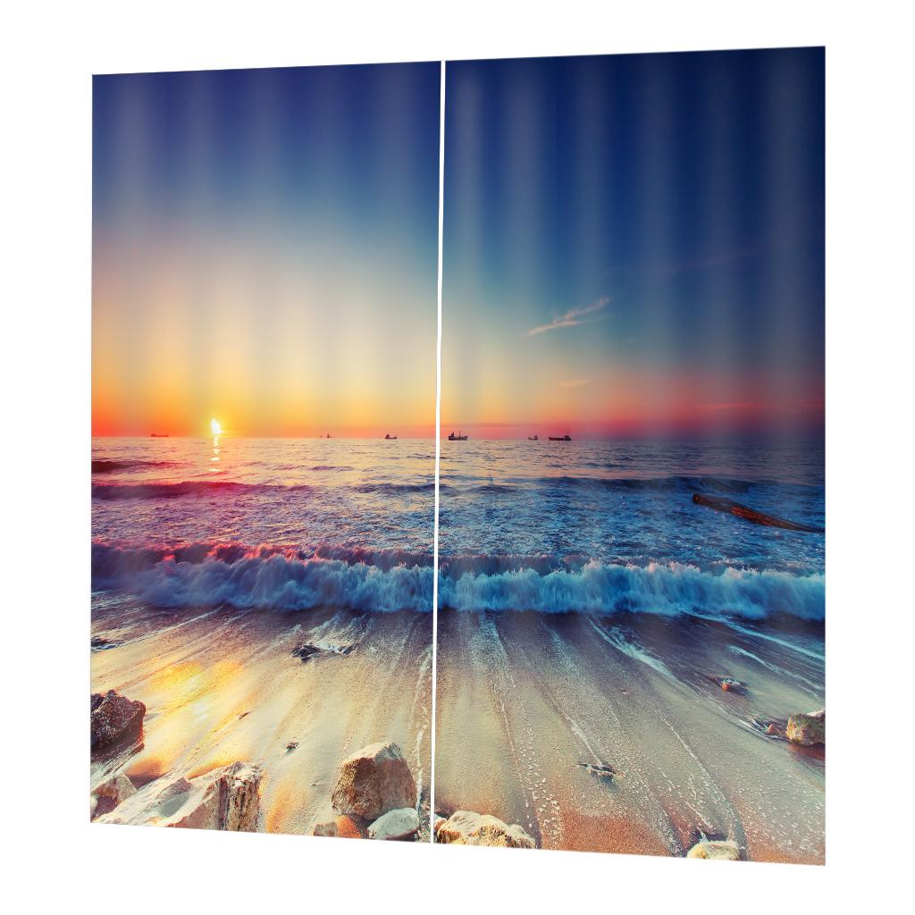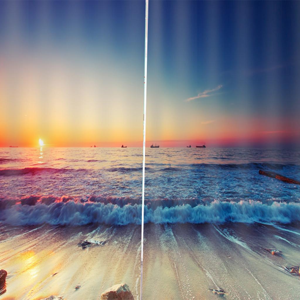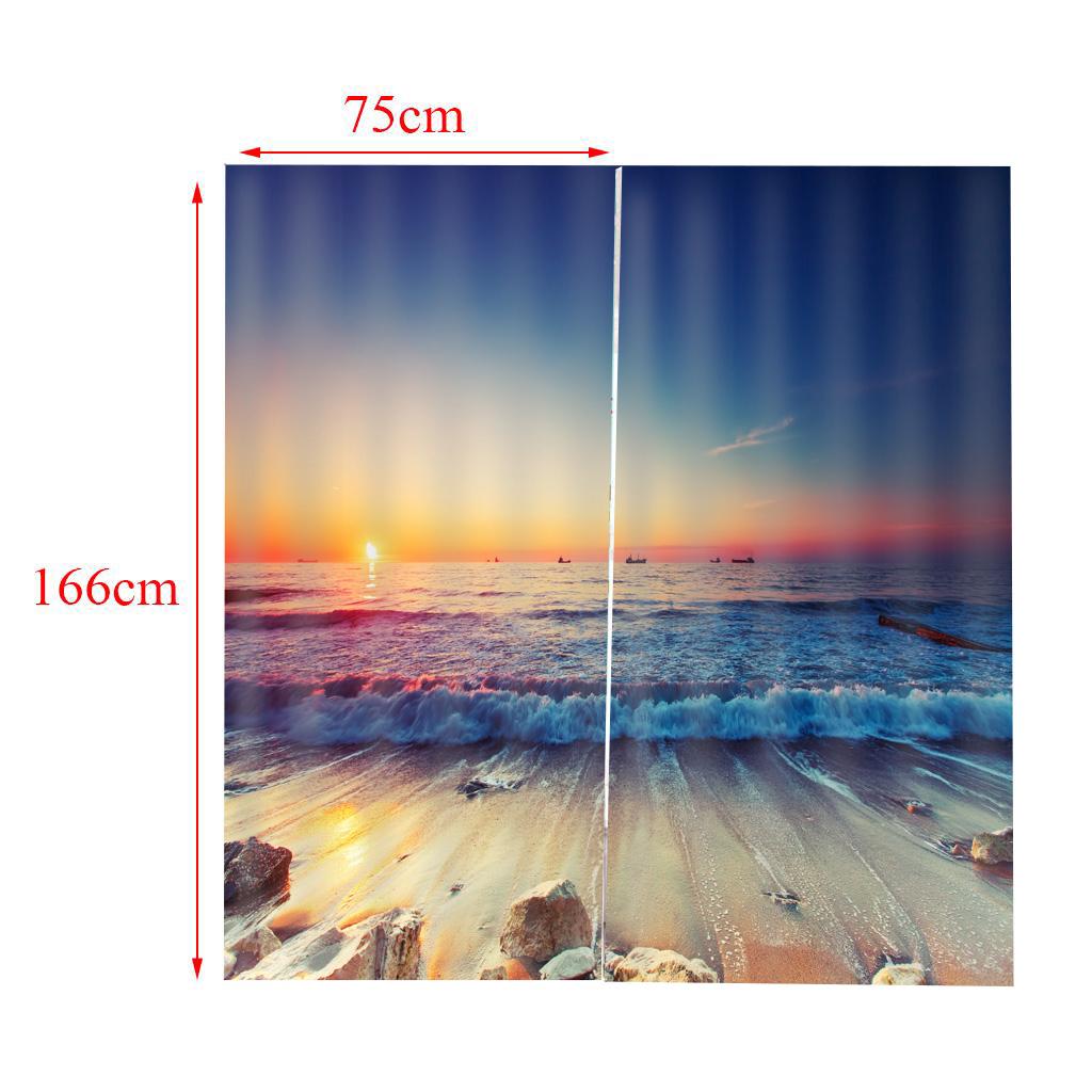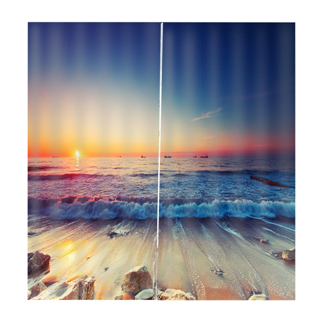 Set 2 Panels Digital Photo Printing Blackout 3D Curtains Sunset Beach