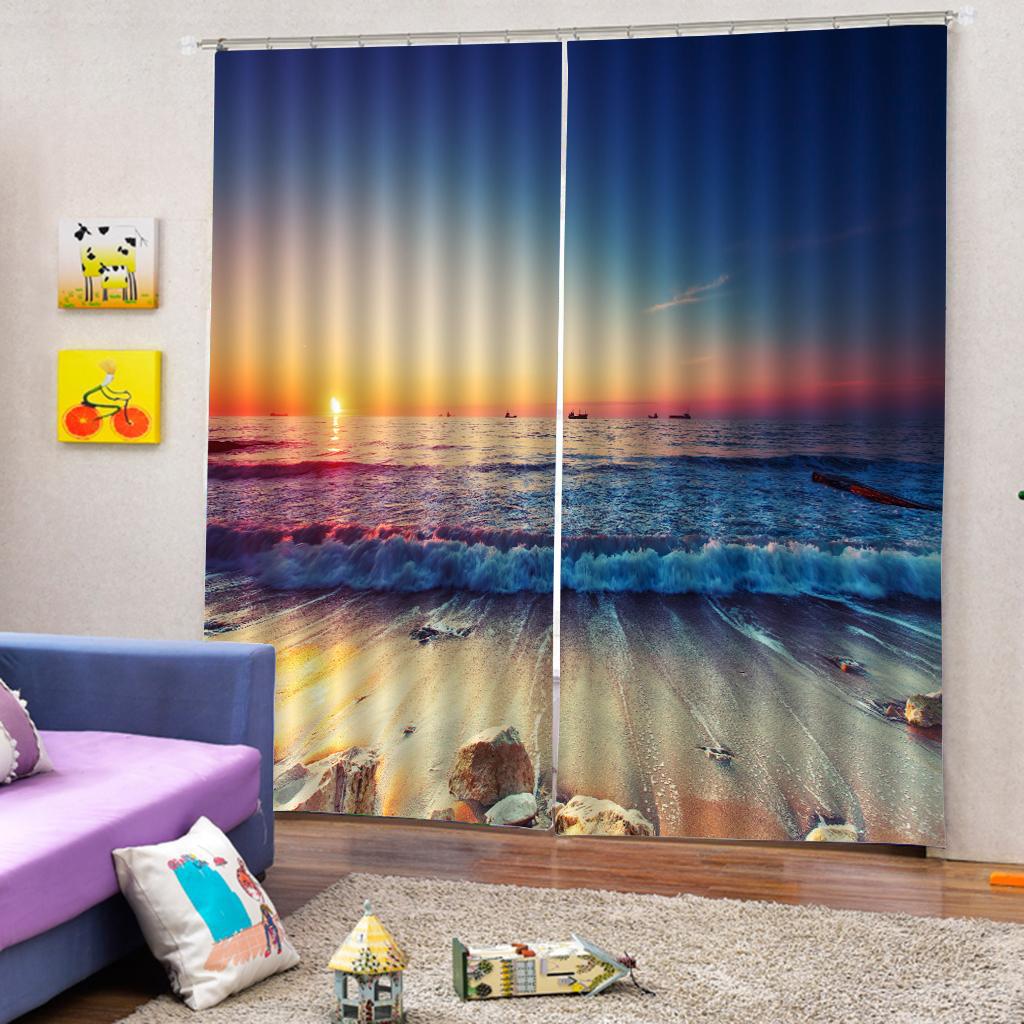 Sea scenery printed window curtain - blackout curtains for home elegant comfort.