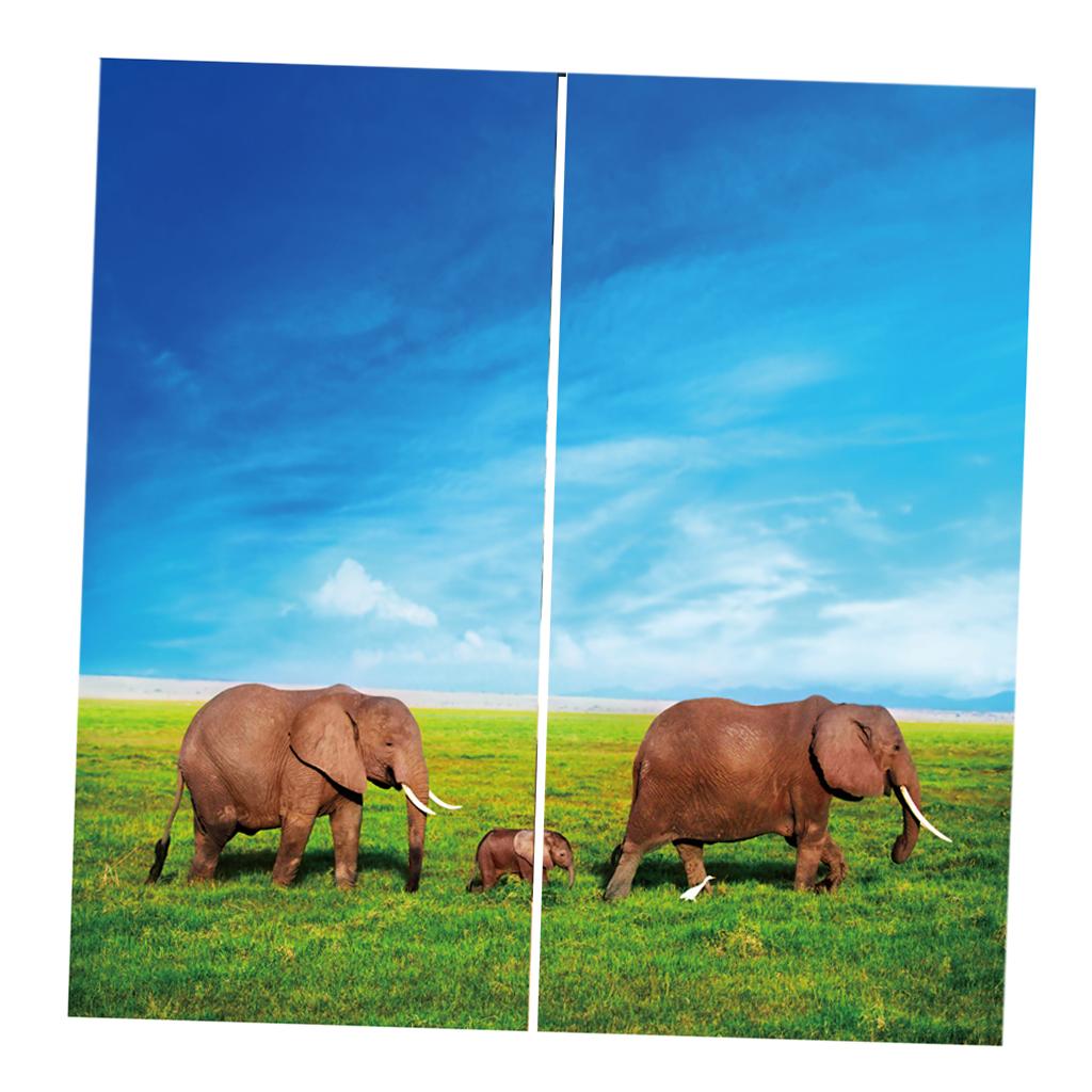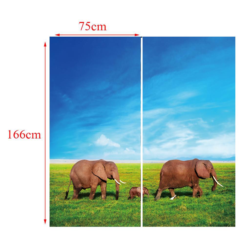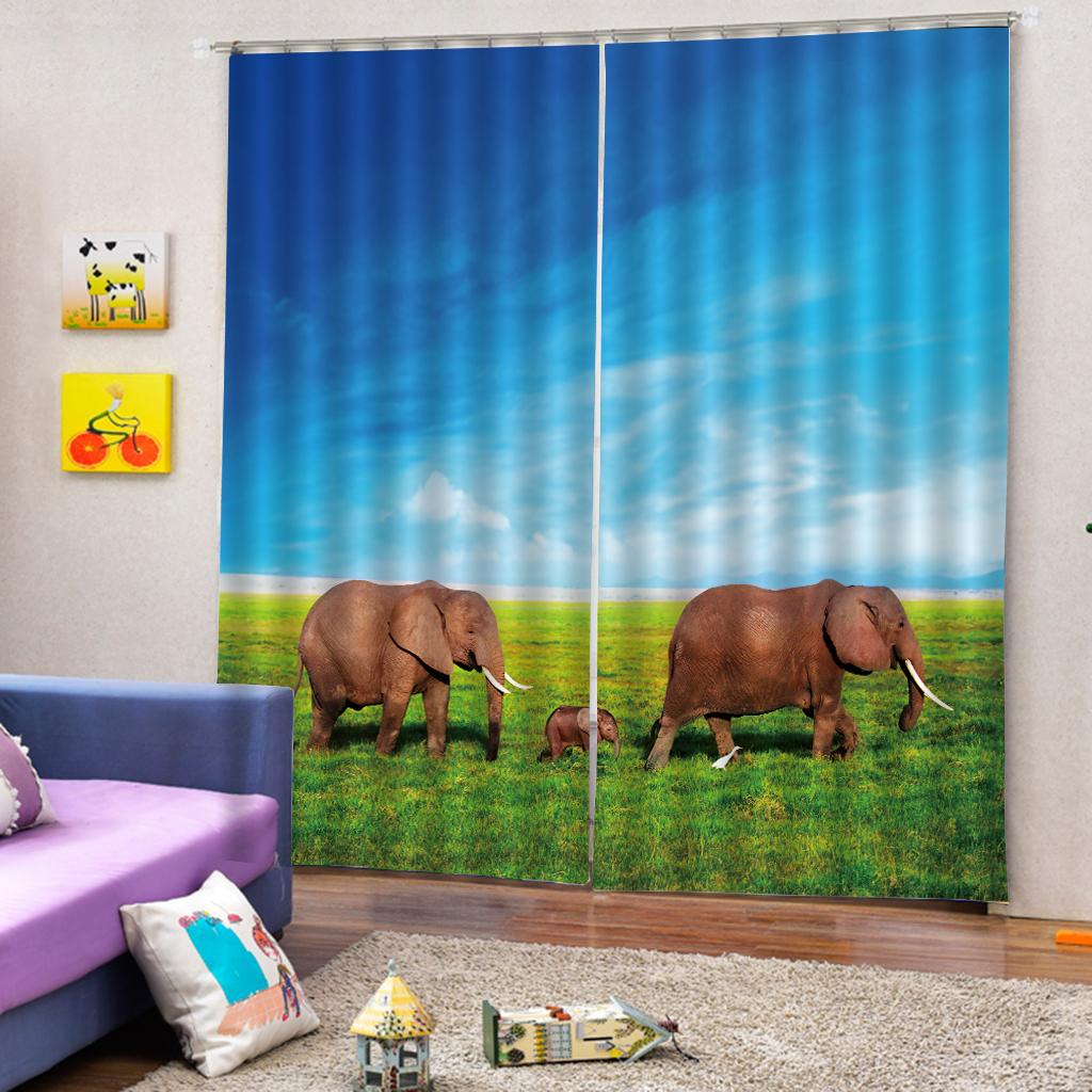 Set of 2 Panels Digital Photo Printing 3D Curtains Aminals Three Elephant