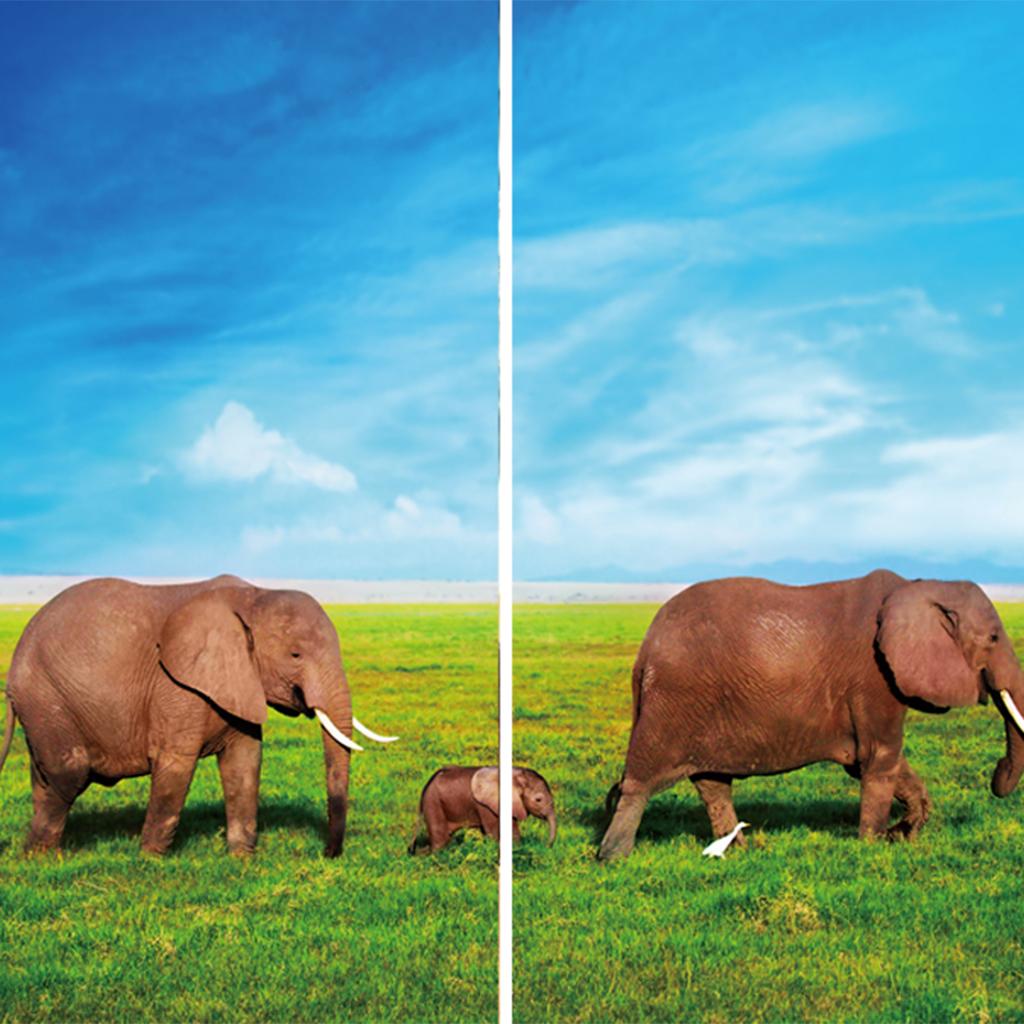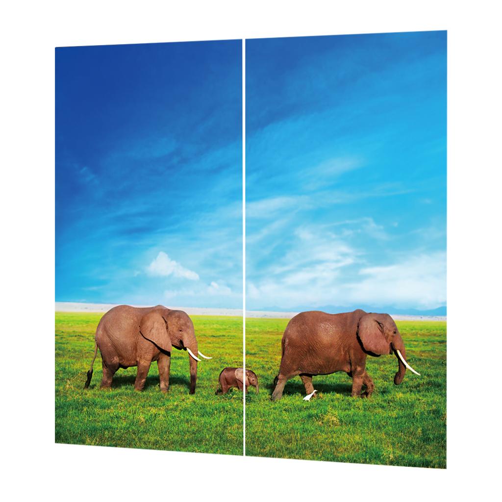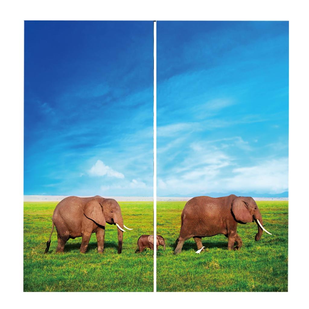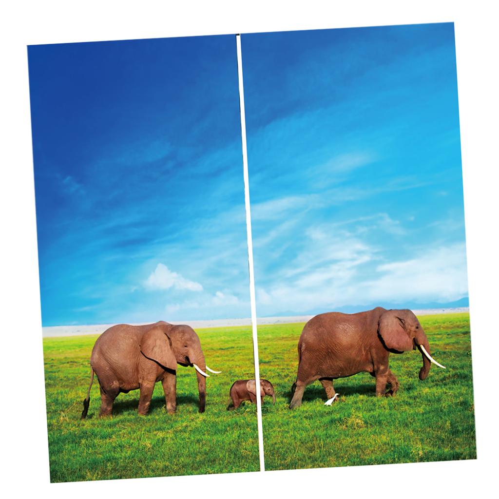 Set of 2 Panels Digital Photo Printing 3D Curtains Aminals Three Elephant