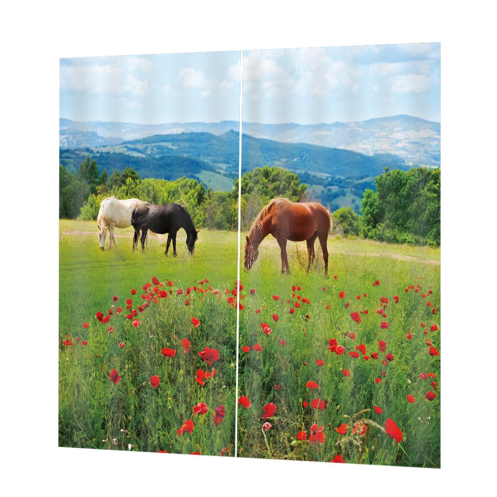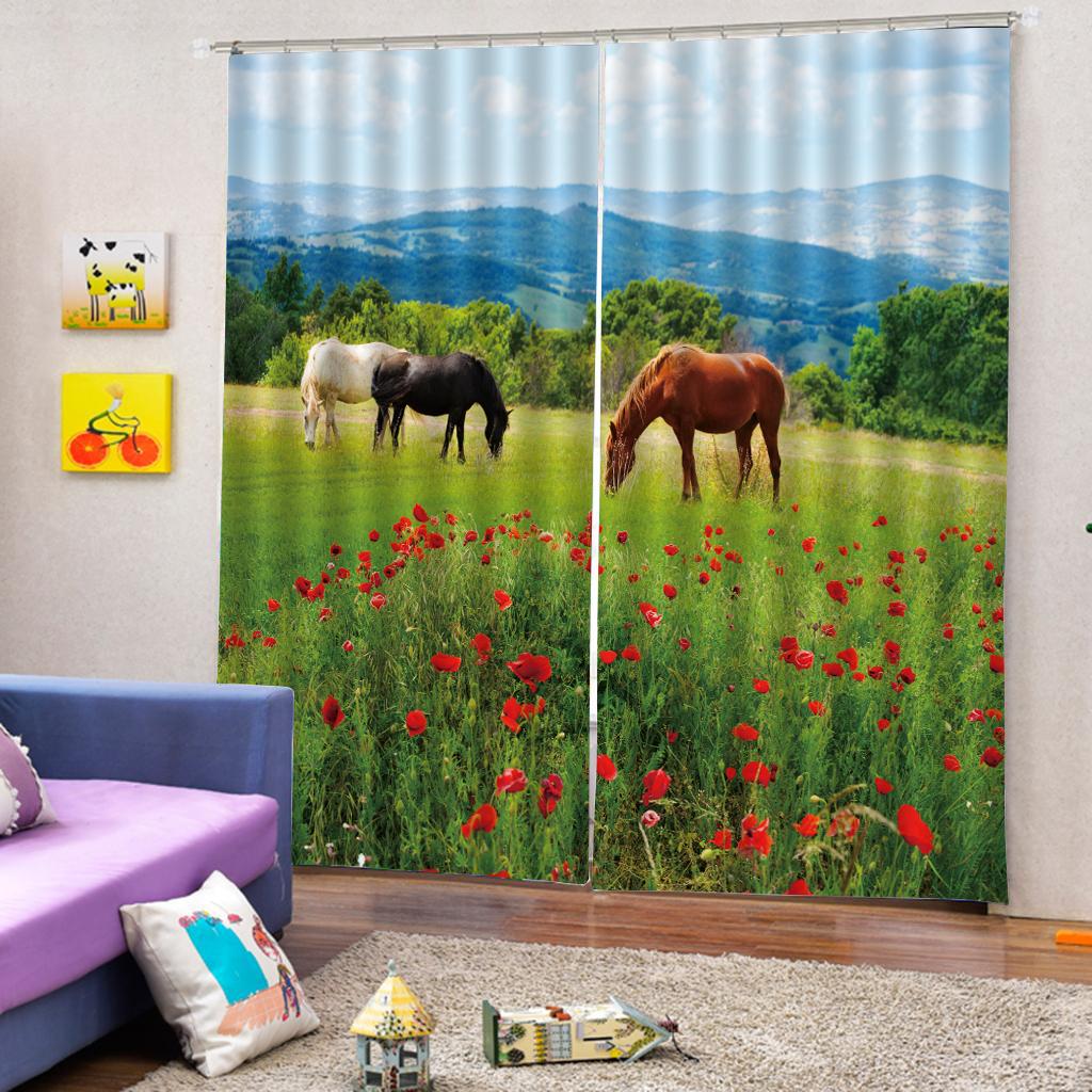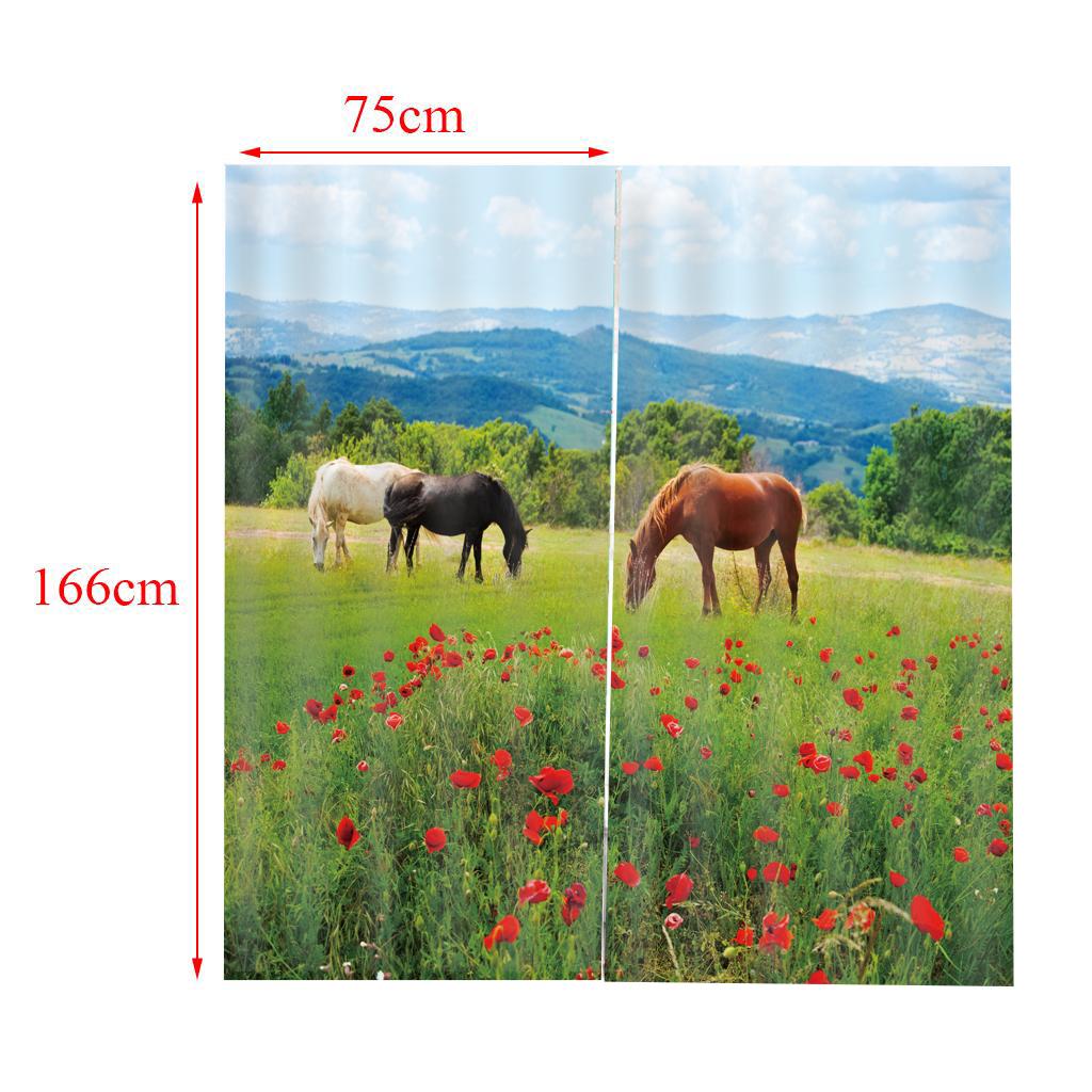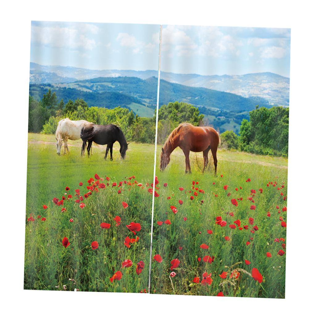 Set of 2 Panels Digital Photo Printing 3D Curtains Aminals Three Horses