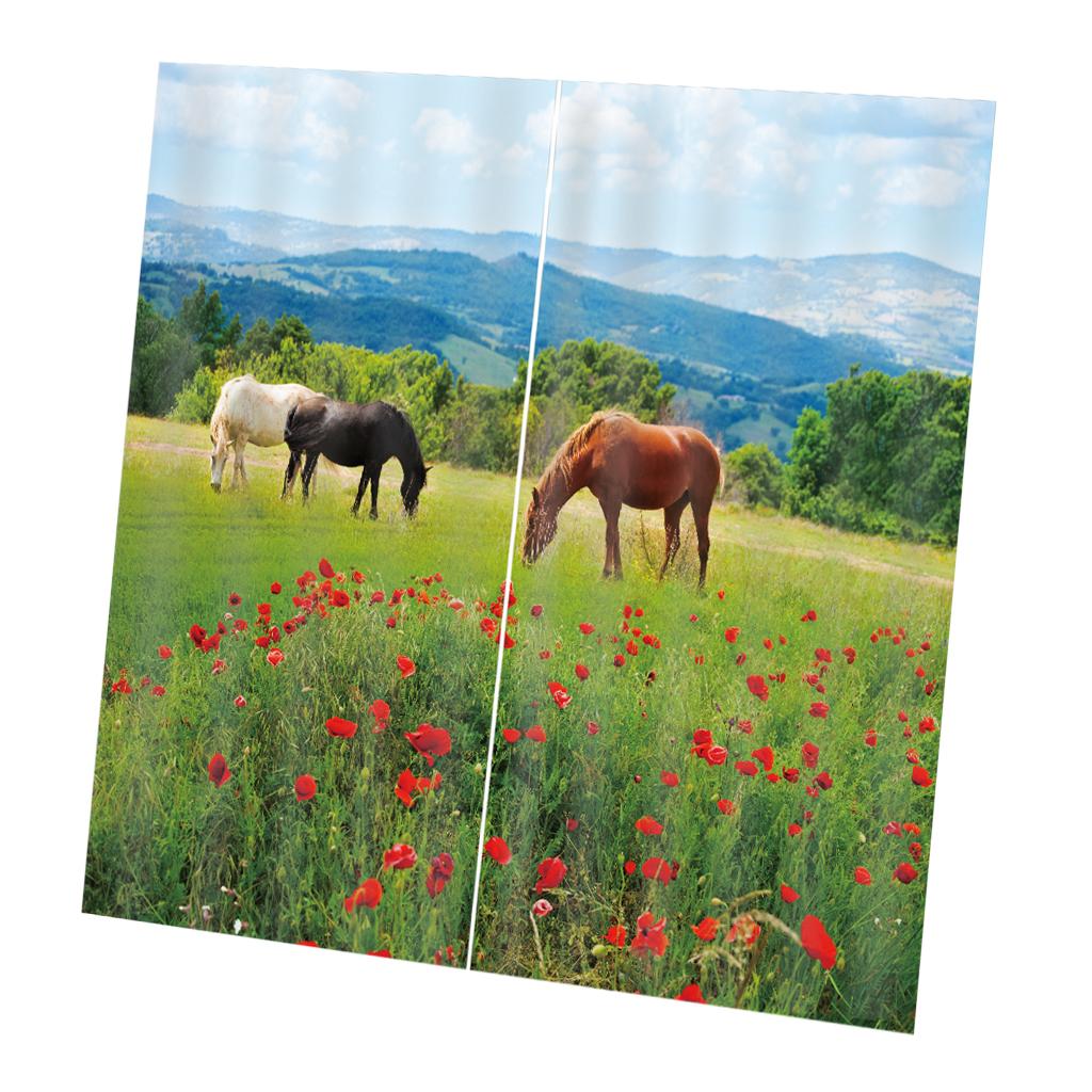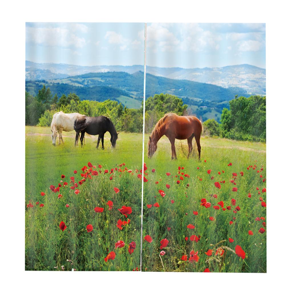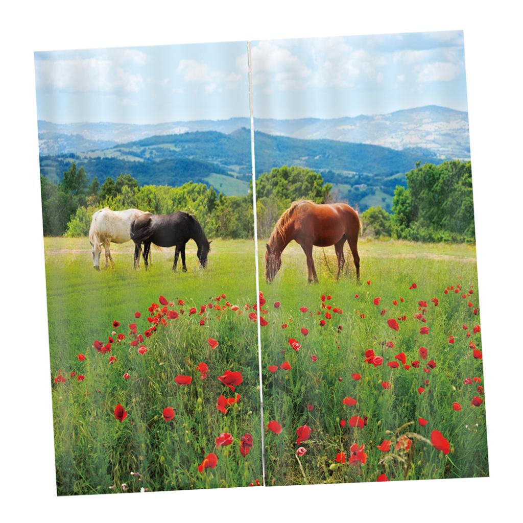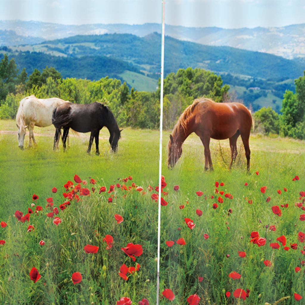 Set of 2 Panels Digital Photo Printing 3D Curtains Aminals Three Horses