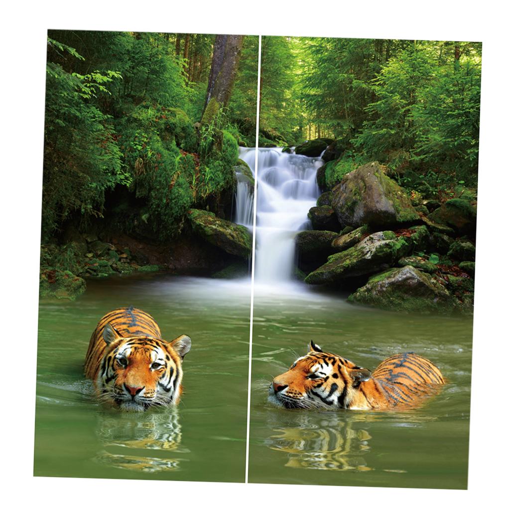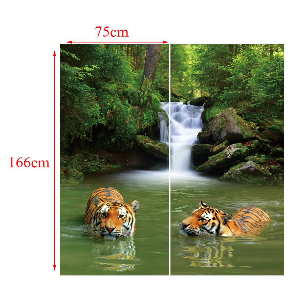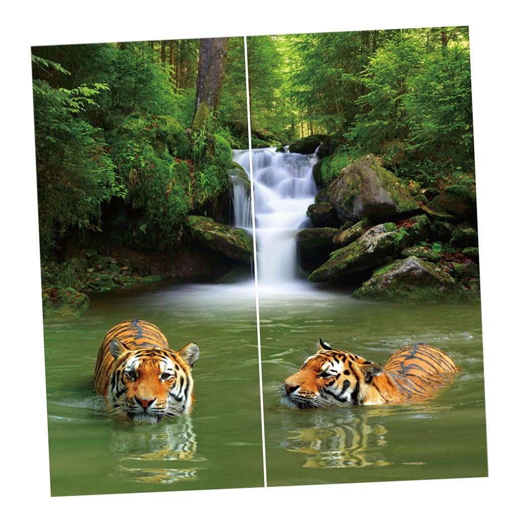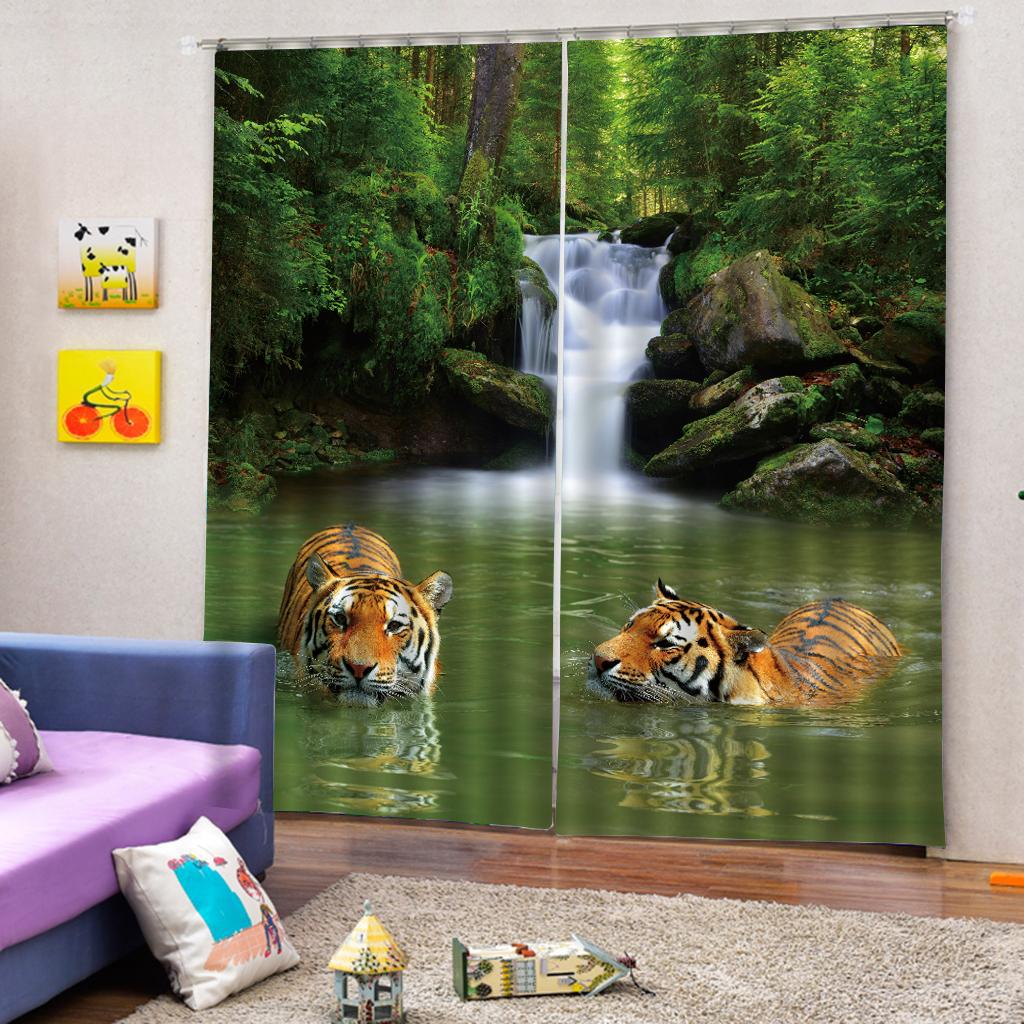 Set of 2 Panels Digital Photo Printing 3D Curtains Aminals Tigers