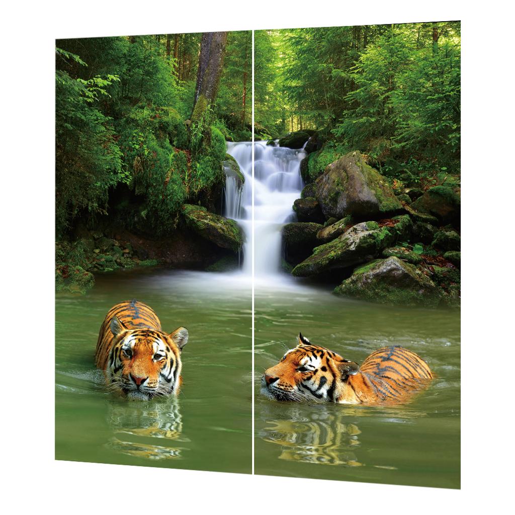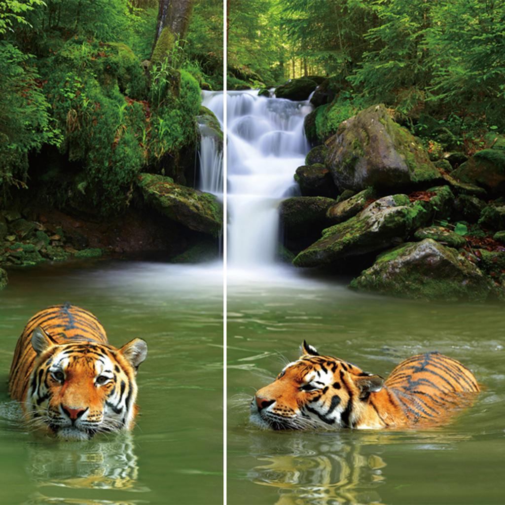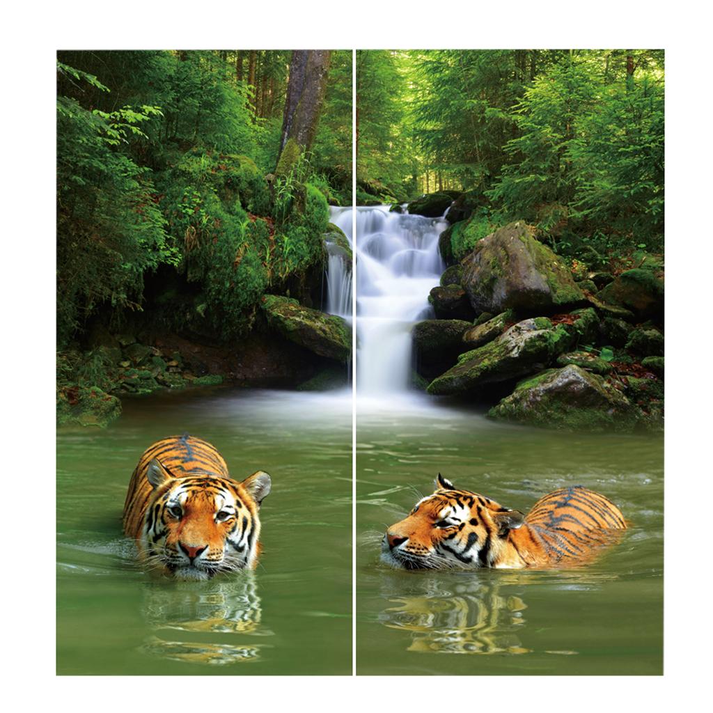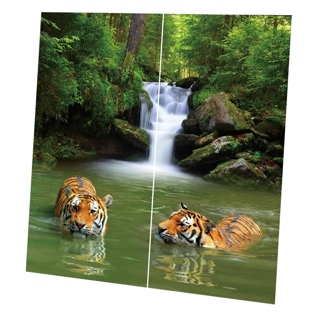 Set of 2 Panels Digital Photo Printing 3D Curtains Aminals Tigers