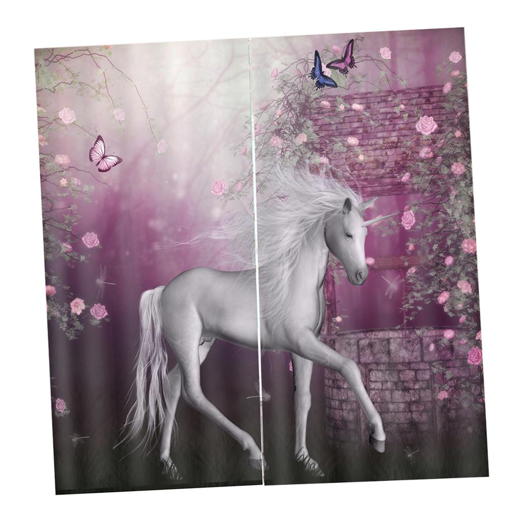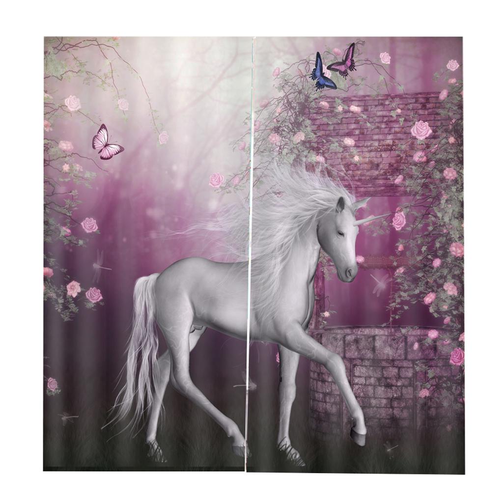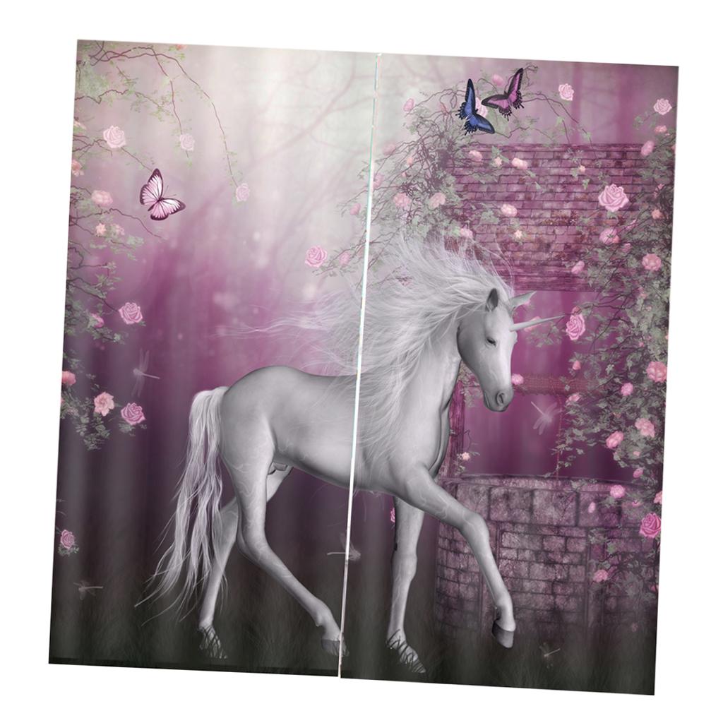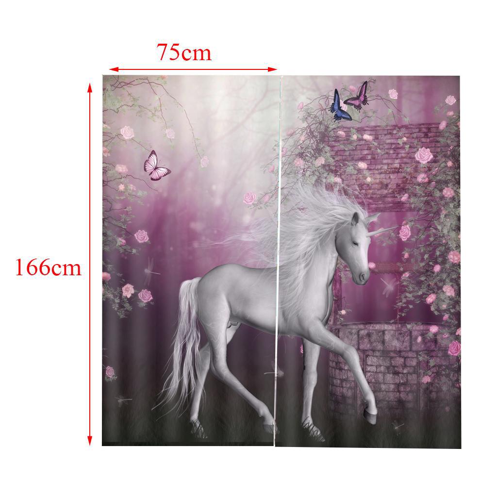 Set of 2 Panels Digital Photo Printing 3D Curtains Aminals Unicorn