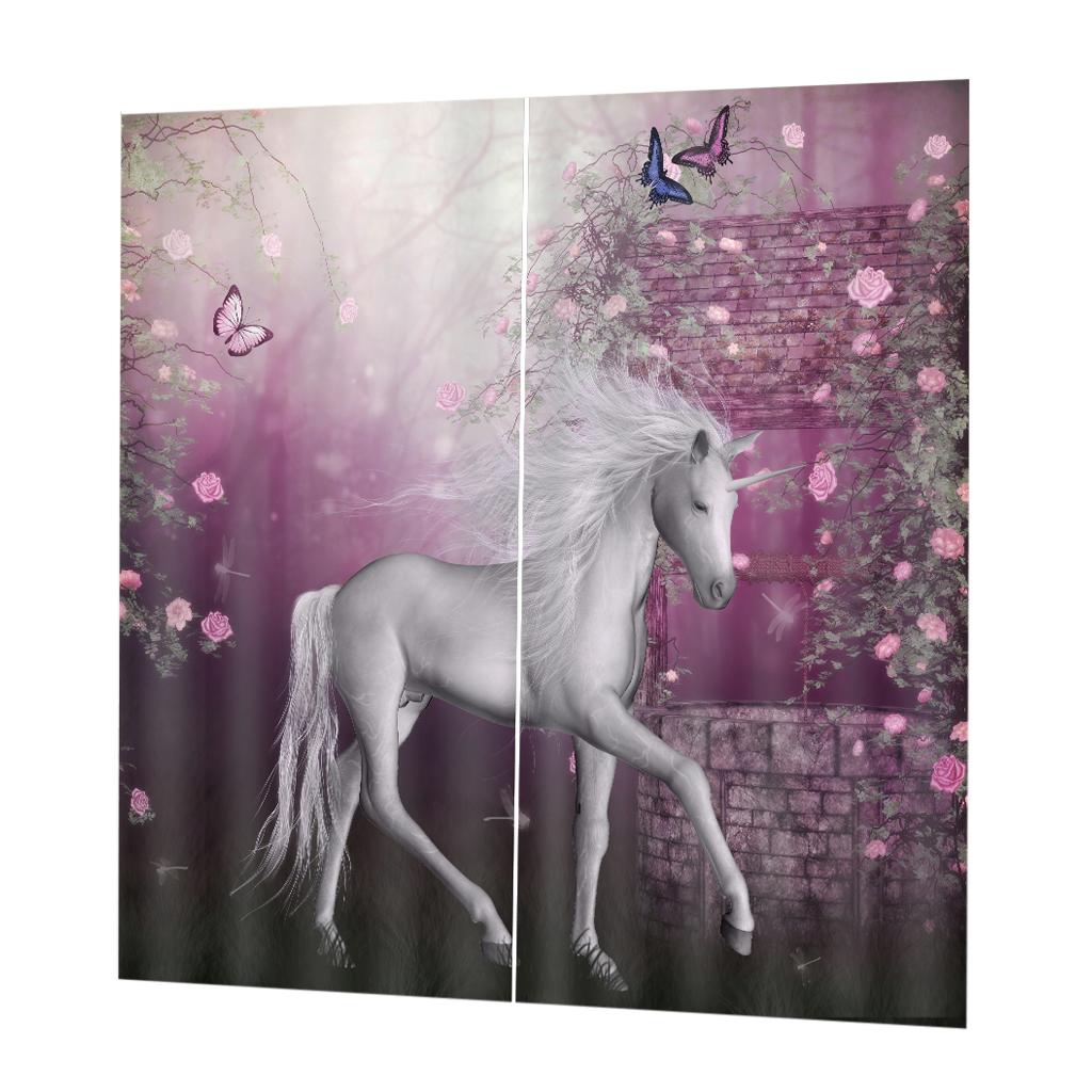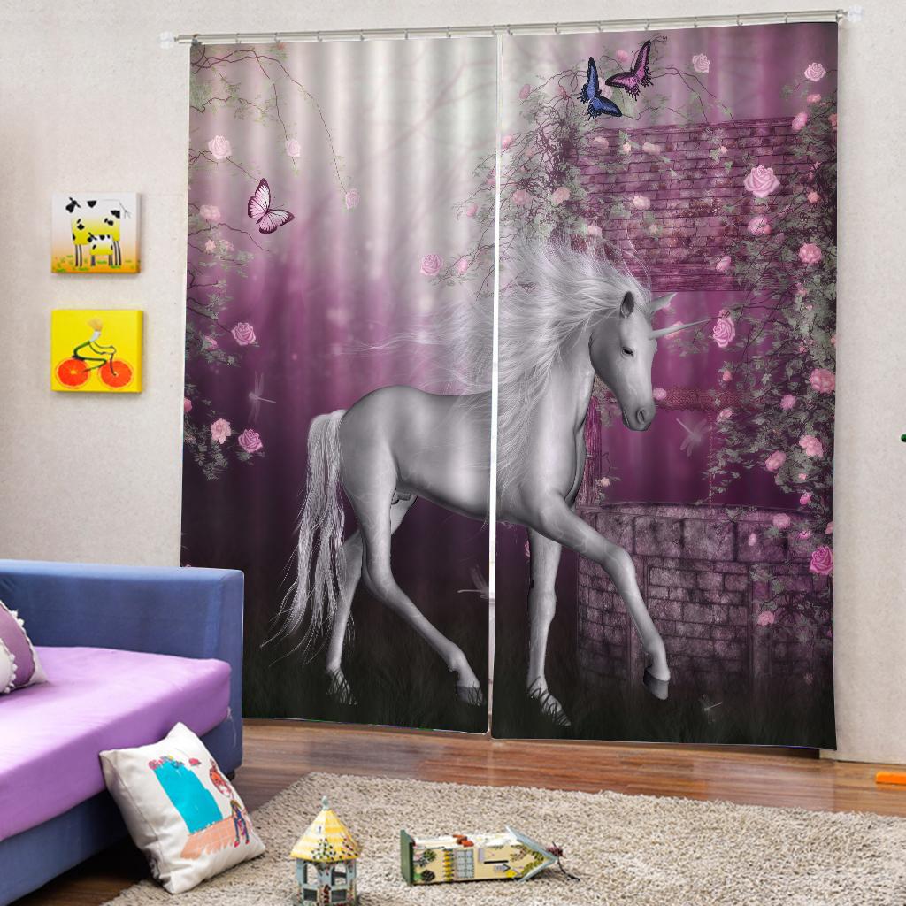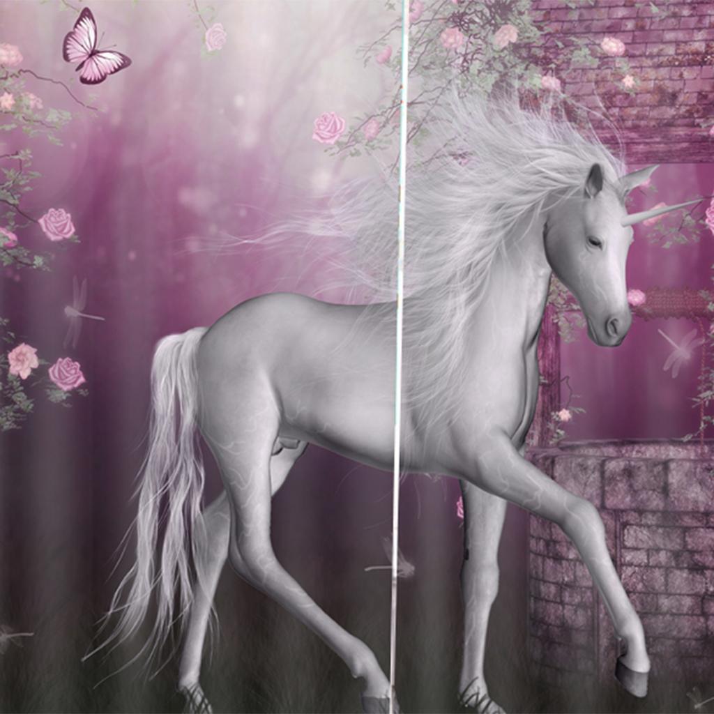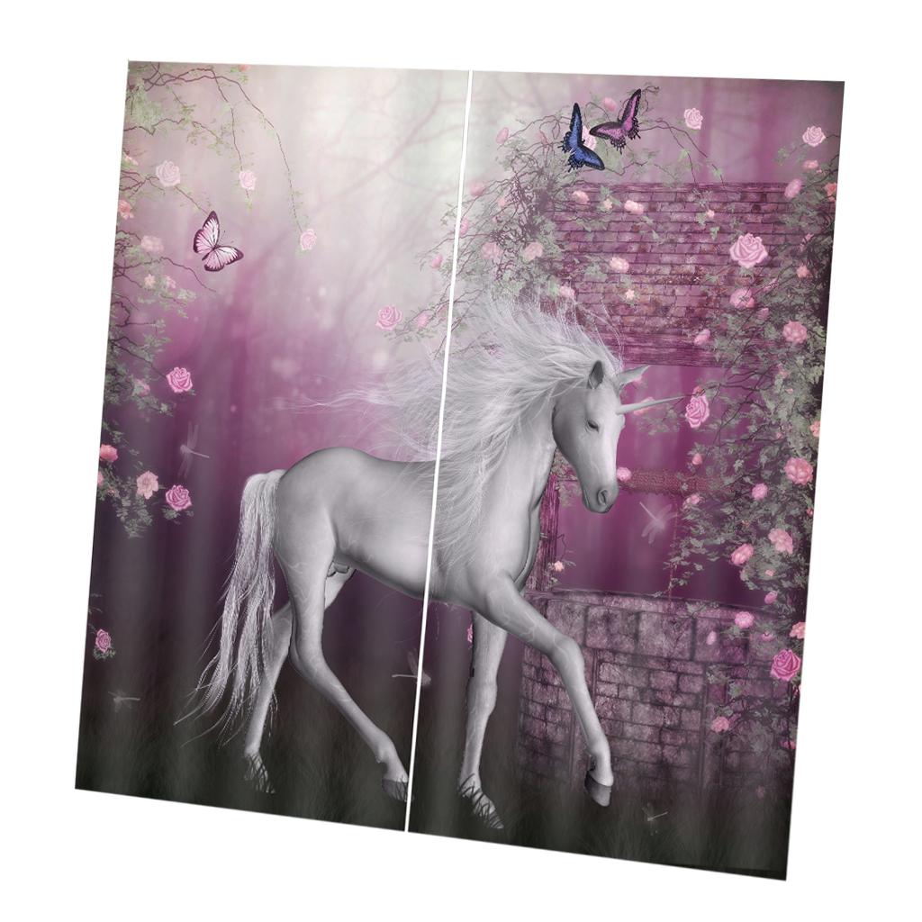 Set of 2 Panels Digital Photo Printing 3D Curtains Aminals Unicorn