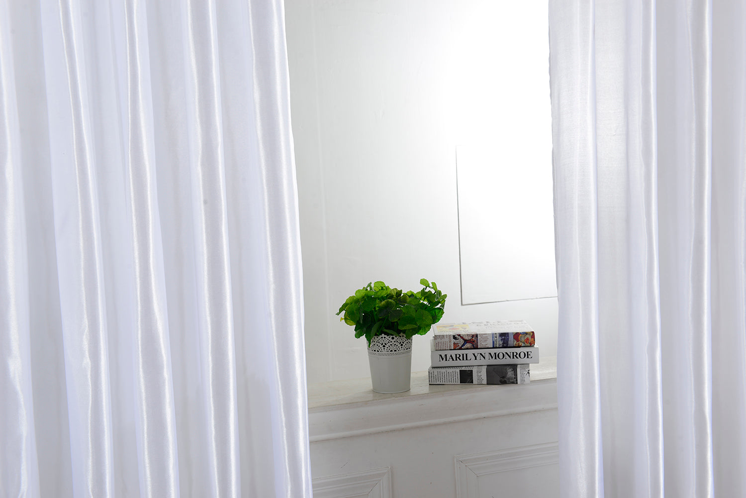 Smooth satin fabric curtains with solid colors, elegant look and soft to touch.