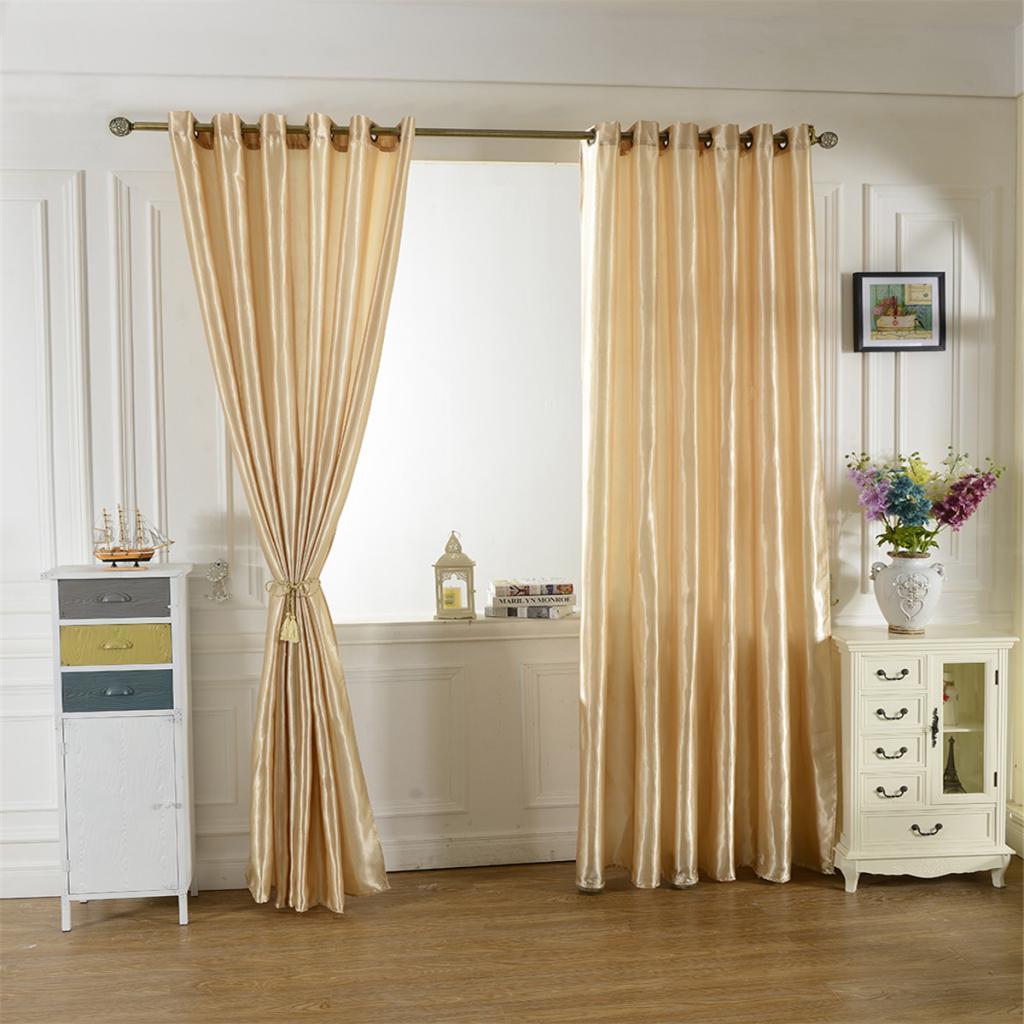 Smooth Satin Window Curtains Blackout Shade Eyelet Curtains 200x250cm Beige