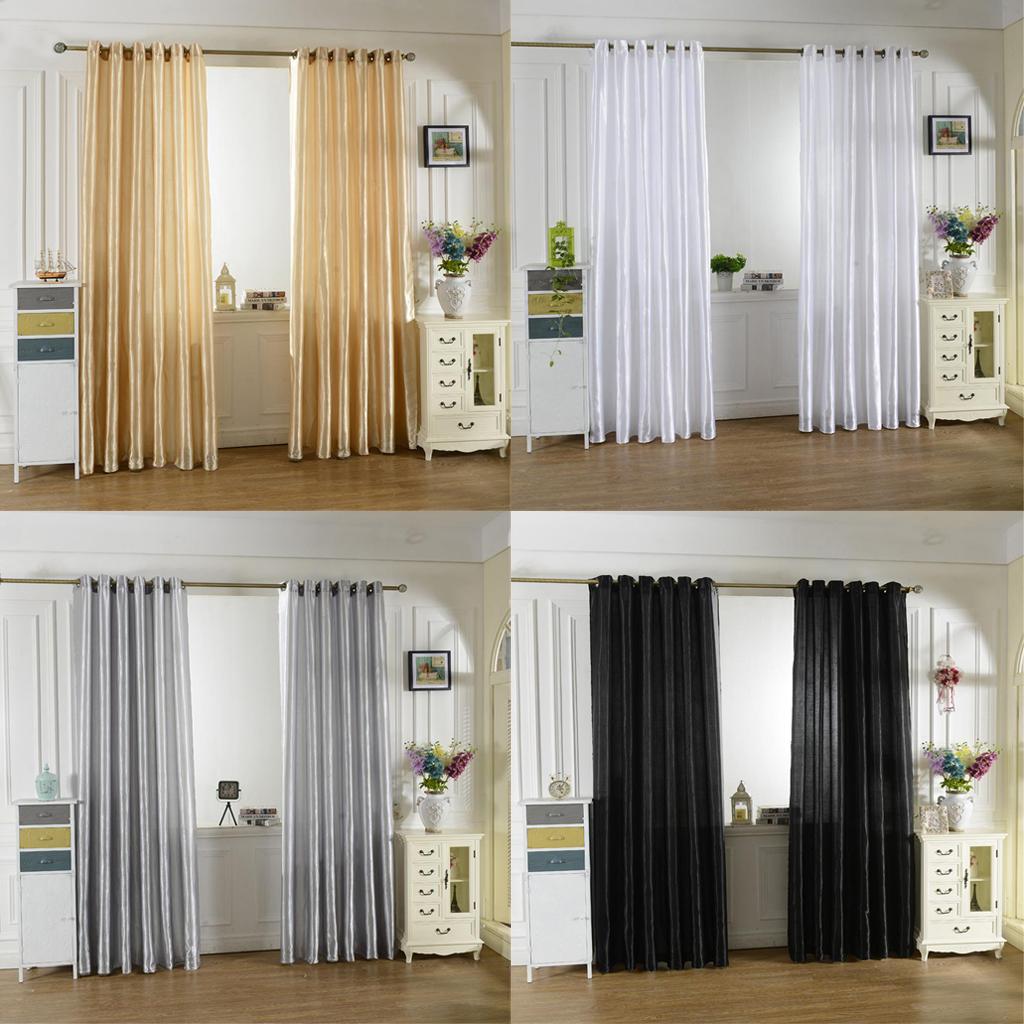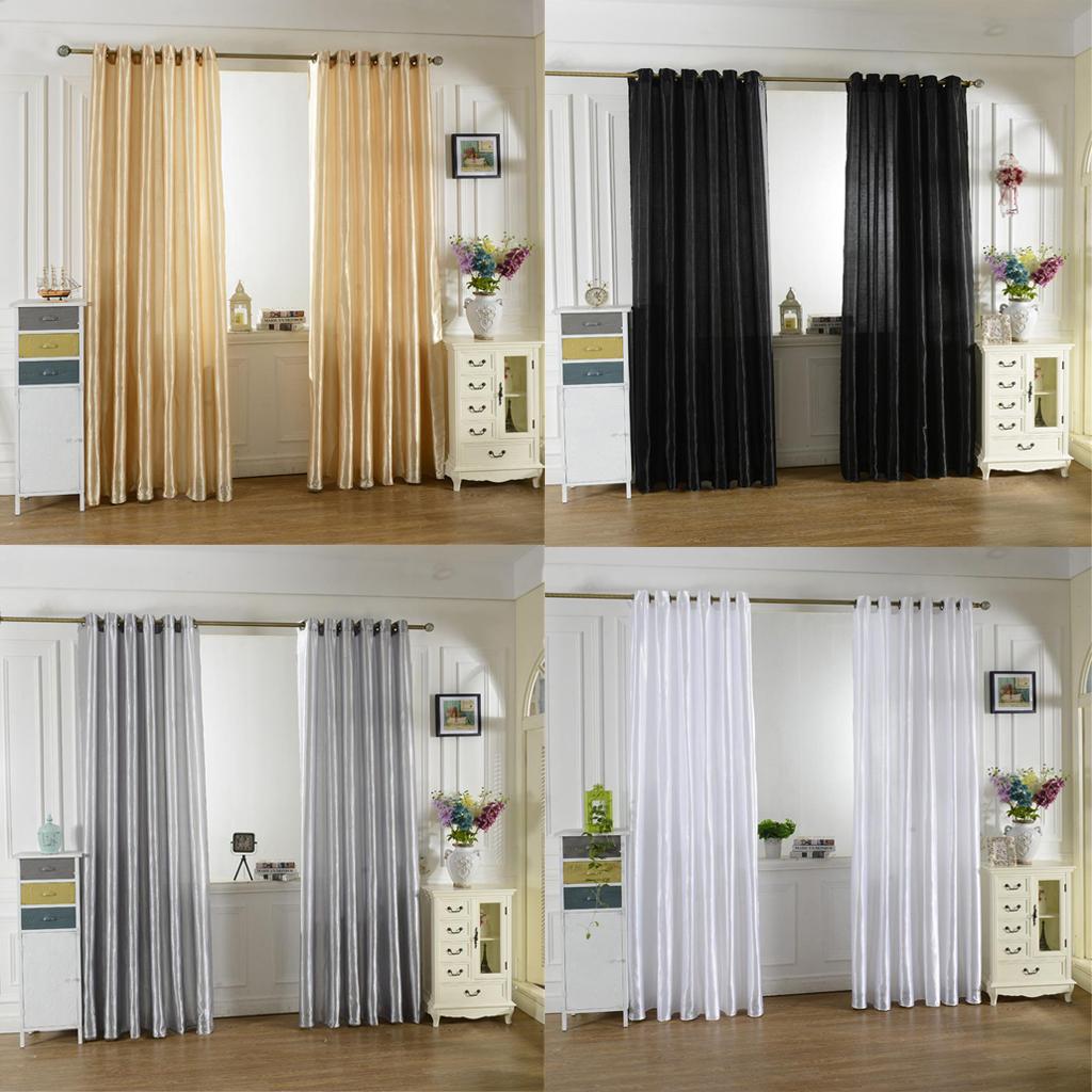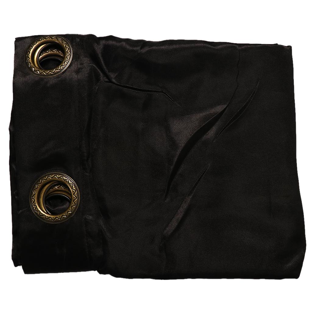 Smooth Satin Window Curtains Blackout Shade Eyelet Curtains 200x250cm Black